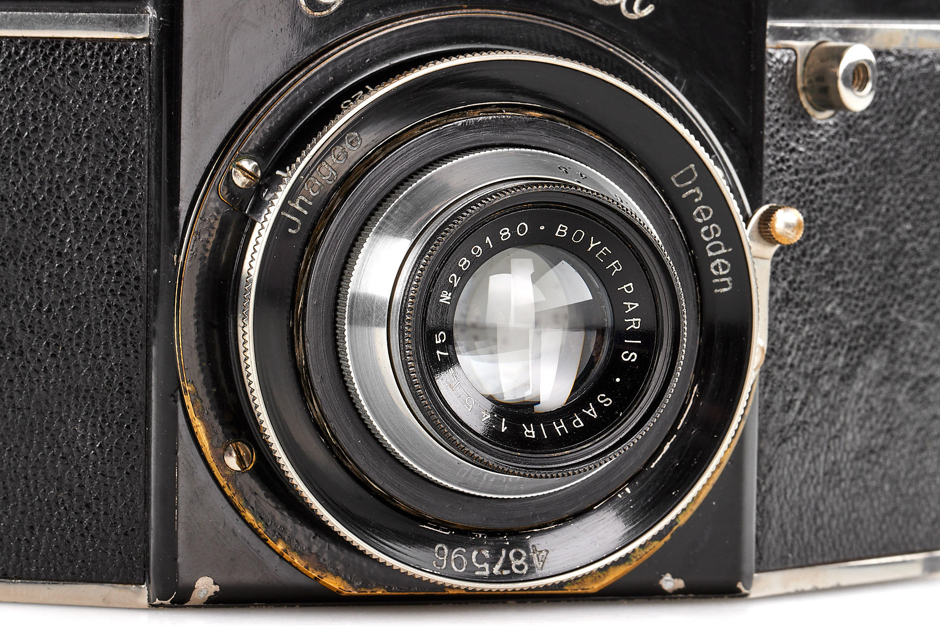 very nice 4th version with rare French Boyer Saphir 4.5/75mm no.289180 with clean and clear lenses, with rare original leather cap