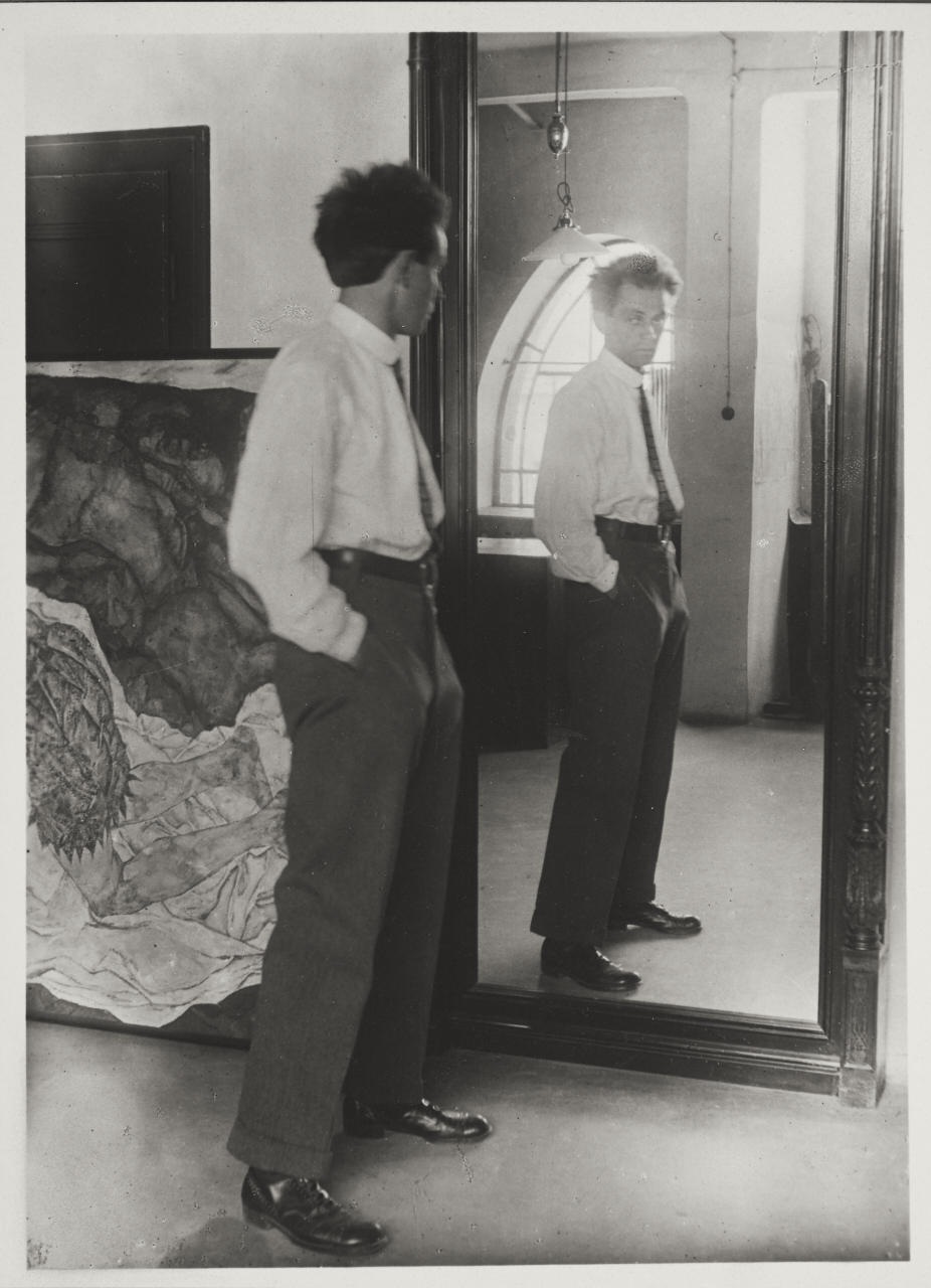 JOHANNES FISCHER (1888-1955) Egon Schiele in front of large studio mirror, Vienna 1915