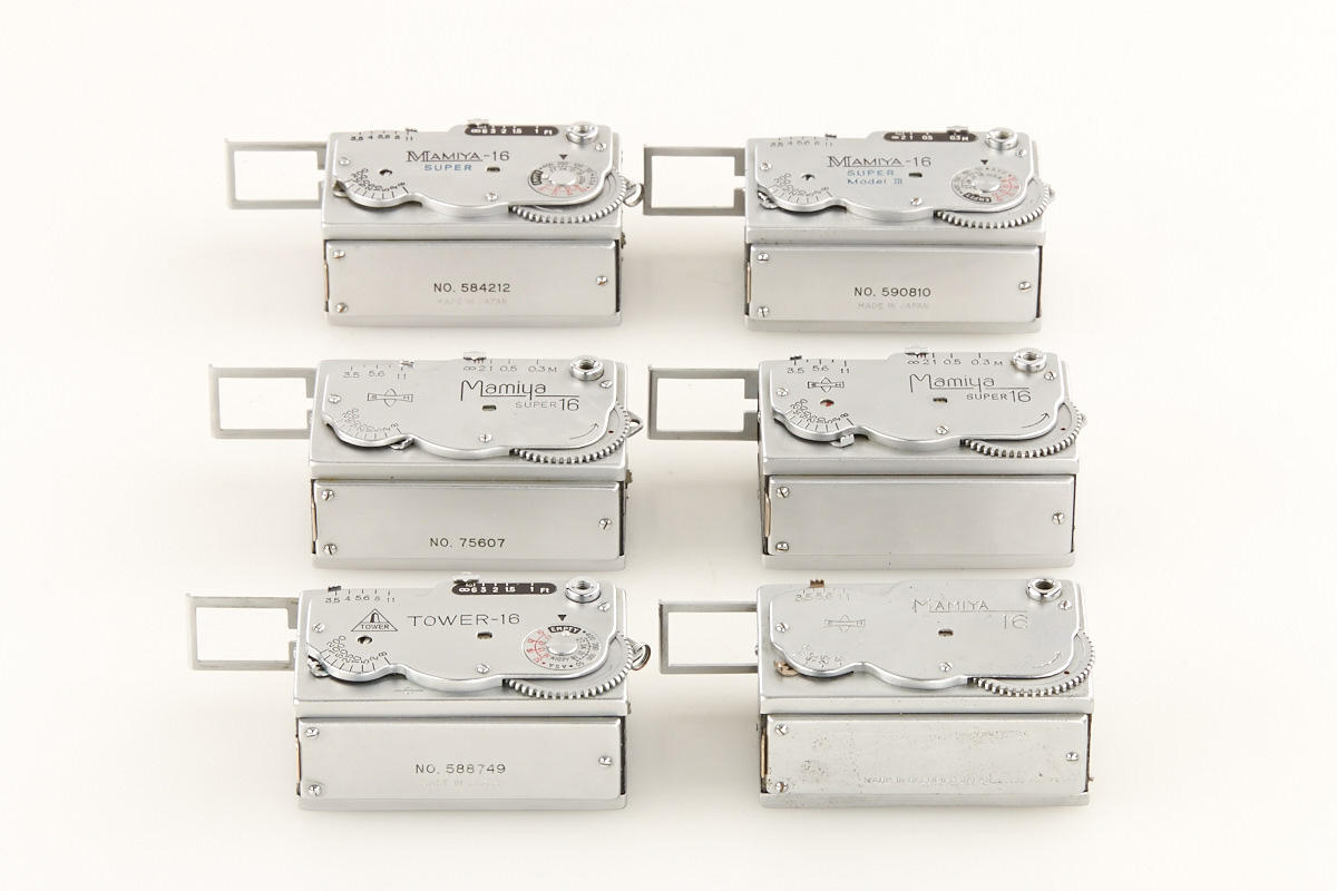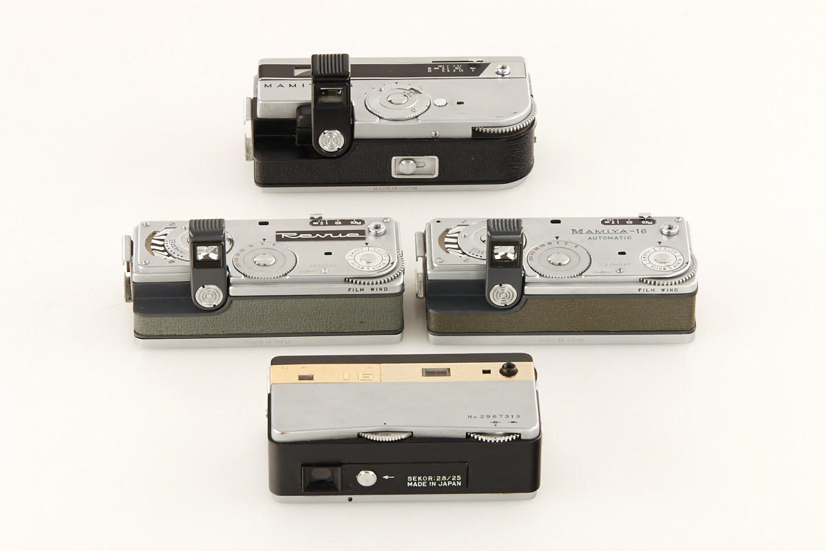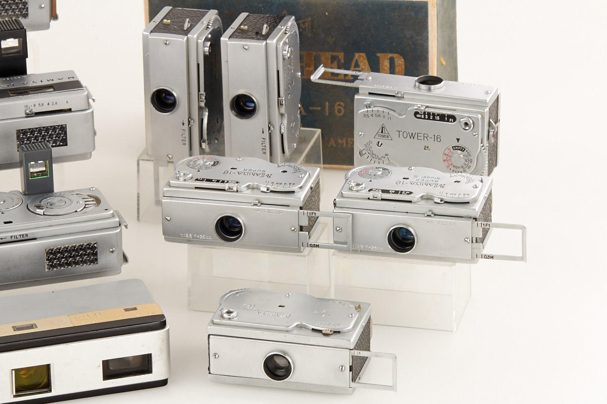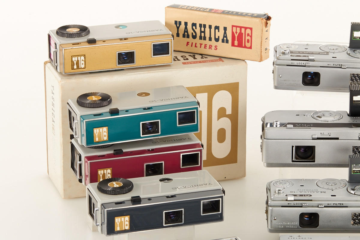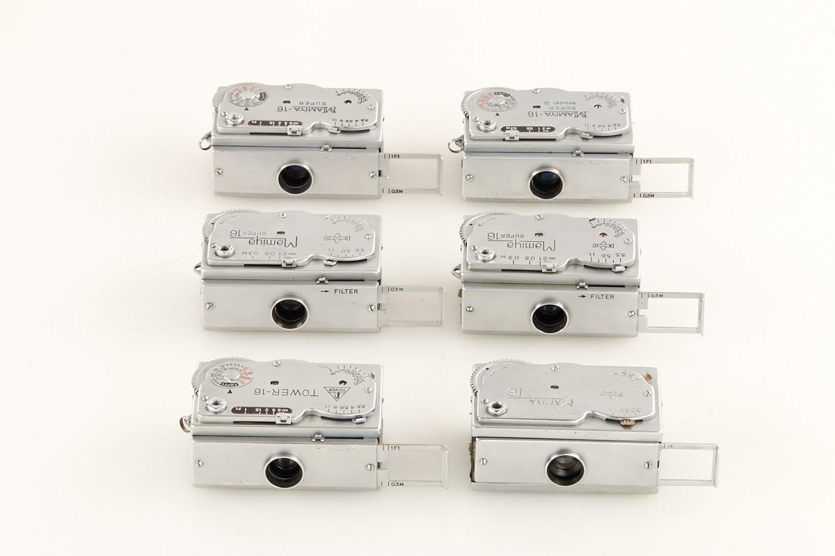 collection of 15 various 16mm cameras, all in good to mint condition: four Yashica Y16 in various colours, Yashica 16EE, Mamiya 16 De Luxe, Mamiya 16 EE, Mamiya 16 Automatic, Revue 16 Automatic, Mamiya 16, two Mamiya 16 Super (I), Mamiya 16 Super (II), Mamiya 16 Super Model III and Tower 16, incl. few cases and various accessories