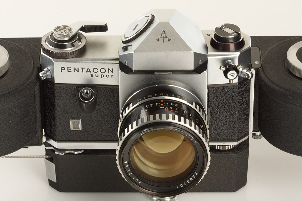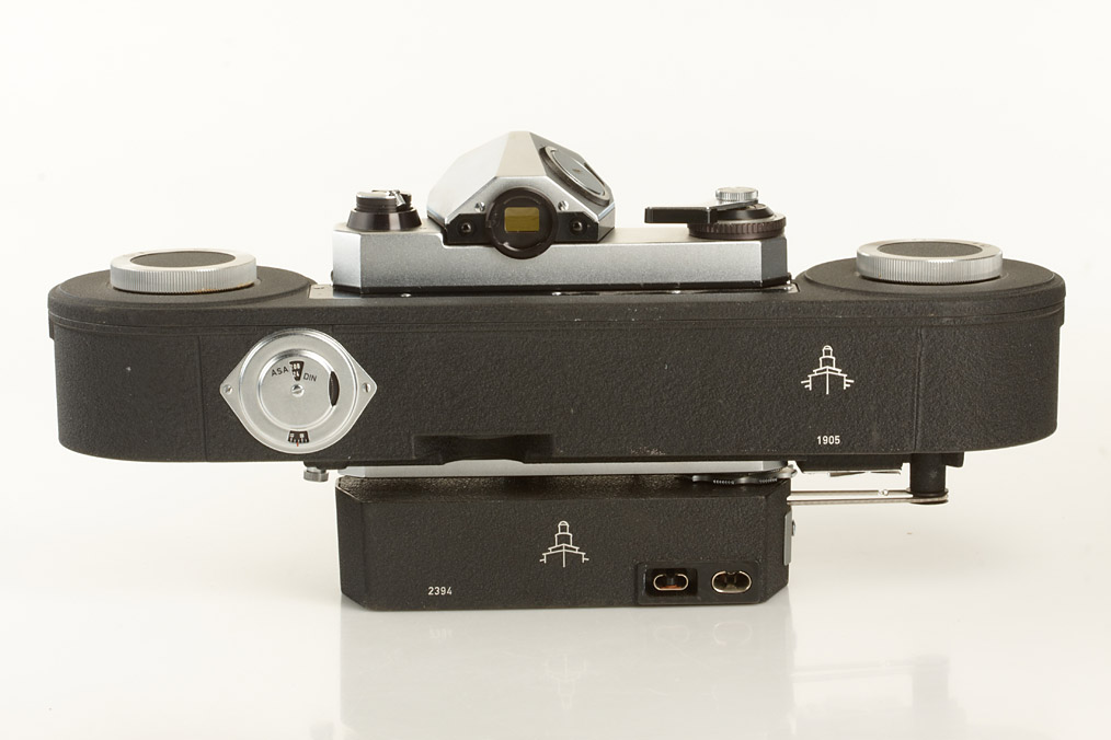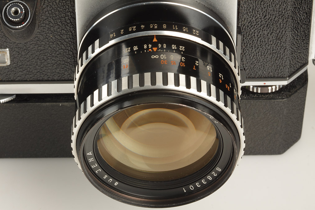 near mint outfit including Pancolar 1.4/55mm no.8283301, 17m exposure back no.1905, motor-drive no.2394, cable, back door, prism finder, eye-cup, waist-level finder, hood, cap