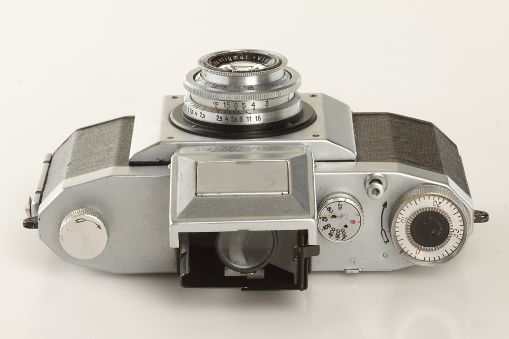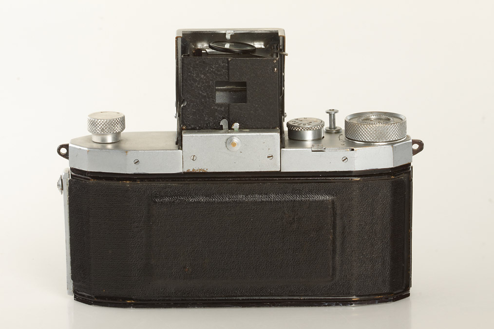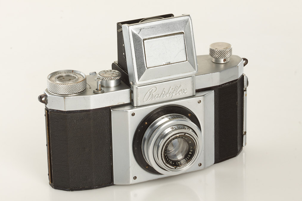 three K.W. cameras: (1) 7th type Praktiflex (078) no.7291 with brown covering (not original) and Victar 2.9/5cm, (2) 7th type Praktiflex (078) no.18029 with black covering and Victar 2.9/5cm, (3) 9th type Praktiflex (080) with black covering and Victar 2.9/5cm (3)
