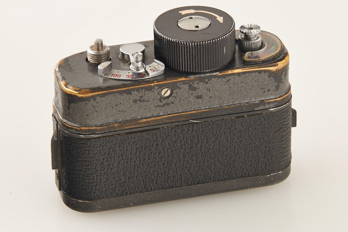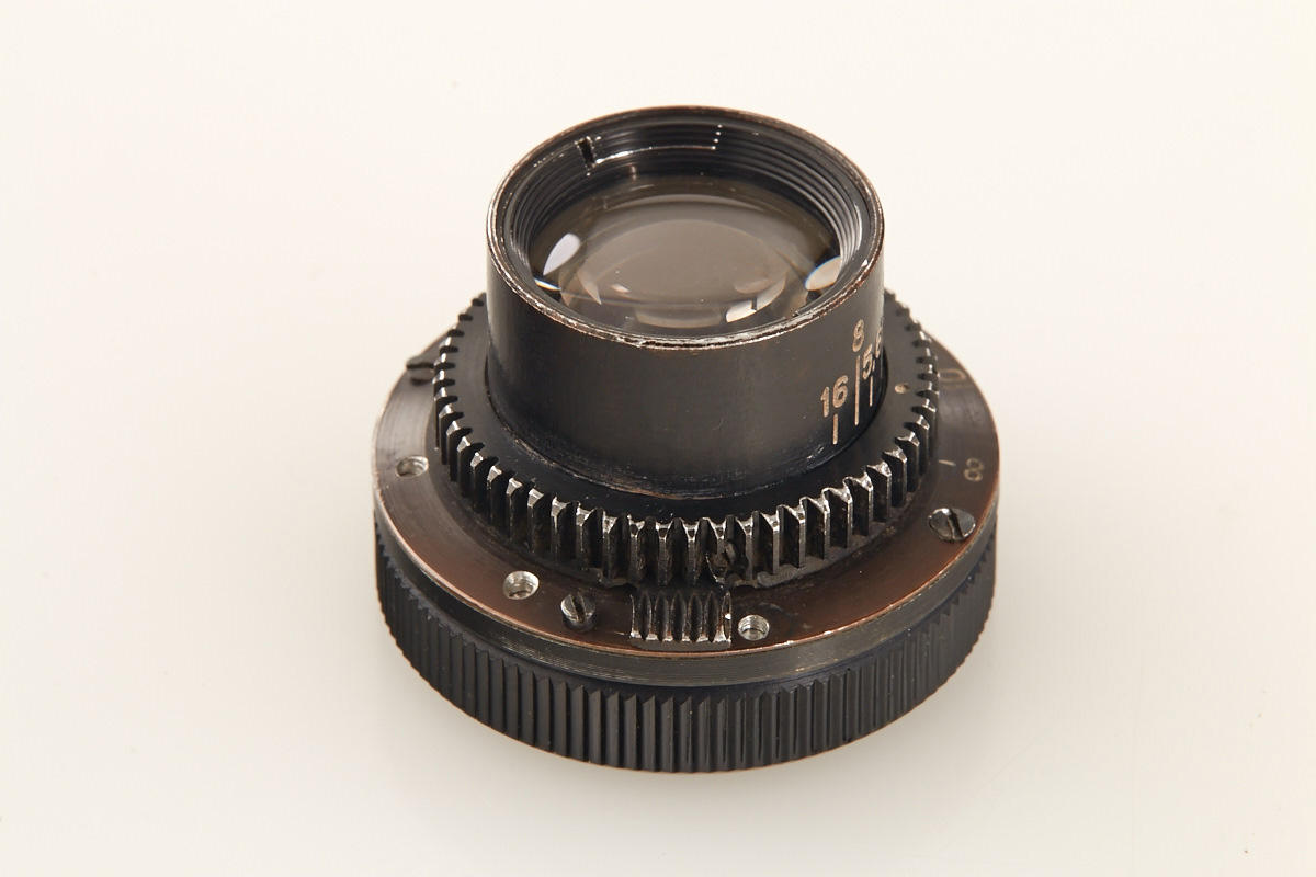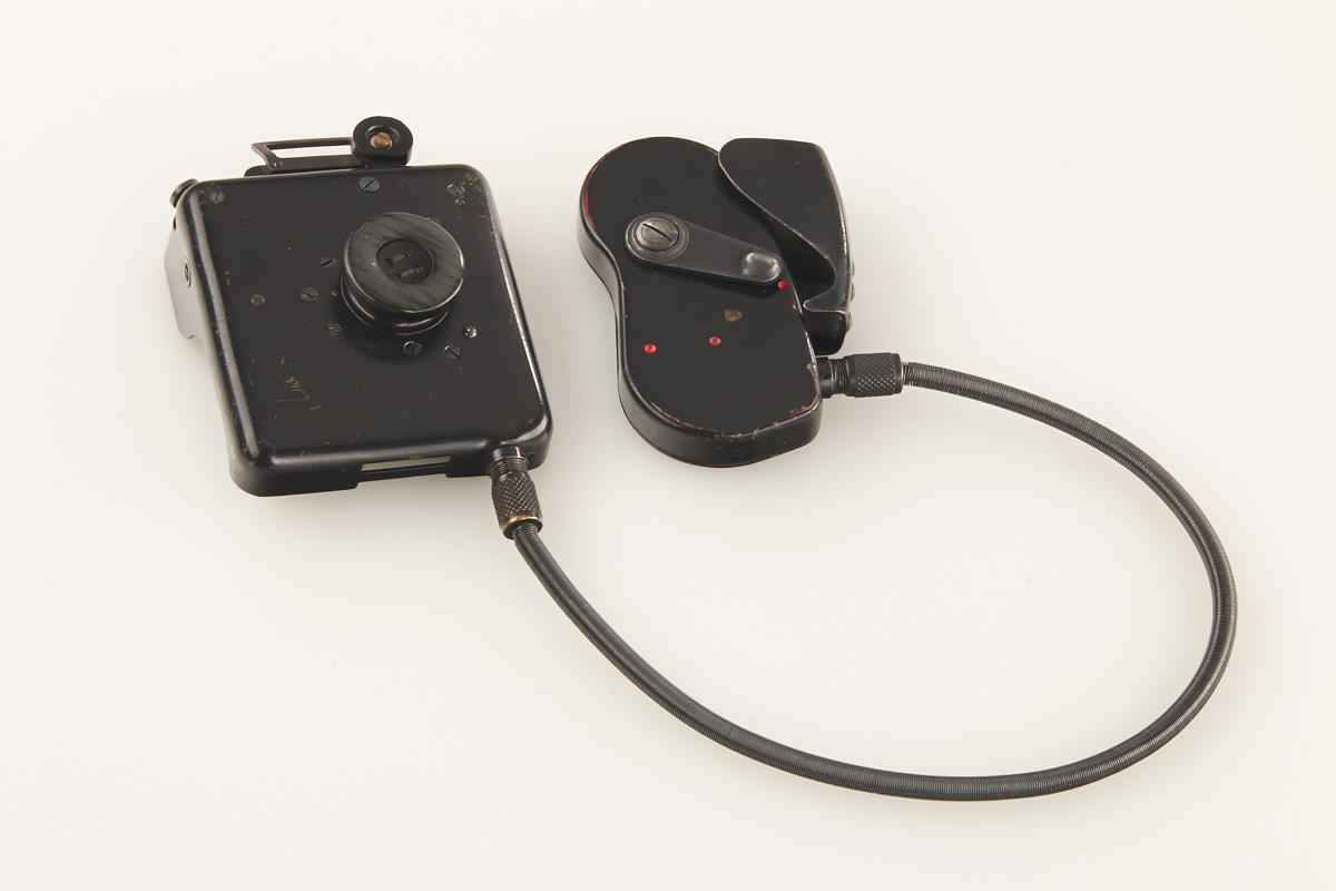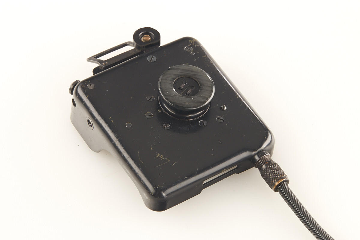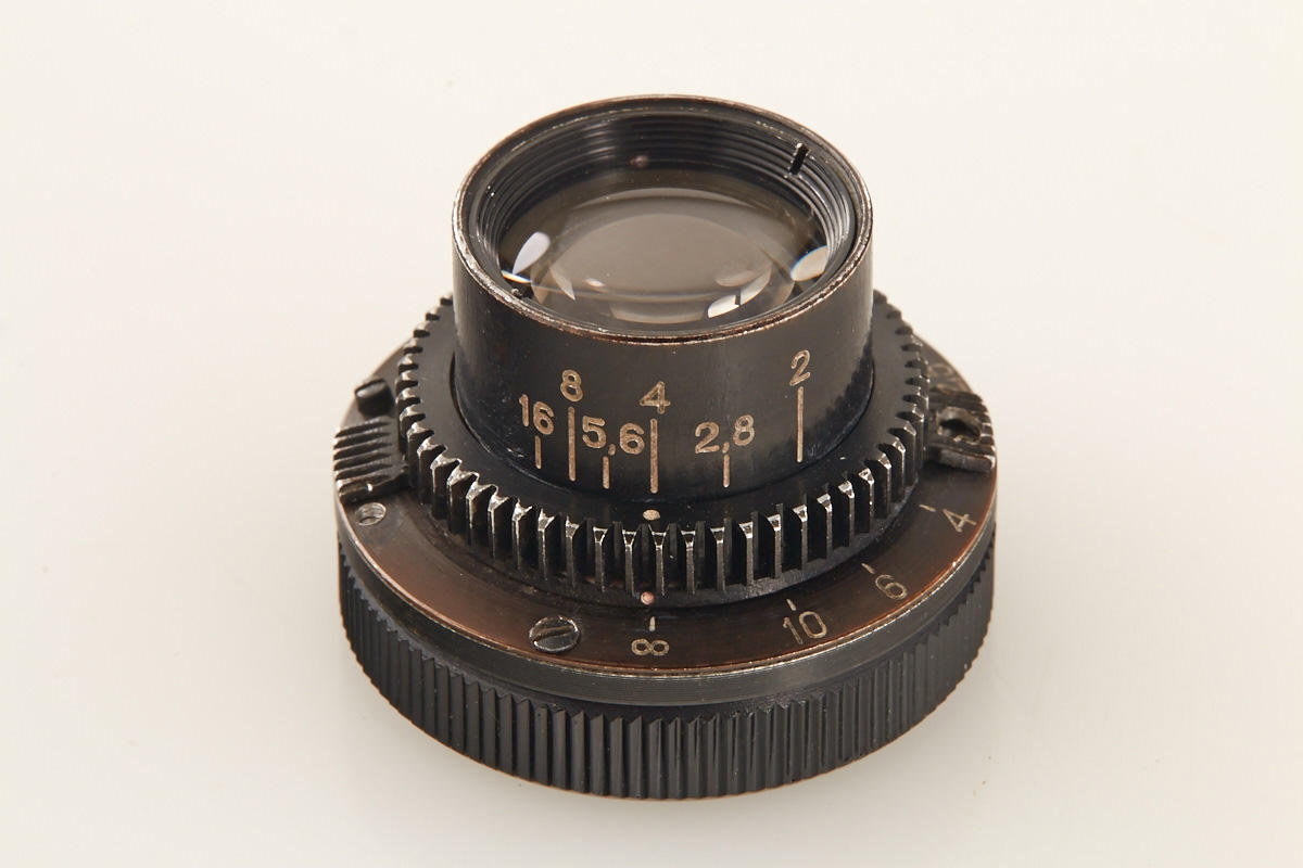 clockwork motorized spy camera for the Russian secret service with 2.8/28mm lens no.T87029, additional fast 2/28mm no.00516 lens, rare matching film splitter, button type concealment device with aperture and shutter control, two film spools