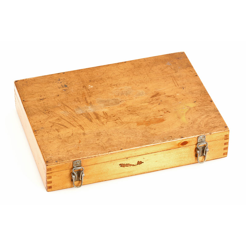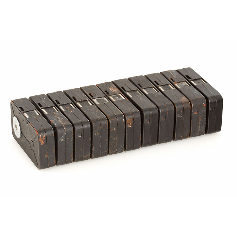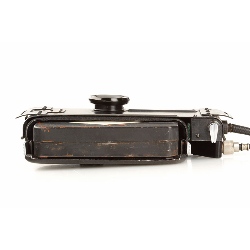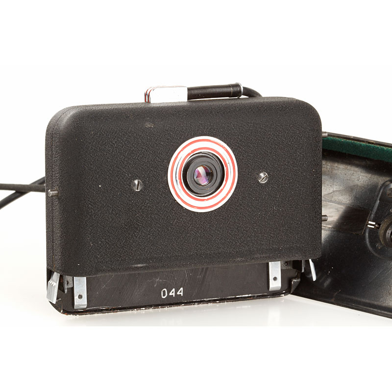 used by the KGB during the 1960-70's it was the movie equivalent of the F-21, filming through a false button which opened to reveal a lens, the film cassette was mounted on the camera at right angles to the lens, in original condition with mechanical shutter release, 12 cassettes, battery pack, all in fitted wooden case