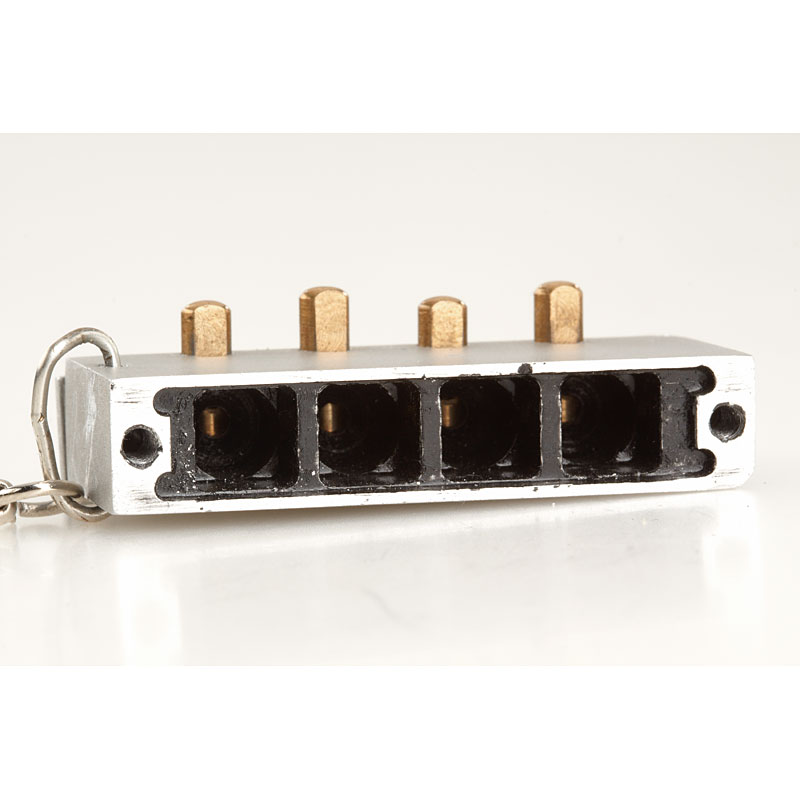 used by the KGB, each of it's four chambers has a pinhole aperture for a lens making it possible to photograph close-up and distant objects without focusing, in chrome finish with brass fittings