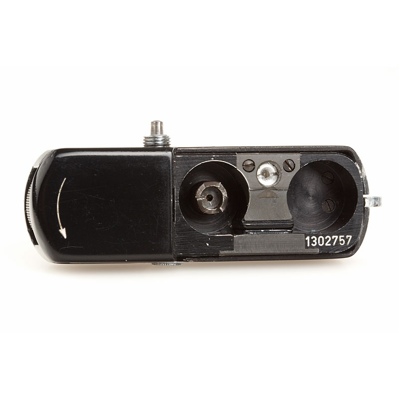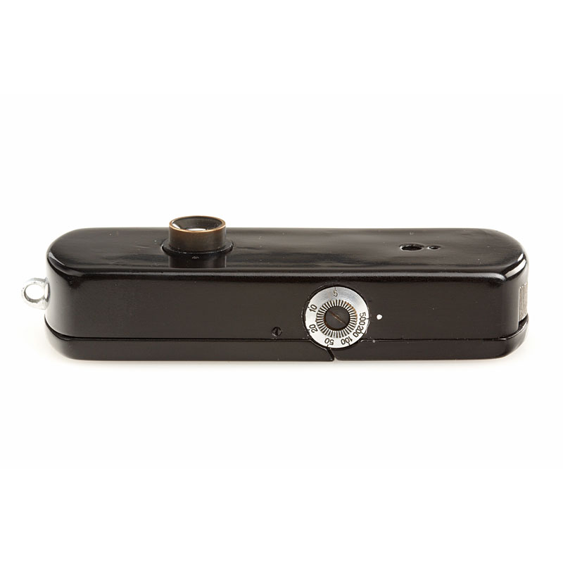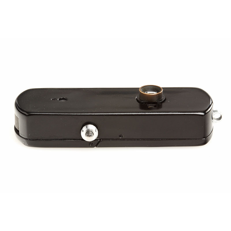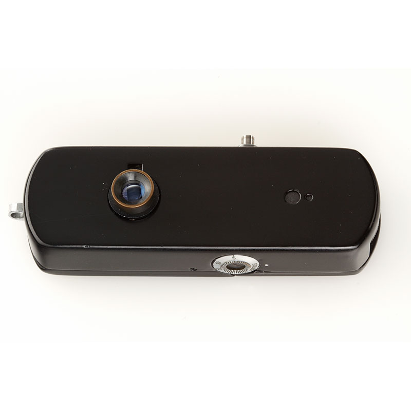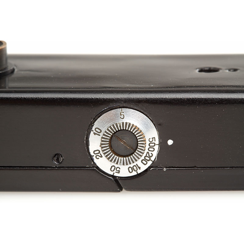 improved model of the Totchka with Galilean finder and slightly altered Industar 3,5/15mm lens, round shutter speed dial (marked 5, 10, 20, 50, 100, 200 and 500). Frame counter with rotating engraved disc under small round hole in front, in very good and original working condition, with original hand-release (not operable)