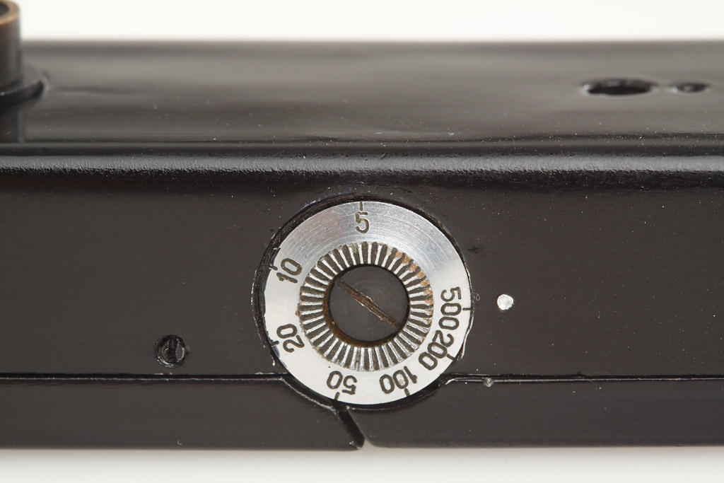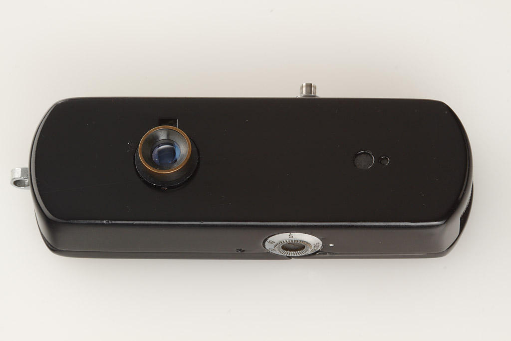 improved model of the Totchka with Galilean finder and slightly altered Industar 3,5/15mm lens, round shutter speed dial (marked 5, 10, 20, 50, 100, 200 and 500). Frame counter with rotating engraved disc under small round hole in front, in very good and original working condition, with original hand-release (not operable)