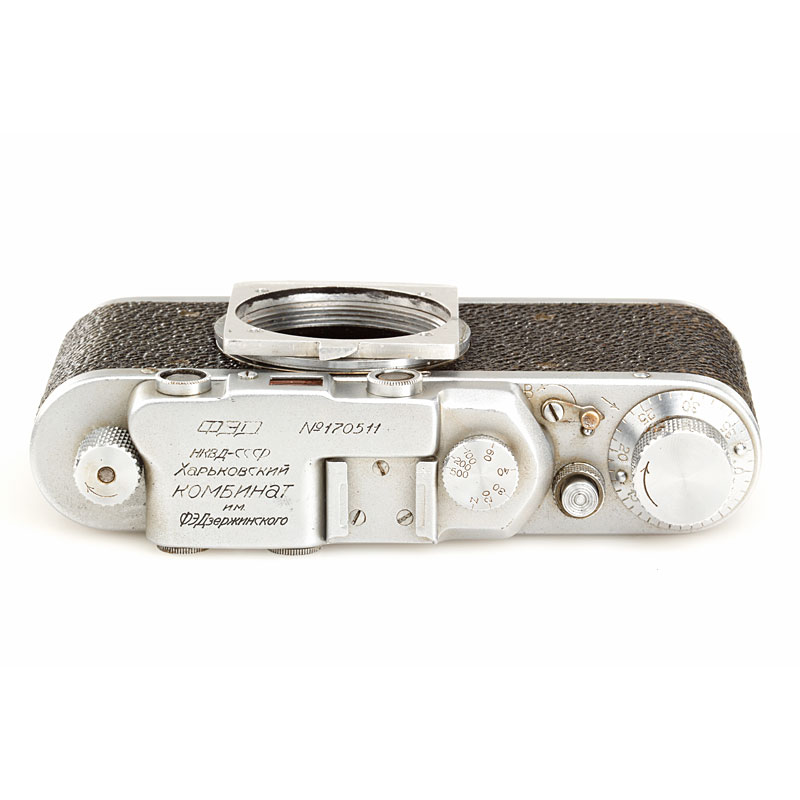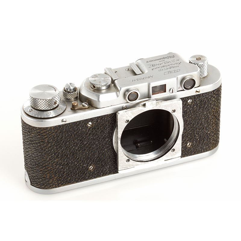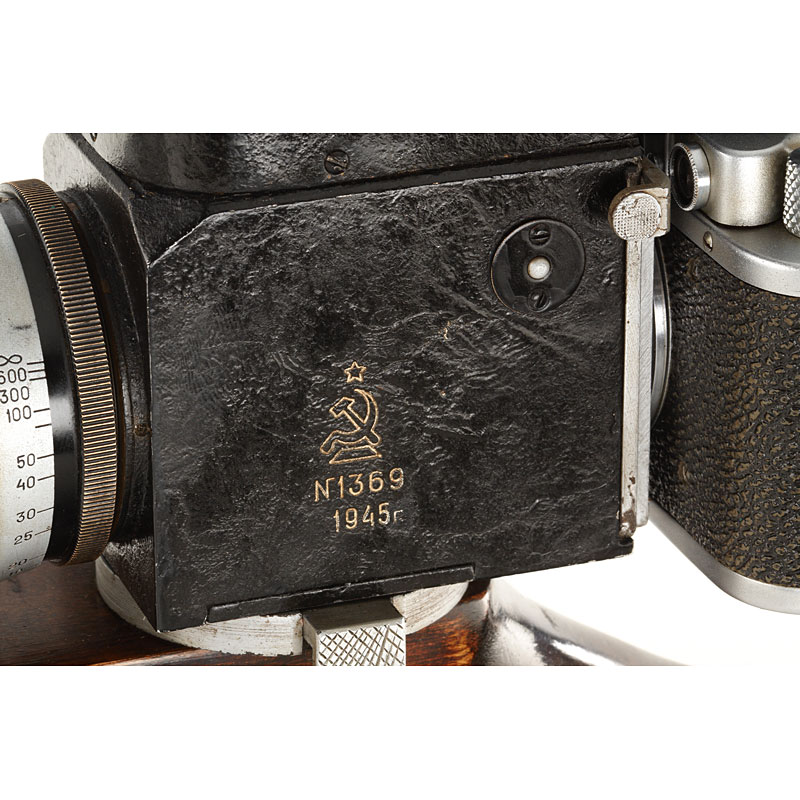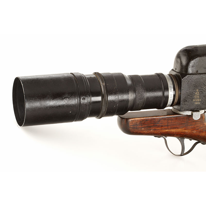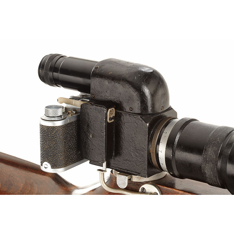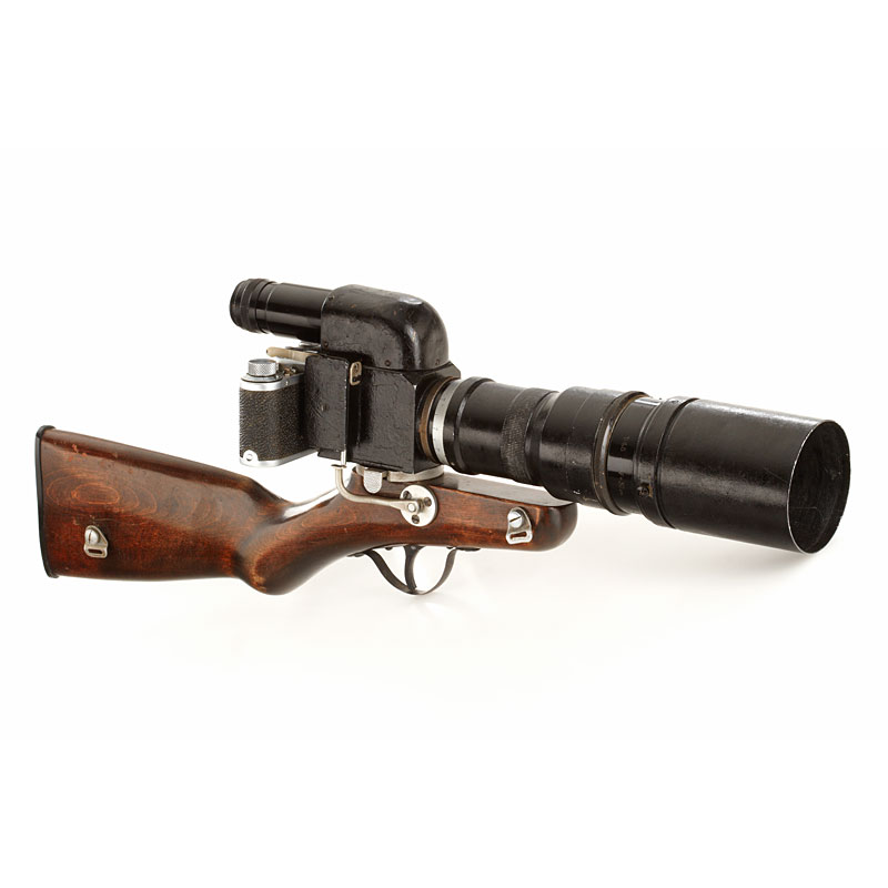 super rare military sniper gun stock camera outfit made for the Red Army during WWII including specially adapted FED NKWD body no.170511, reflex housing no.1369 and matching KMZ 4.5/30cm no.1307 with hood, lens and reflex housing with some repaint