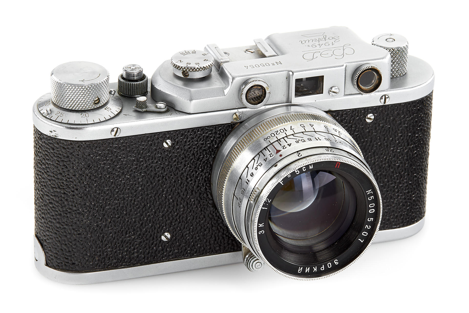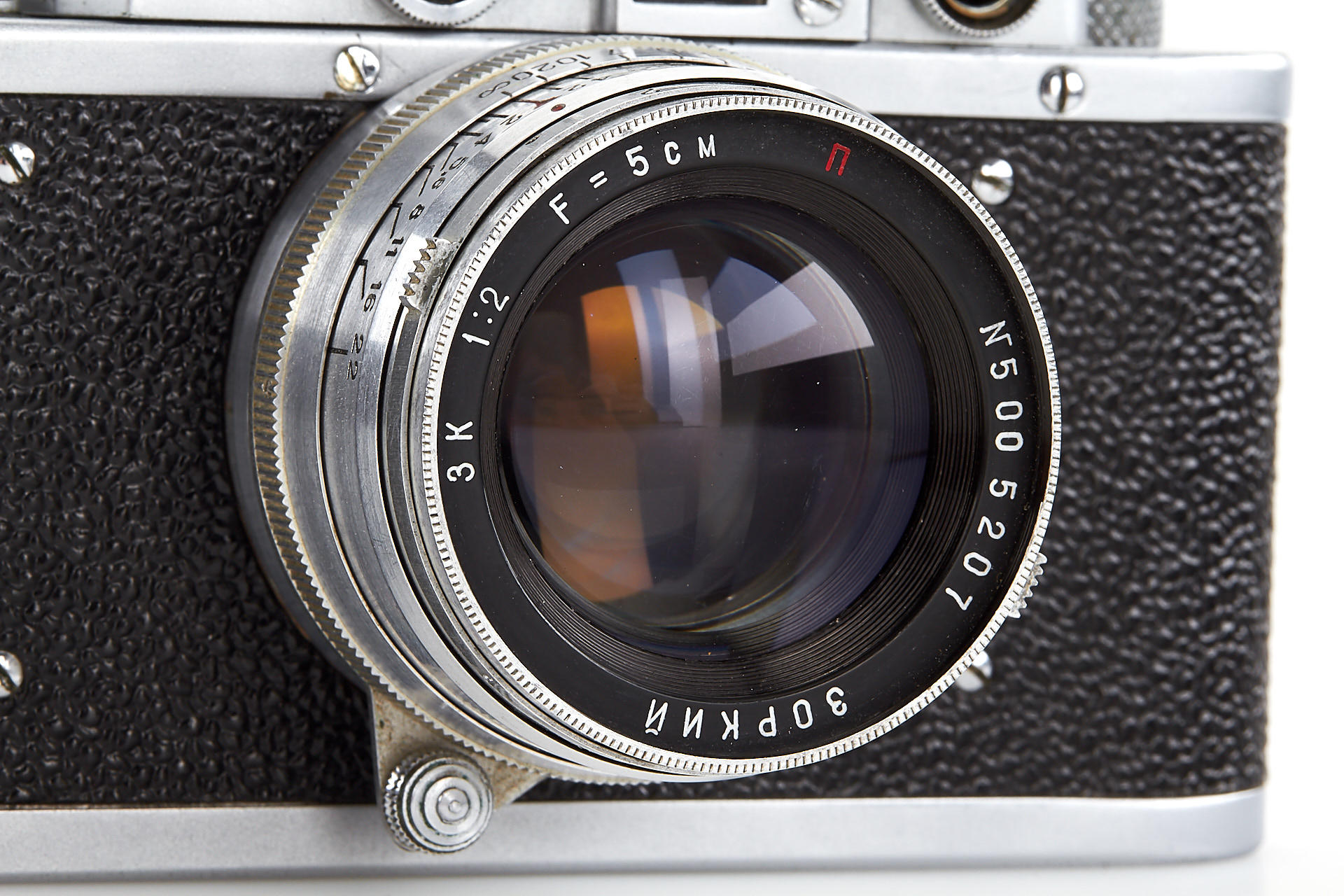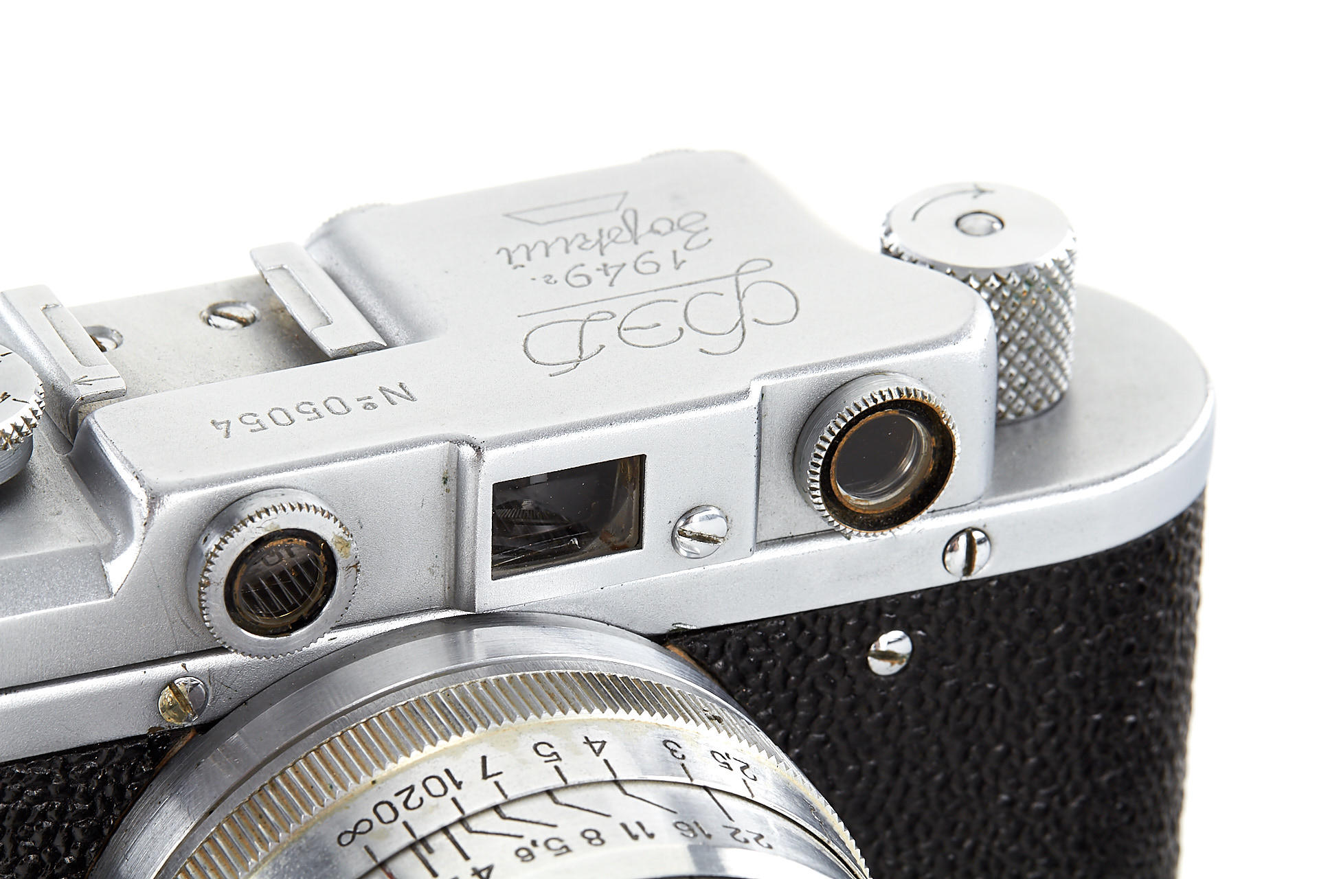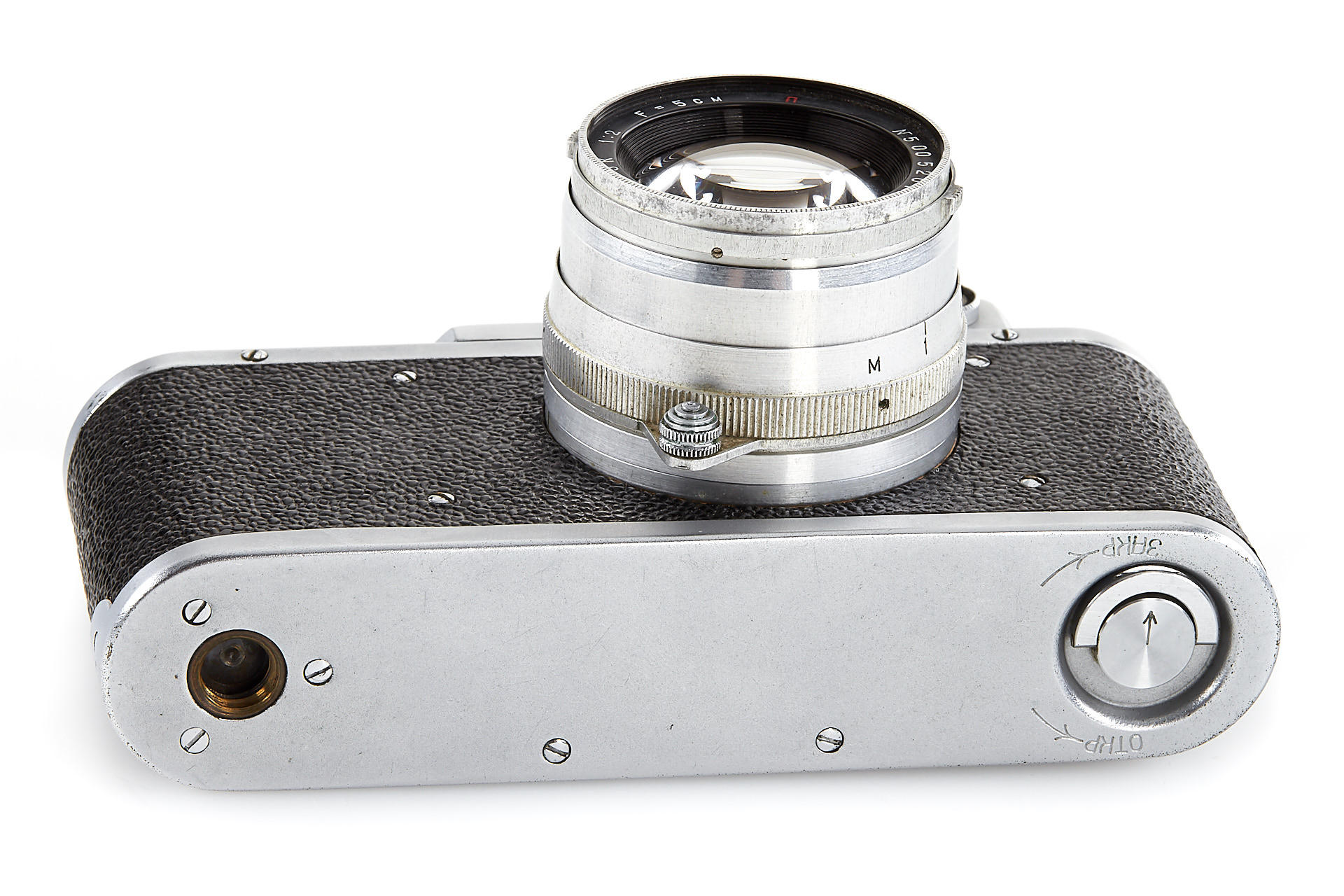 rare and early Russian Leica copy, produced in Moscow by KMZ in 1948 and 1949, special 'rice grain' Vulkanite covering, in near-mint condition, with coated rigid 1950 Zorki Z.K 2/5cm no.5005207