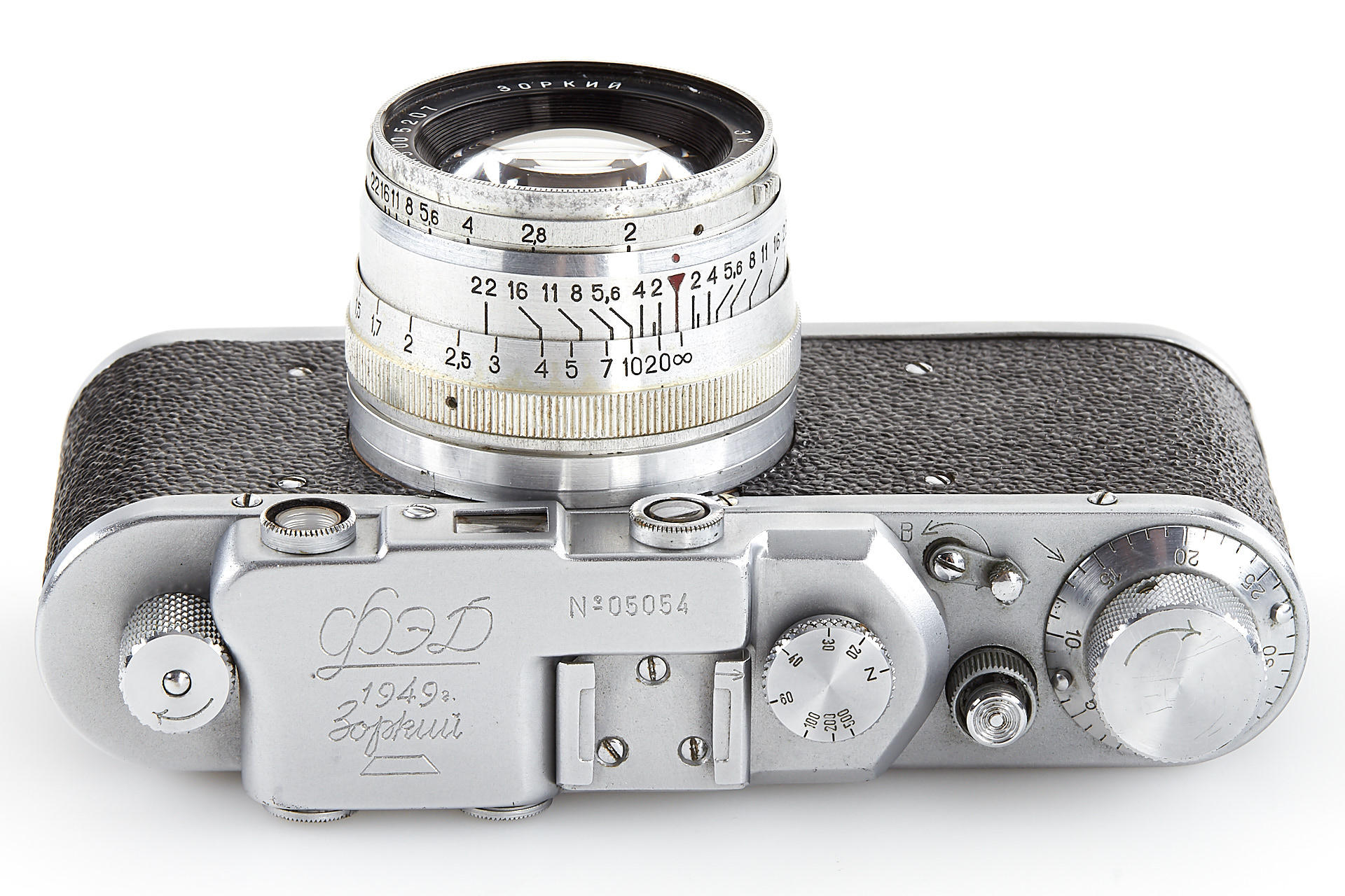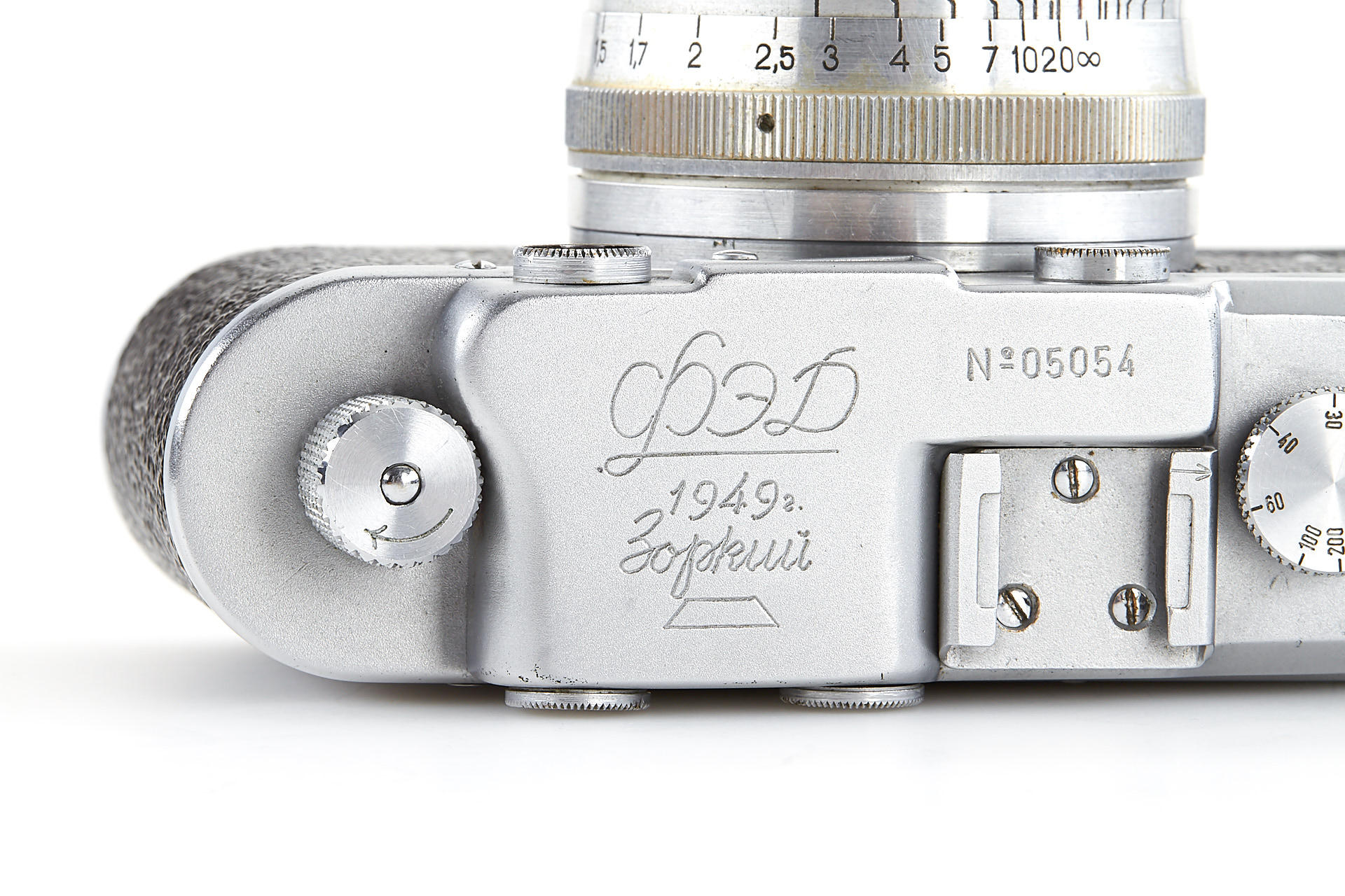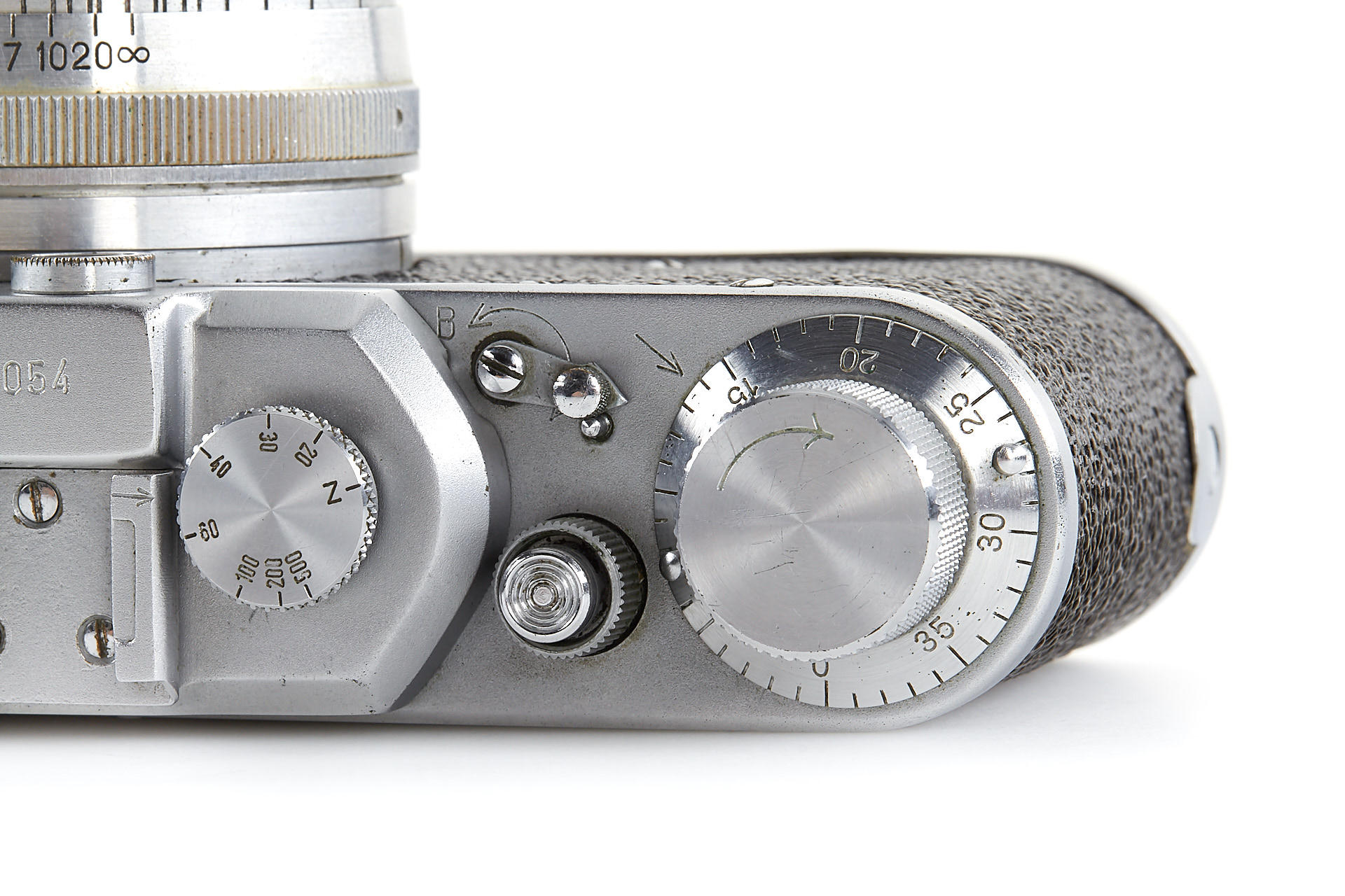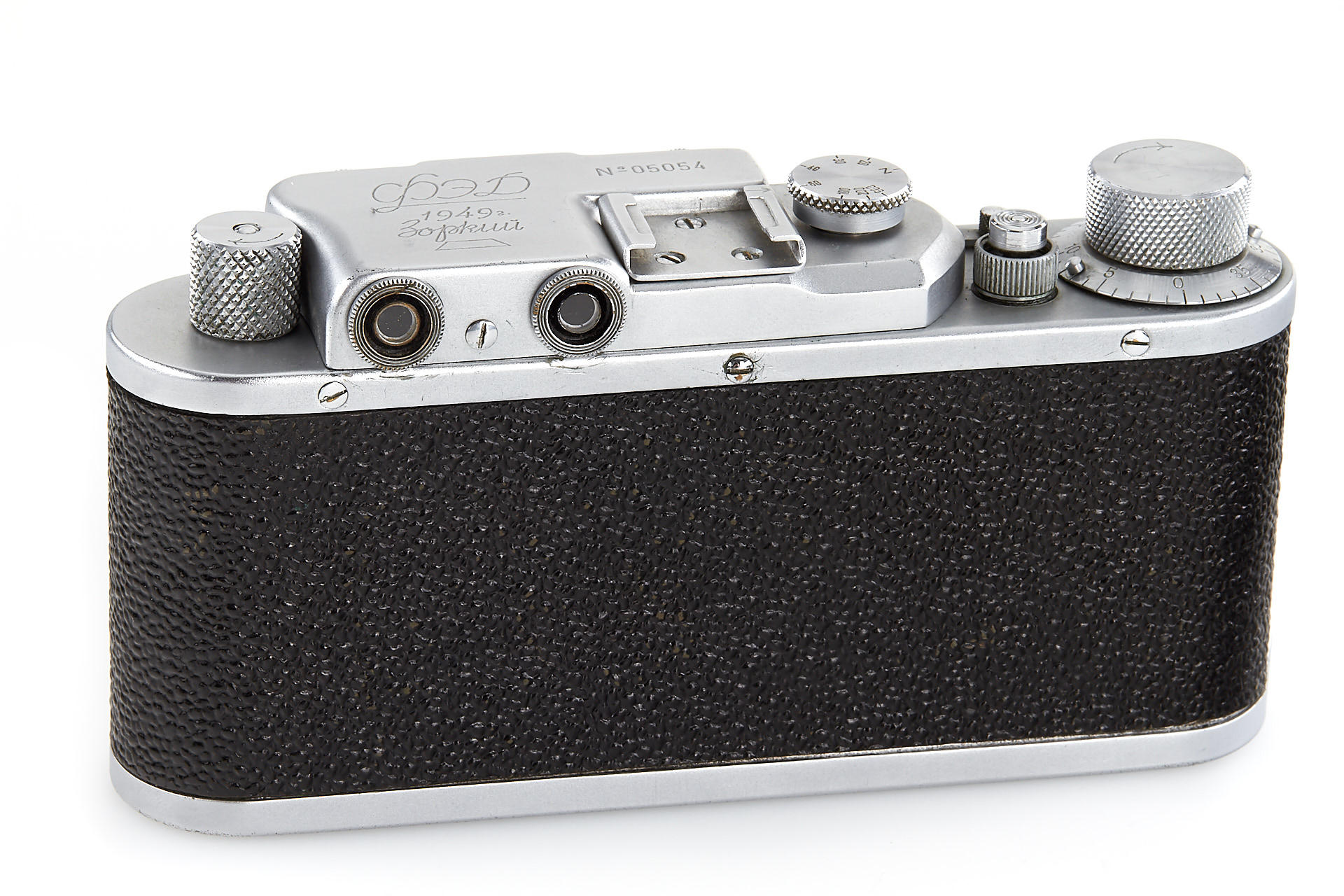 rare and early Russian Leica copy, produced in Moscow by KMZ in 1948 and 1949, special 'rice grain' Vulkanite covering, in near-mint condition, with coated rigid 1950 Zorki Z.K 2/5cm no.5005207