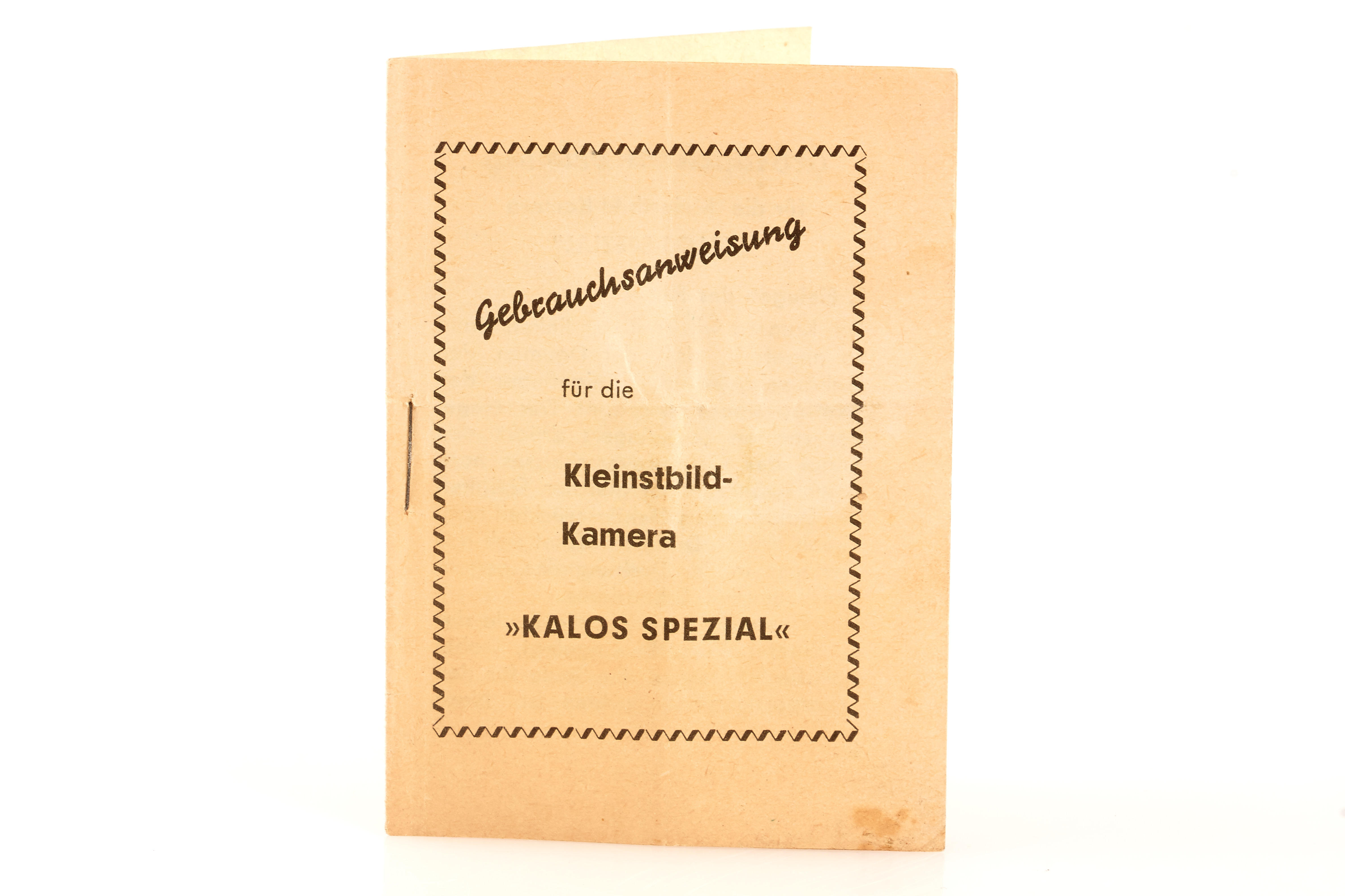 very rare improved version subminiature camera with more streamlined appearance, for 30 9x12mm exposures on un-perforated 16mm film, both spools, R-Staeble-Werk Kata 2.8/25mm no.325700, original instruction book