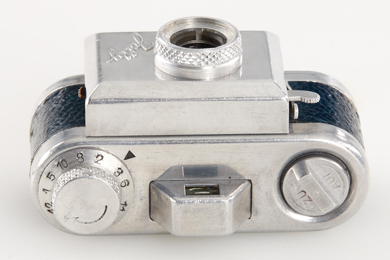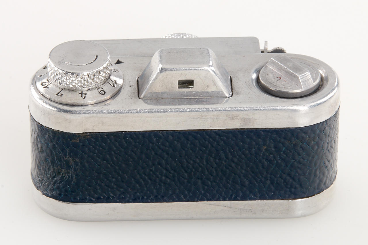 very rare subminiature for 10x15mm exposures in fine condition, black leather covering, leather case