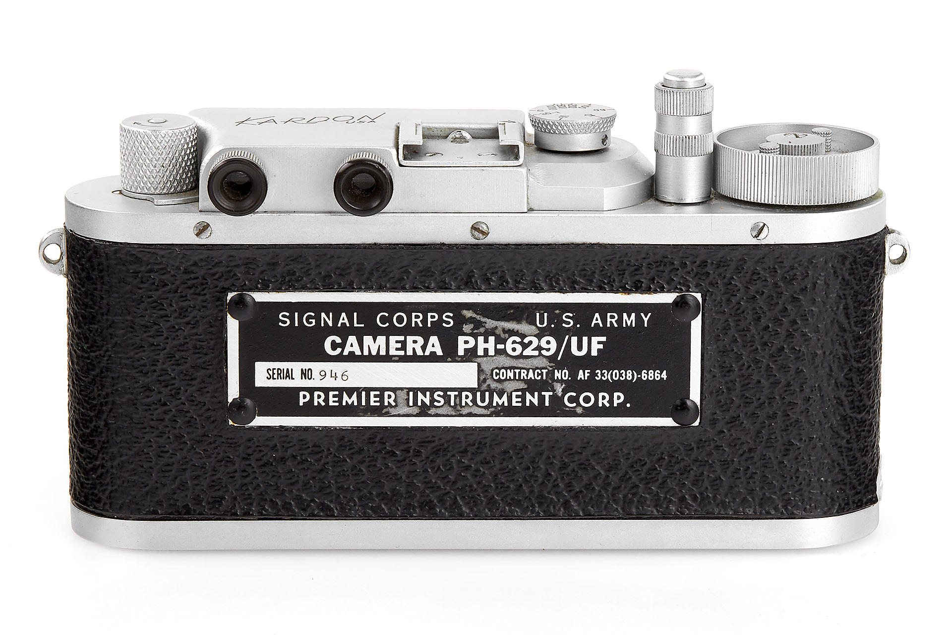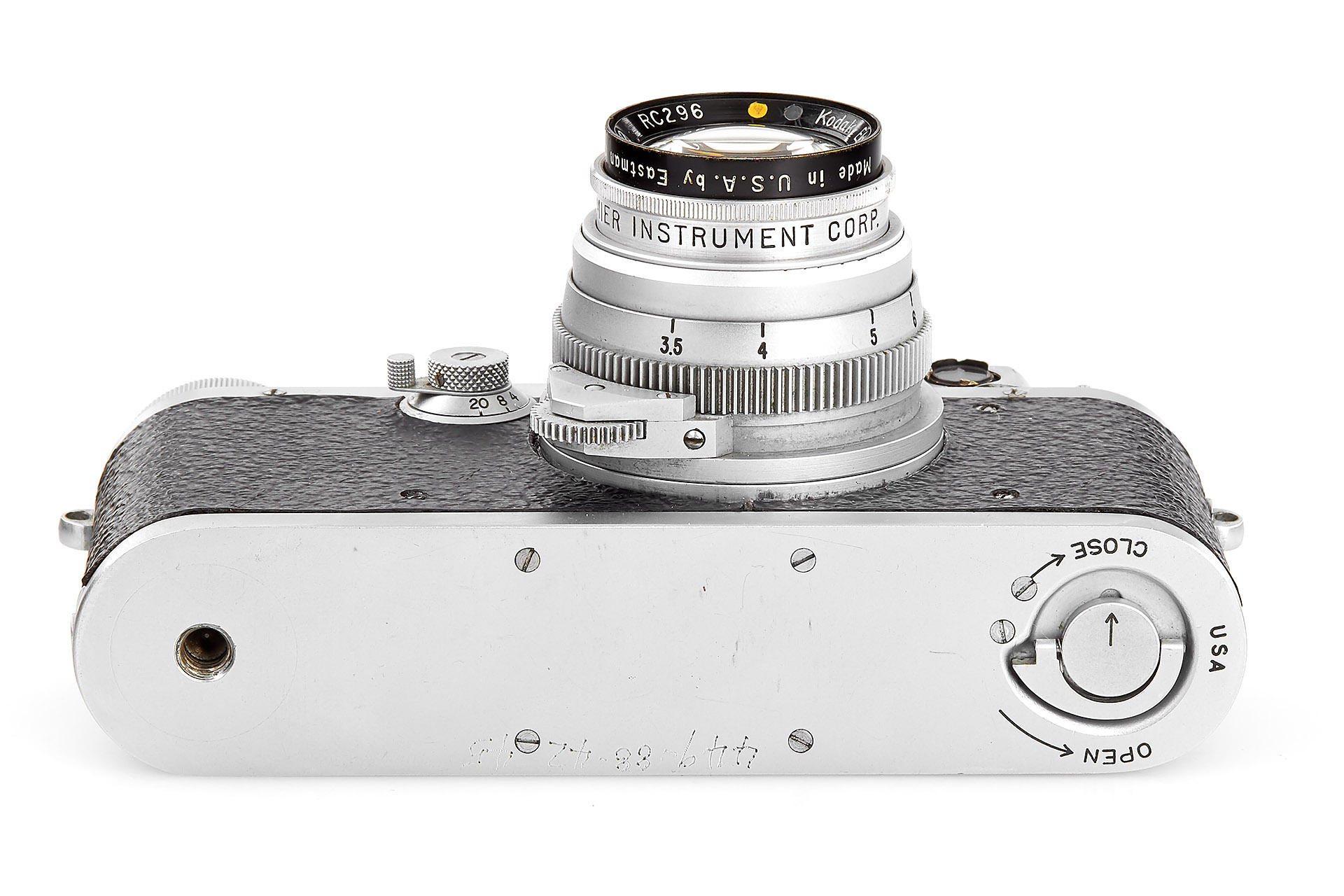 Leica IIIb copy made for US Army by Premier Instrument Co., in very good condition (missing one rim from the RF window), with matching Kodak Ektar 2/47mm no.RC296 (separation in front element, still usable), metal-plate with military markings on the rear of the body