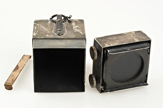 camera in form of a small metal box for square exposures 27x27mm or circular exposures with 27mm diameter in original condition