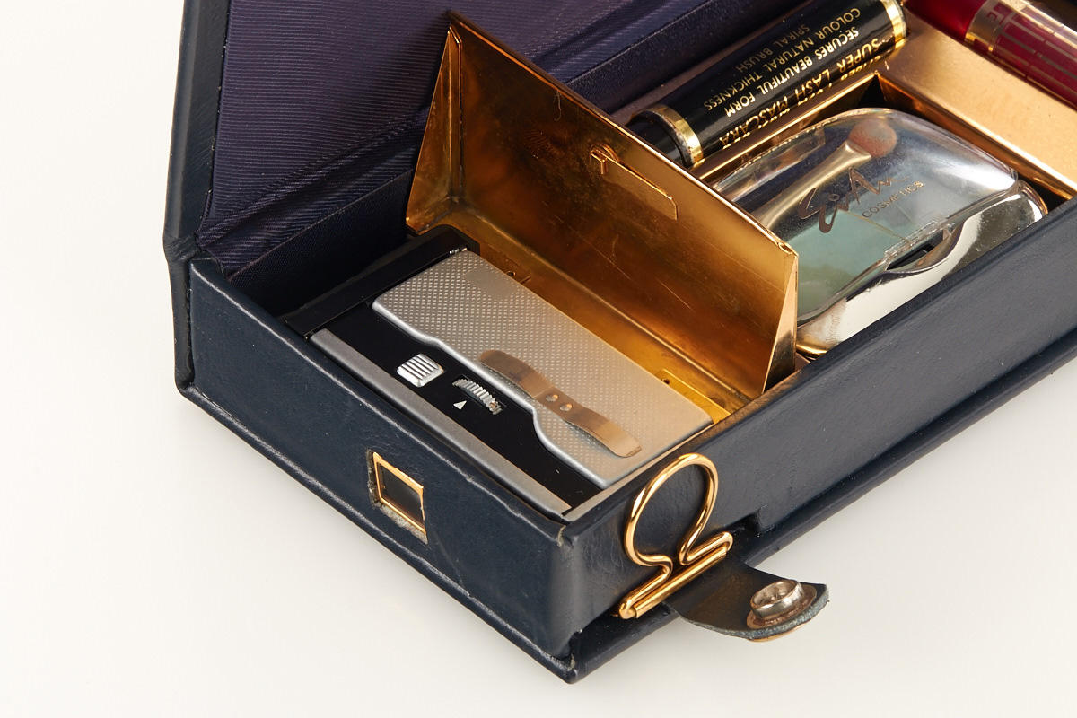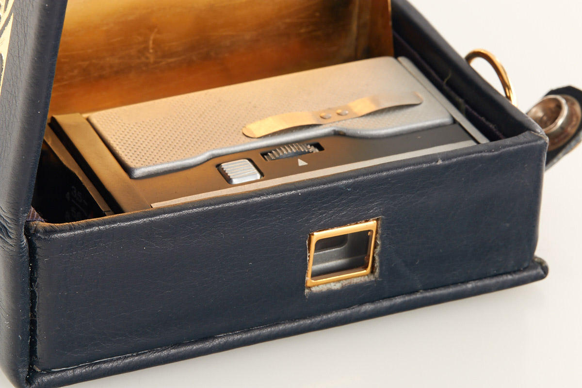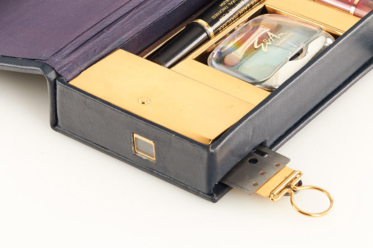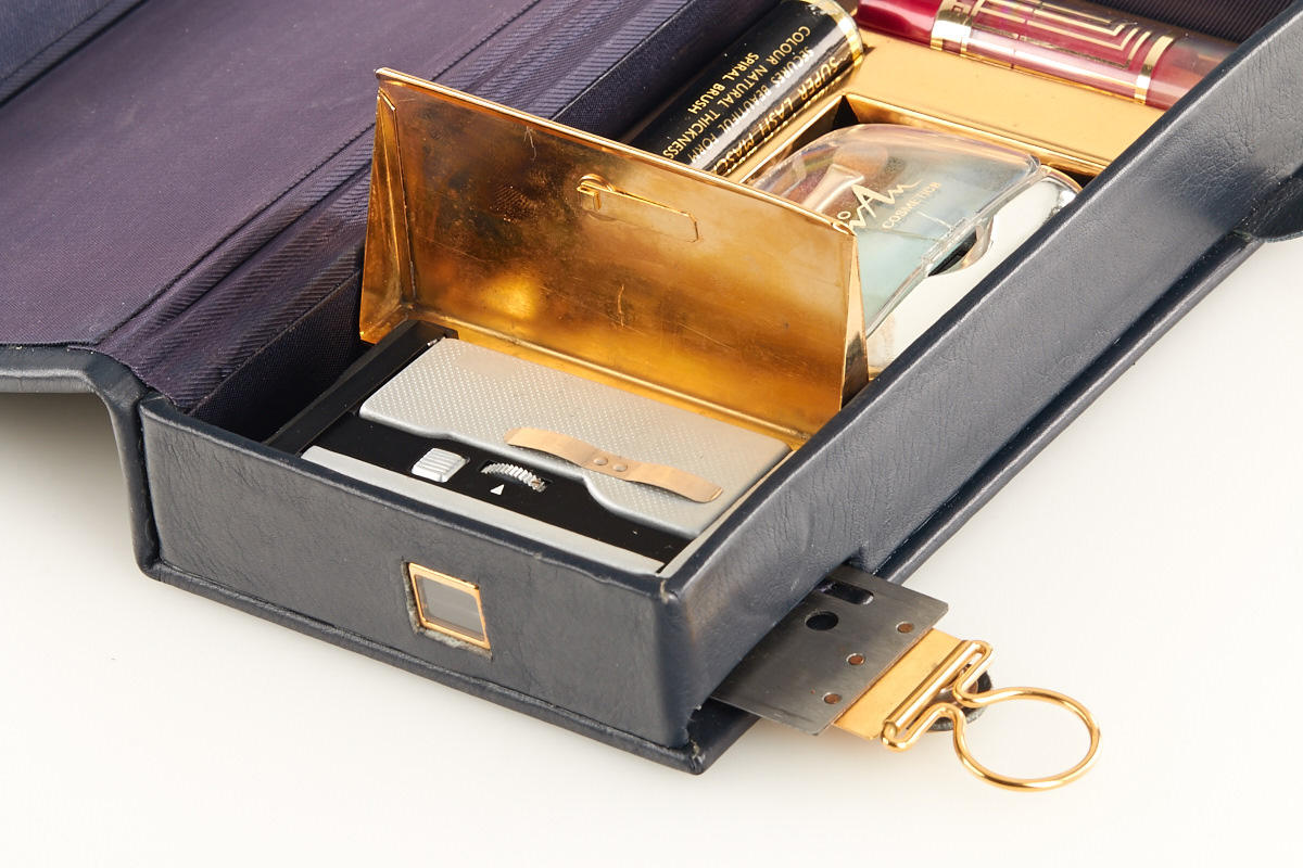 Vega 2 camera concealed as a leather covered vanity set, probably not an authentic spy outfit, still a very interesting camera