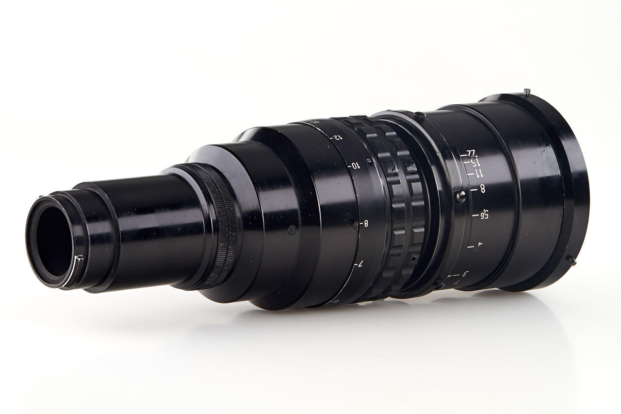 very rare cine lens in Cameflex mount, optics with cleaning marks and slight coating blemishes, front and rear cap