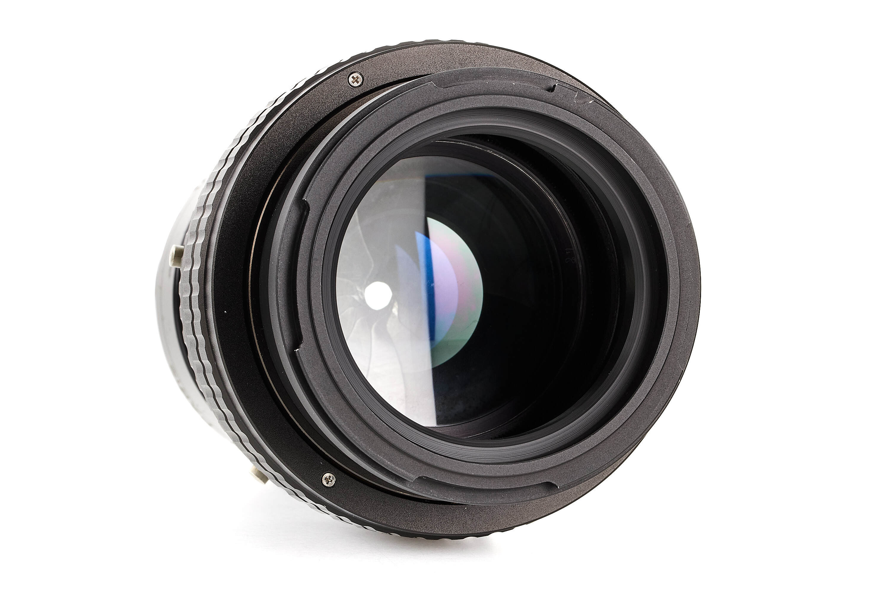 High-definition cine lens made in France, originally in Cameflex mount, here professionally adapted for Hasselblad, in very good condition, optics only showing some cleaning marks and glass corrosion, with rear cap.