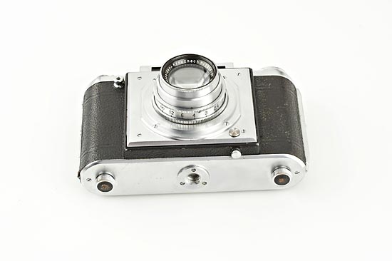 prototype of a 6x6cm viewfinder camera with coupled rangefinder, collapsible front with bellows and strut, focal plane shutter B, 1-1/1000 sec., bayonet mount, Xenar 2.8/7.5cm no.1308390, lavish and professionally crafted camera in top condition, unknown and never published, case, ex Spira Collection