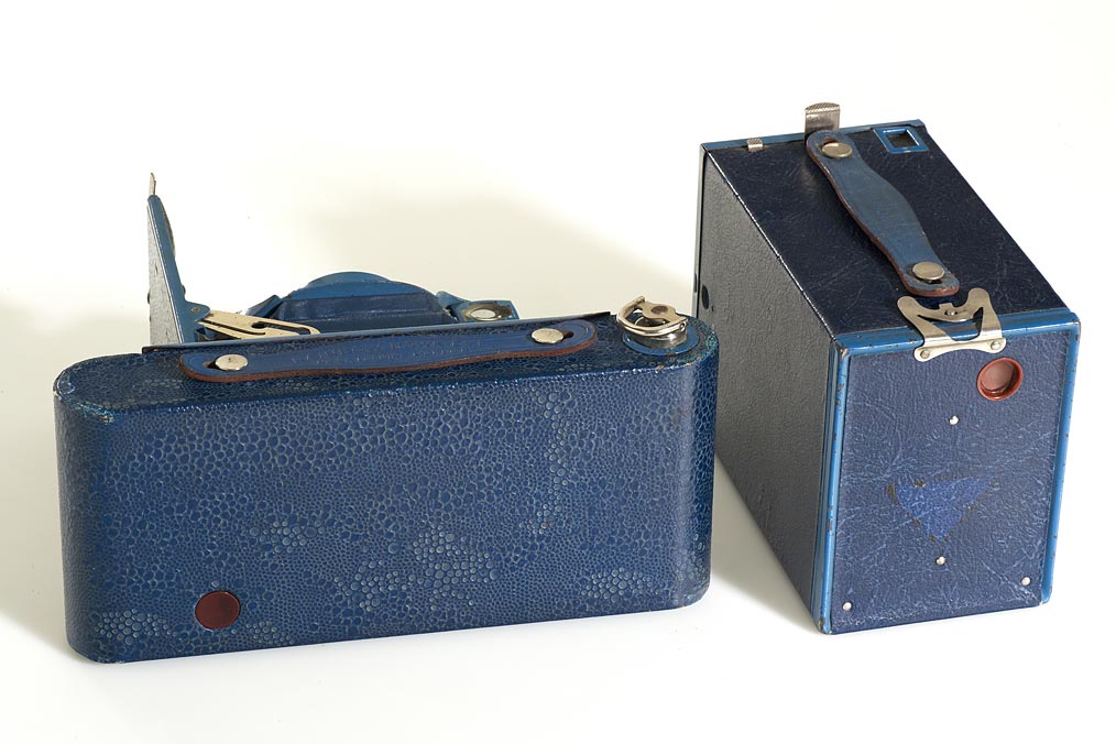 blue Kodak No.2 Brownie, blue Rainbow Hawk-Eye No.2A Folding Model B, both cameras in very good original condition, both with working shutters (2)