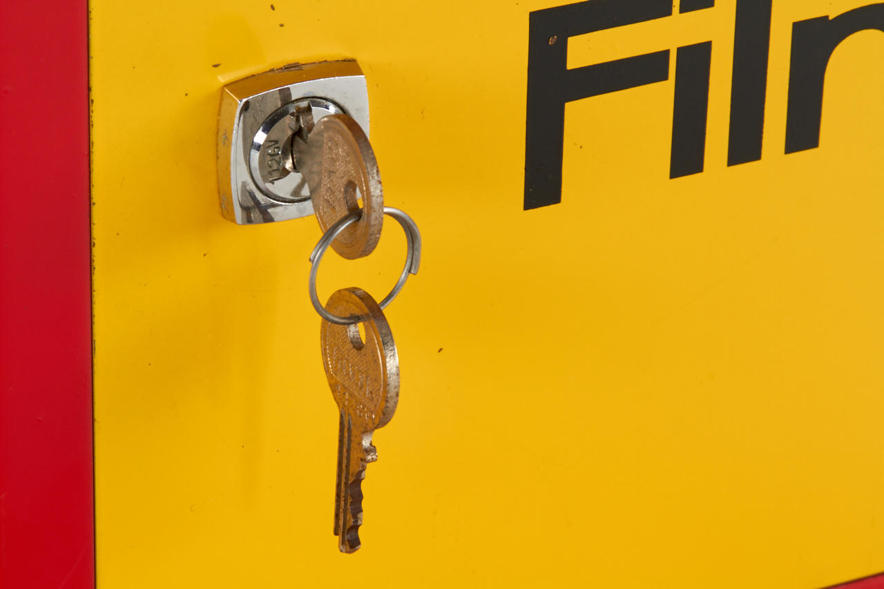 beautiful red/yellow Kodak mailbox, solid construction, in near mint condition with only minimal signs of age, inclusive two keys