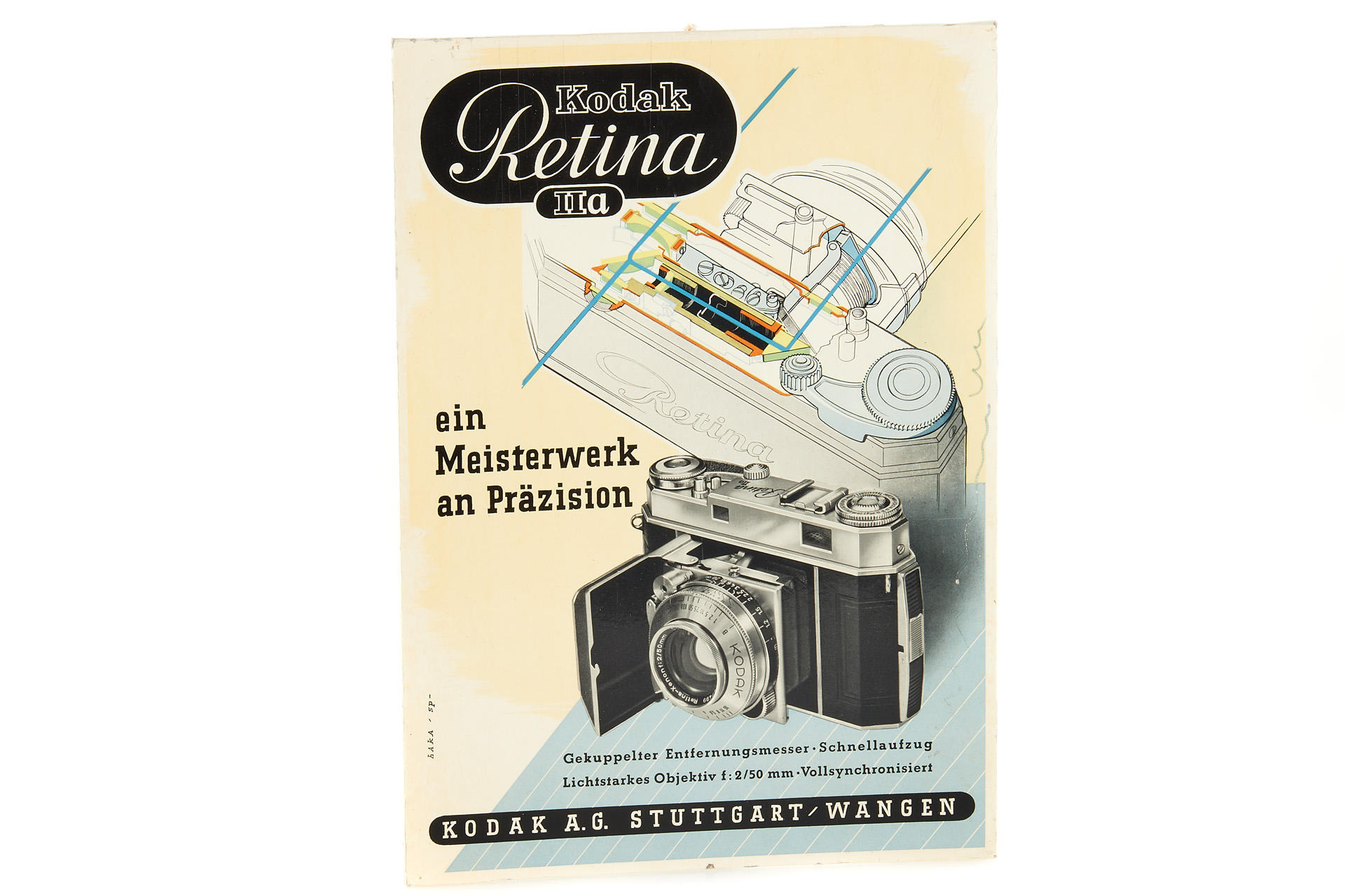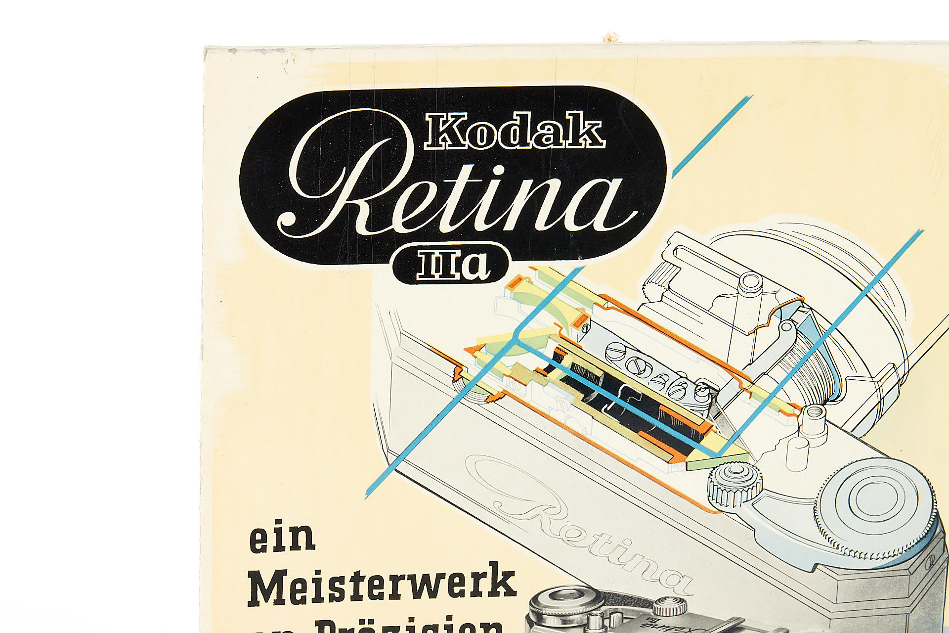Very nice vintage German counter sign made of cardboard showing the rangefinder system of the Kodak Retina IIa (29x21cm), in very good condition