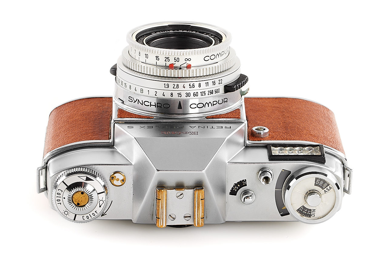 Rare prototype of the Kodak Retina Reflex S, in almost mint condition, unusual light brown leather cover, with Retina-Xenar 2.8/50mm no.6633841.