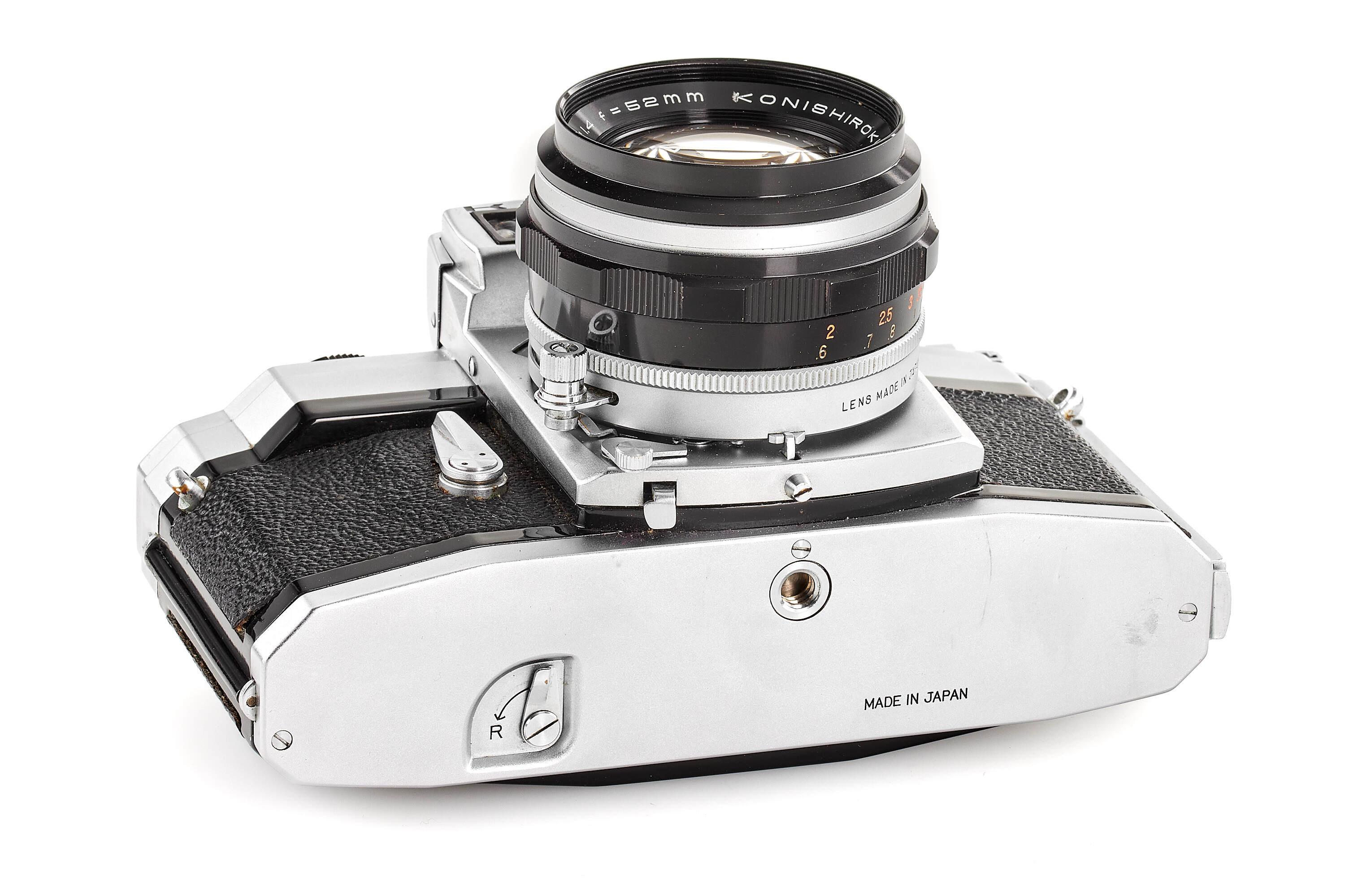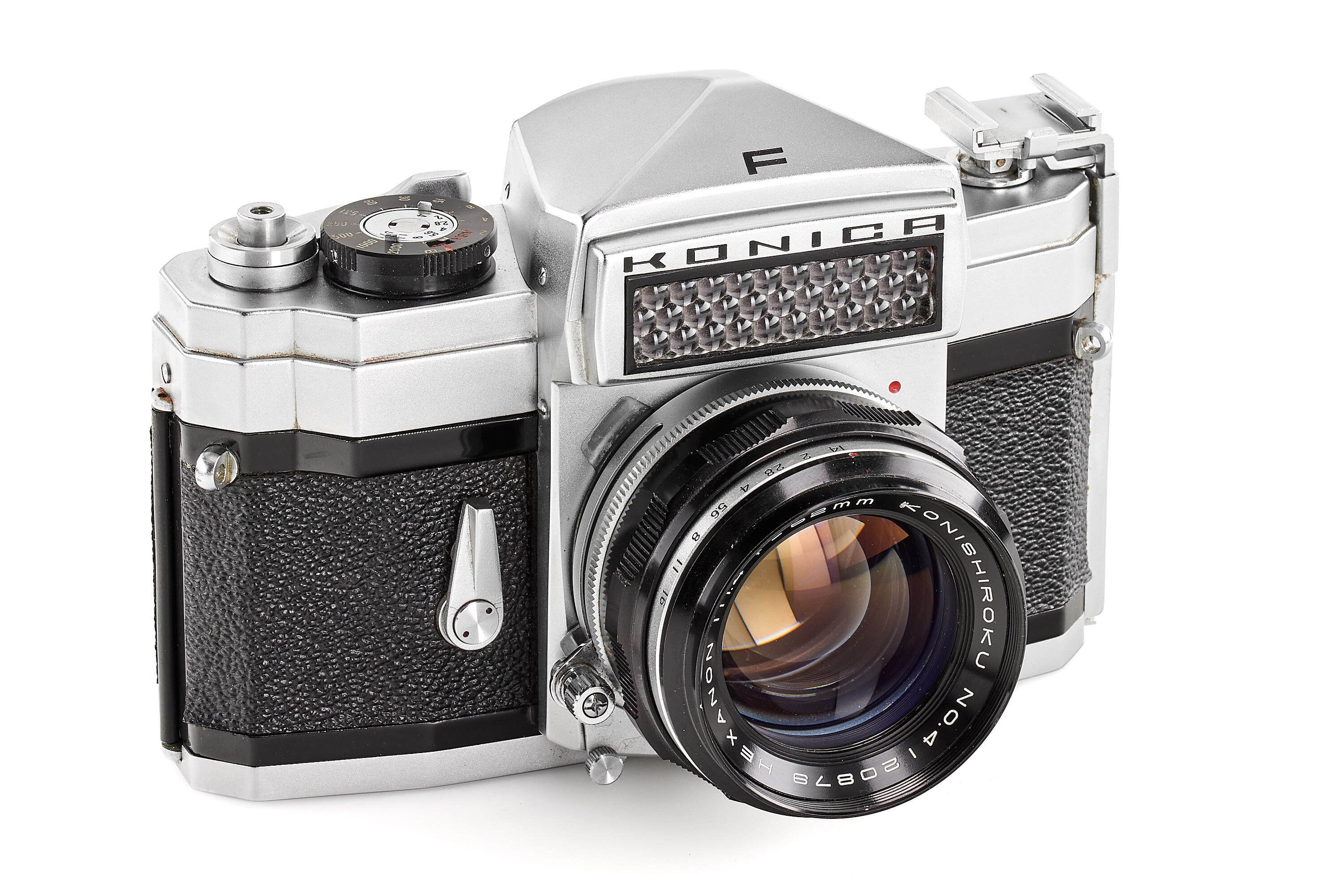 An extremely rare Konica F, introduced in 1960 as the company’s very first 35 mm single-lens reflex camera and one of the earliest Japanese SLRs with an instant-return mirror. The Konica F was produced only in very limited numbers (fewer than 1,600 units are believed to have been made) before being quickly replaced by the more advanced FS model, making it one of the hardest Konica cameras to find today.