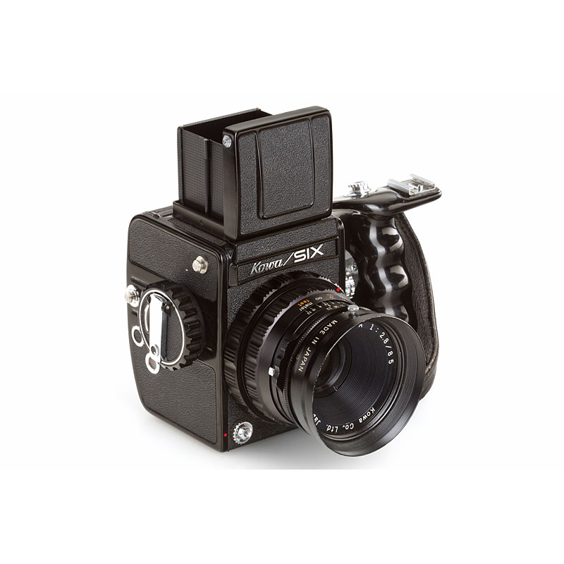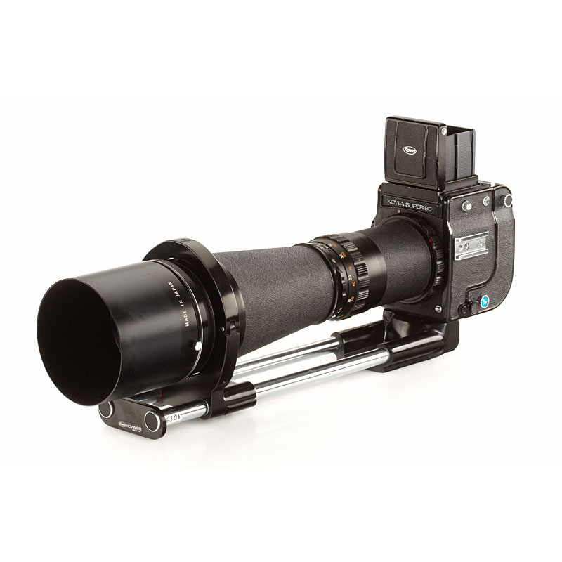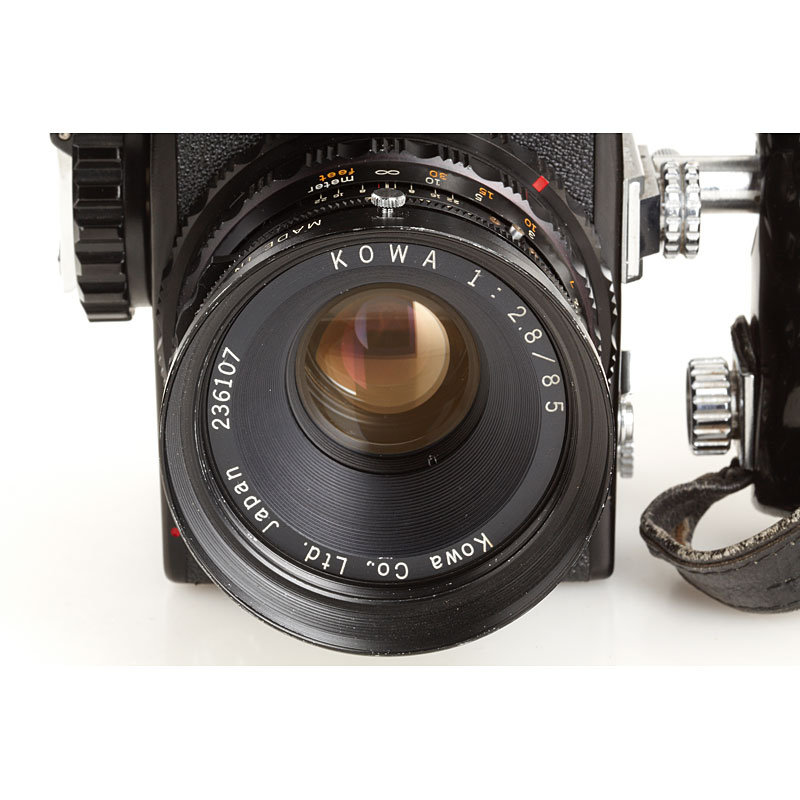 fine outfit in good working order with Kowa/SIX no.324330 (grip), Kowa Super 66 no.605101, Kowa 2.8/85mm no.236107 (hood, cap), Kowa 3.5/35mm no.380027 (caps), chrome Kowa Lens-S 3.5/55mm no.1450544 (caps), Kowa 5.6/110mm no.440025 (cap), Kowa 8/500mm no.390131 (with tripod attachment, hood), spare magazine back, sports finder (maker's box), spare focusing screen (maker's box), black prism