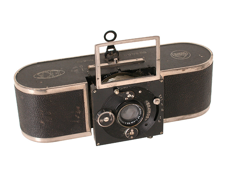 30x44mm Aufnahmen auf unperforiertem 35mm Film, Tessar Zeiss 3,5/5cm Nr. 157136, Rädchen-Compur Verschluss, Klassiker in gutem Zustand !