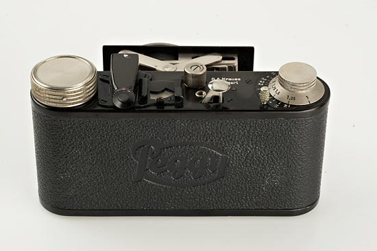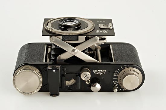 black version in top condition with Tessar 3.5/5cm no.1293246, with both spools, one additional spool in a "Peggy" metal cassette