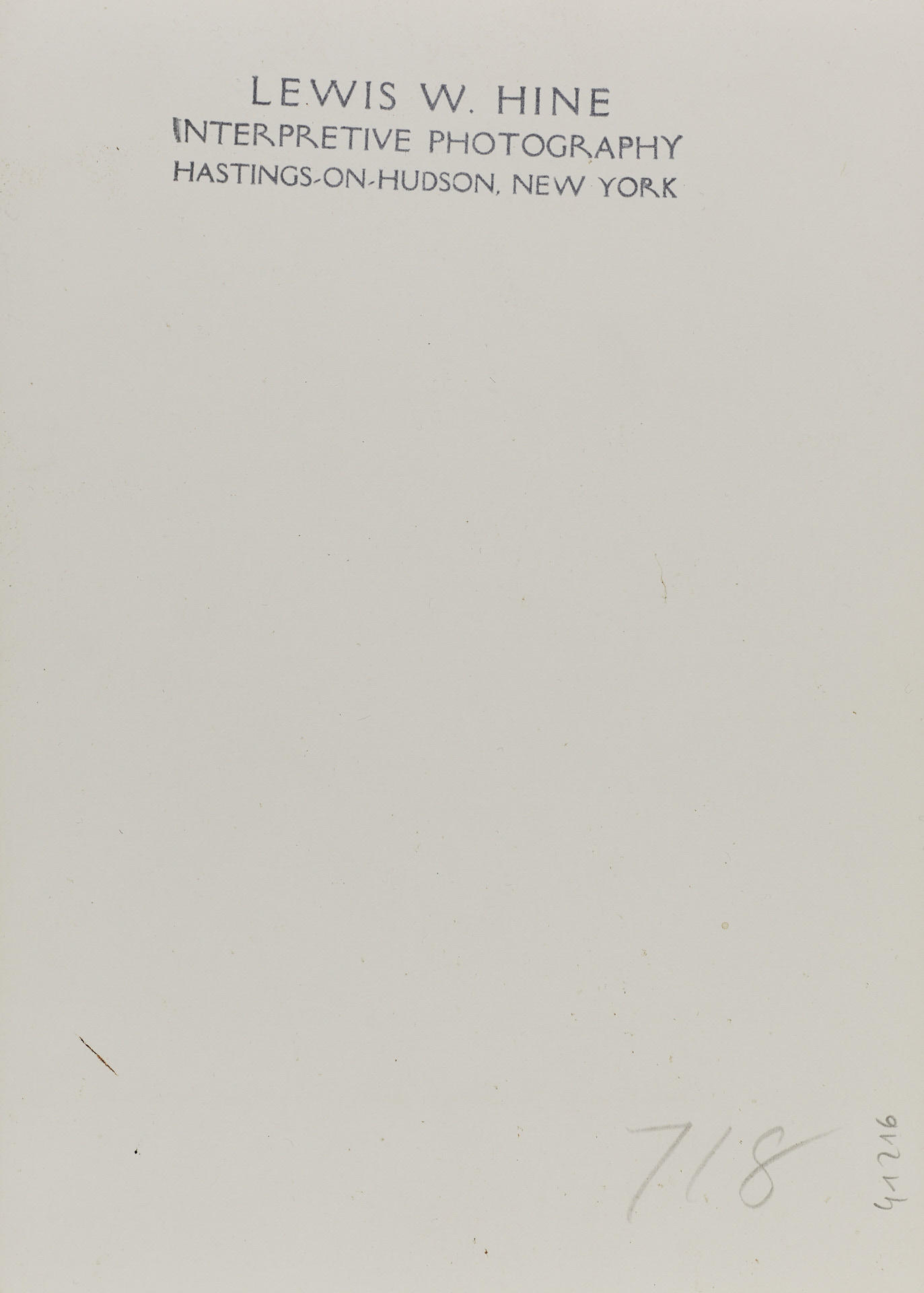 Gelatin silver print, printed in the 1930s, blacklight tested 12,7 x 17,8 cm Photographer's "Hine's Interpretive Photography Hastings-on-Hudson" hand stamp on the reverse