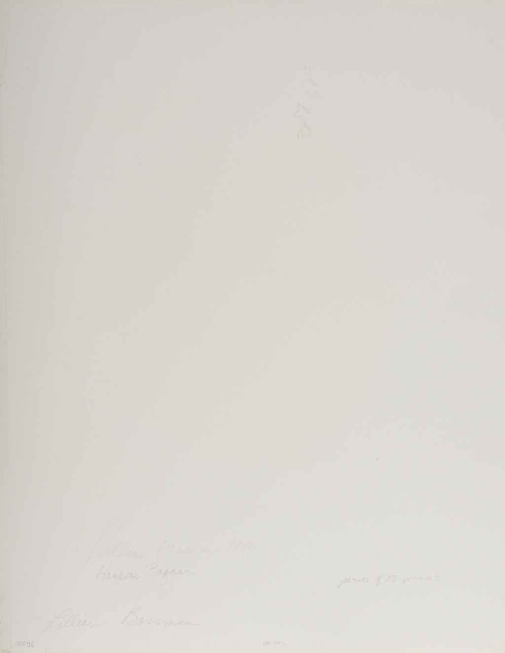Gelatin silver print, printed 1994 47,7 x 36,9 cm (18.8 x 14.5 in) Signed, dated and annotated by the photographer in pencil on the reverse, edition no. 3/25 LITERATURE Ingo Taubhorn / Brigitte Woischnik (ed.), Lillian Bassman & Paul Himmel. The First Retrospective, Heidelberg 2009, p. 398.