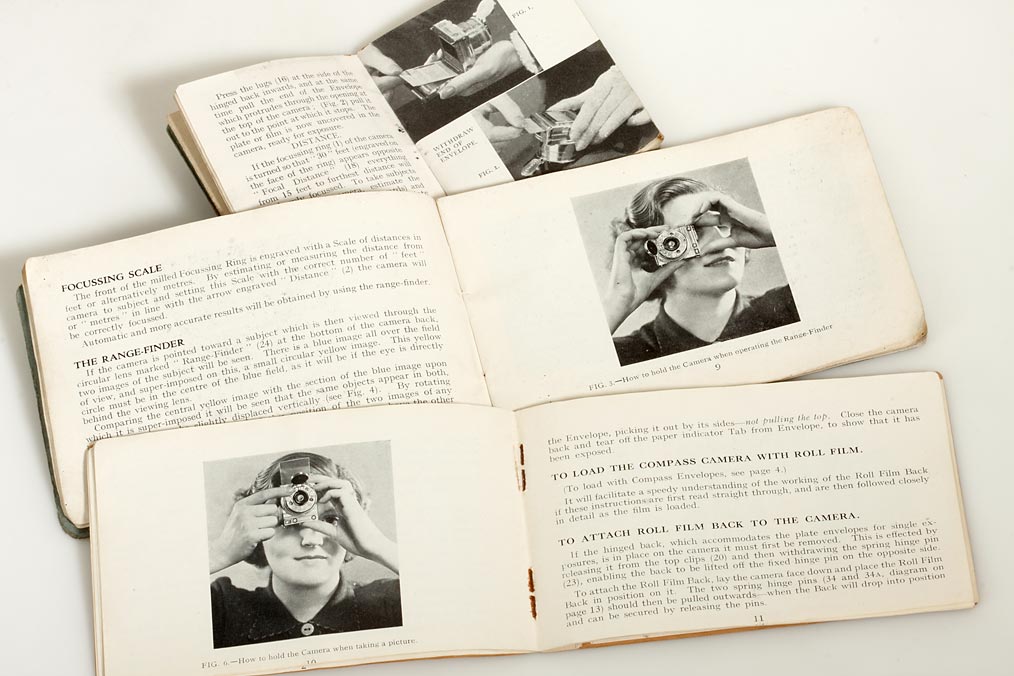 very rare instruction book for Compass I (How to take snap-shoots with the Compass Camera I), instruction book for Compass II (instructions for the use of the Compass camera II), general Compass instructions (instructions for use of the Compass camera) (3)
