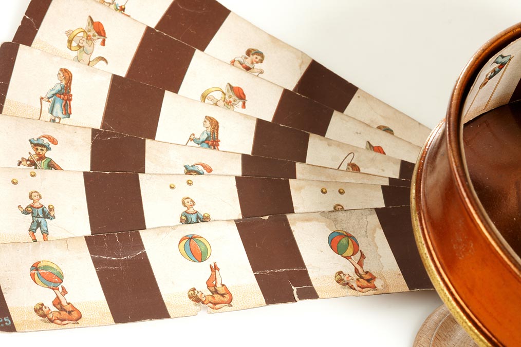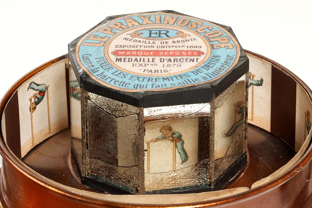 rare miniature Praxinoscope with 7 original stripes, replica label on top otherwise in excellent original condition