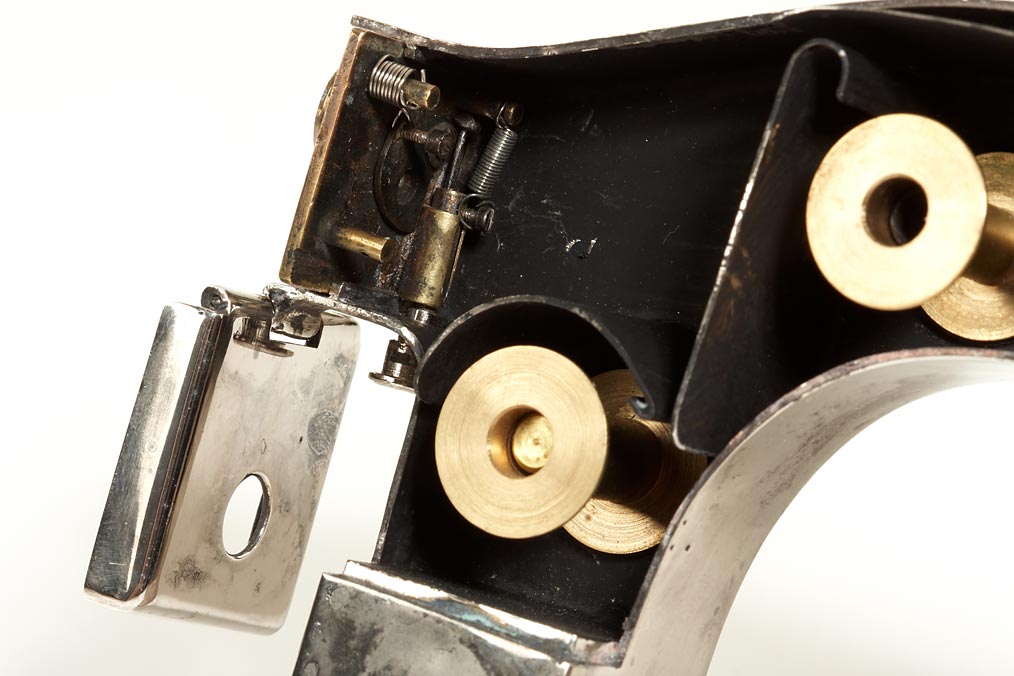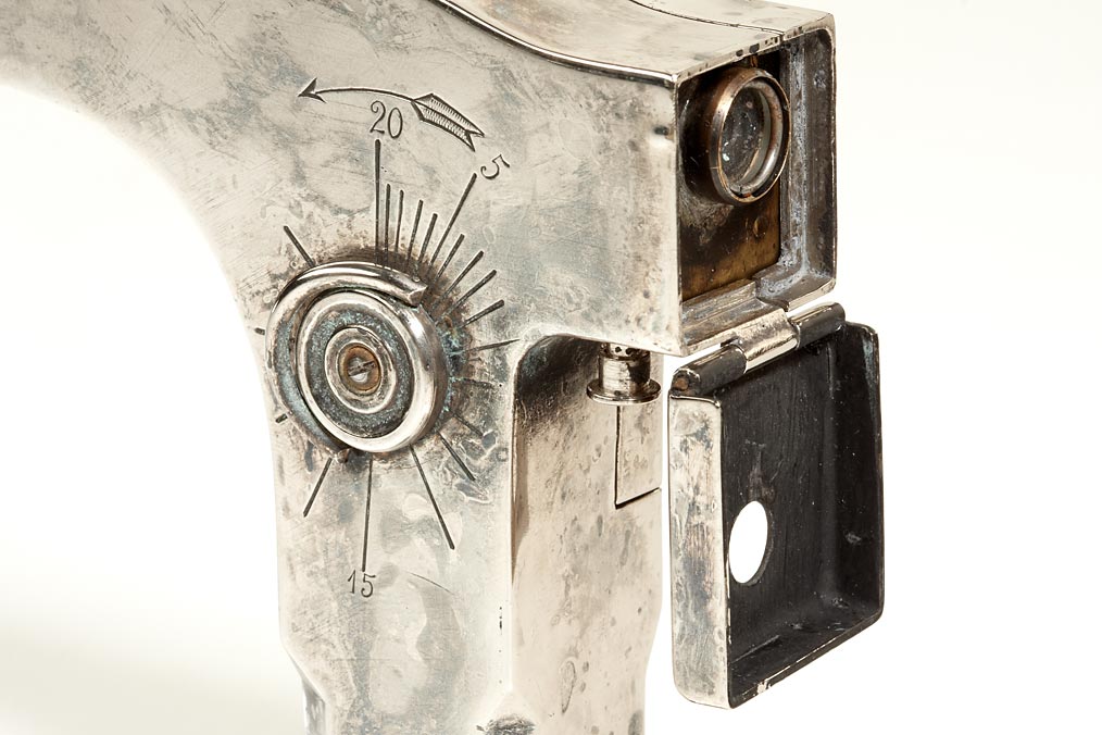 very well-made copy of the famous walking stick camera, nickel plated brass body, with filmspools, lens, Emil Kronke patented his cane handle camera in Britain (1902), Germany (1903) and the United States (1904). It was manufactured by A. Lehmann, Berlin and marketed as the Ben Akiba walking stick camera. Literature: Eaton S. Lothrop (1973), A Century of Cameras p102