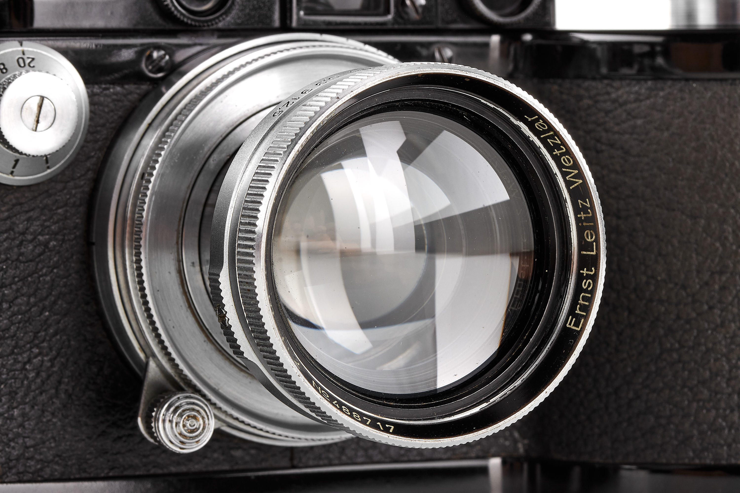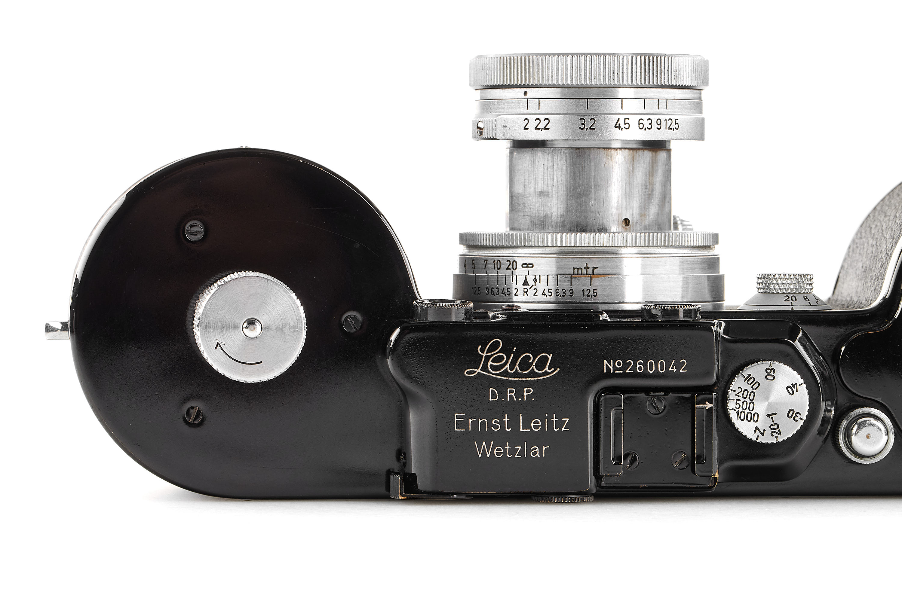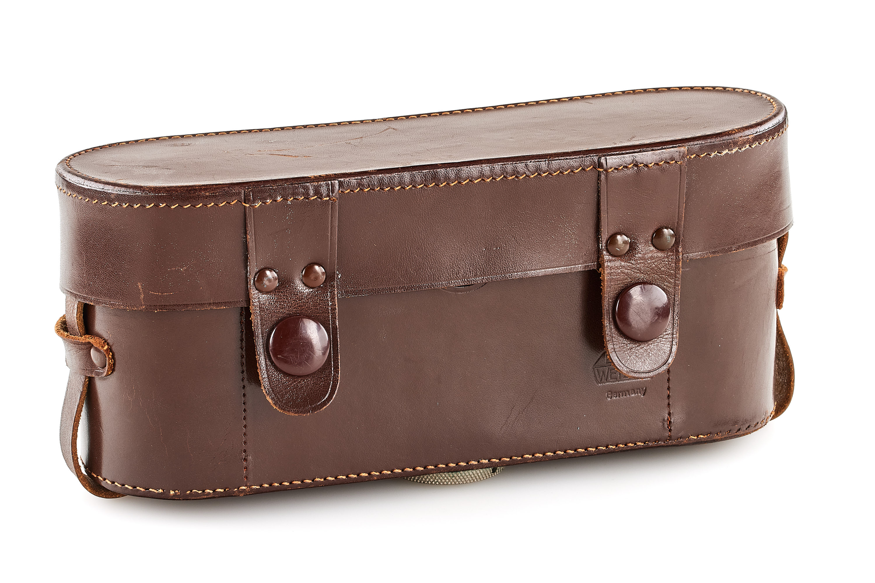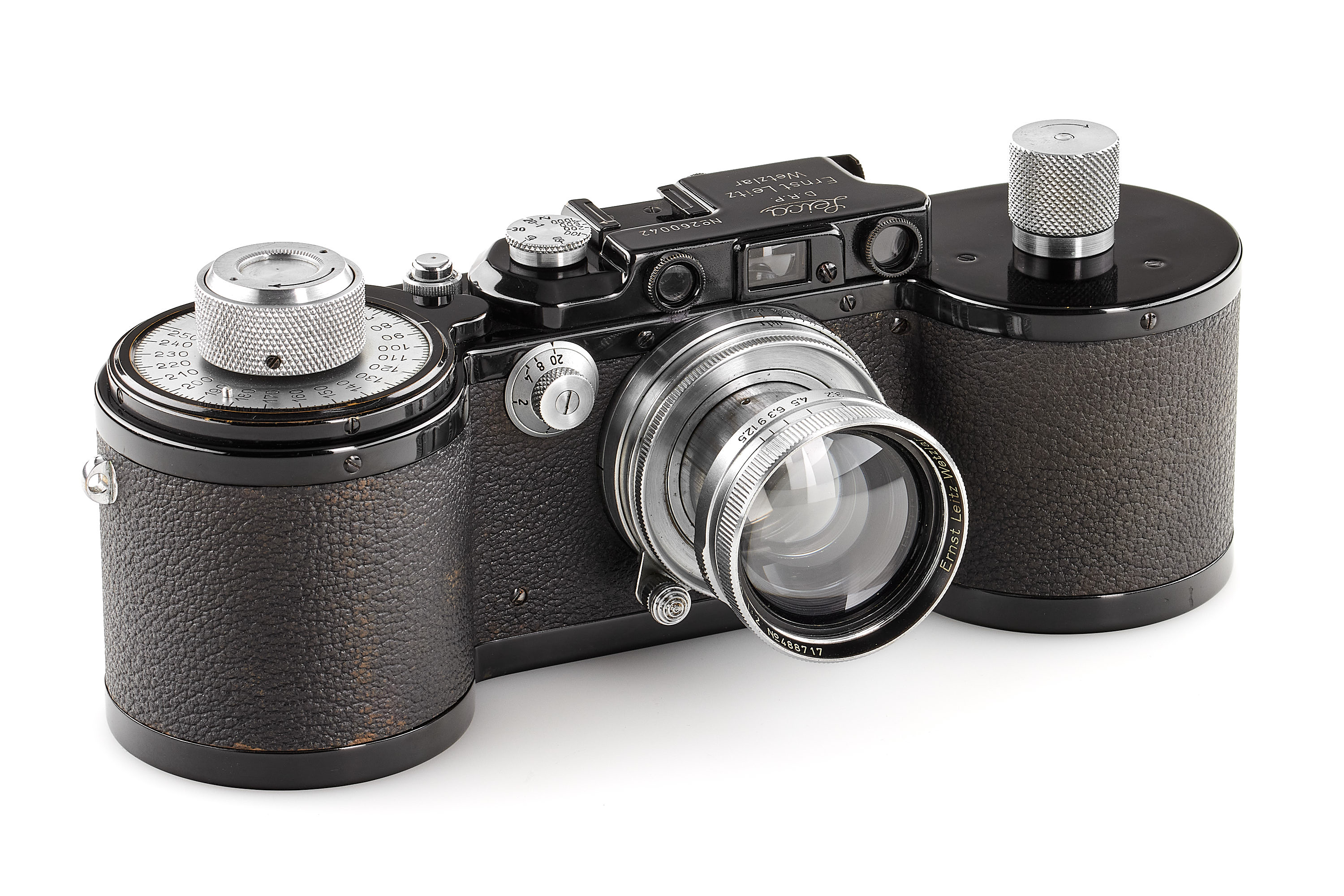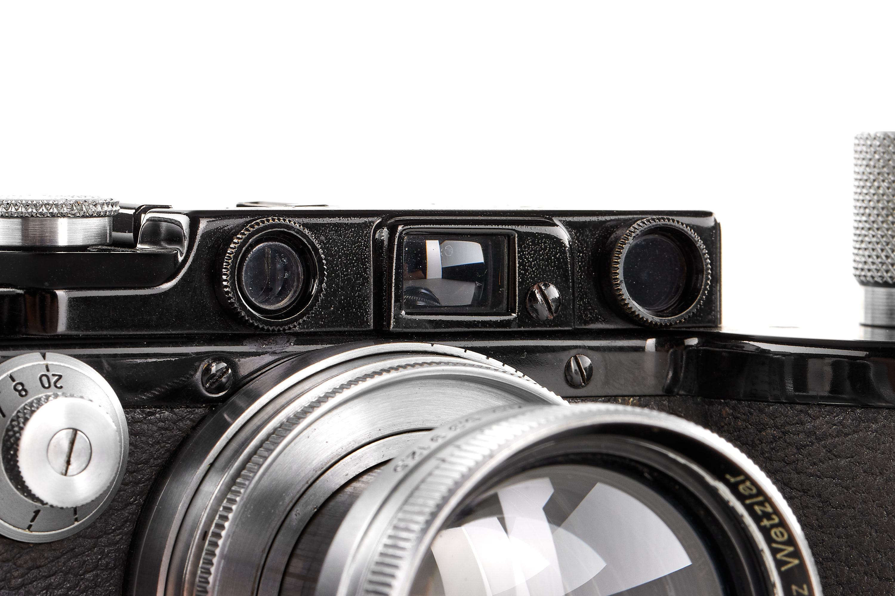 A sought-after Reporter Leica for 250 exposures on 35mm film. in exceptional, near-mint condition with only minimal signs of use. With Summitar 2/5cm no.488717, two cassettes and rare ESFOO eveready case. The camera was delivered to Berlin on 24.02.1936.