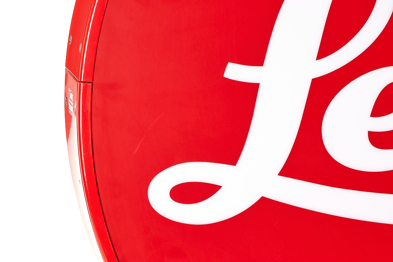 Sought-after classic Leica sign, large format with lamp, in almost mint condition and working order, 69cm in diameter.