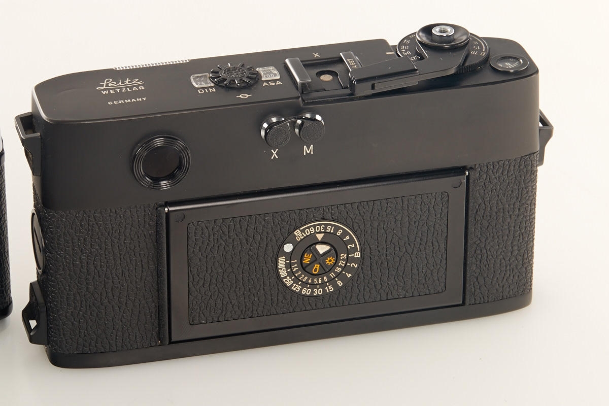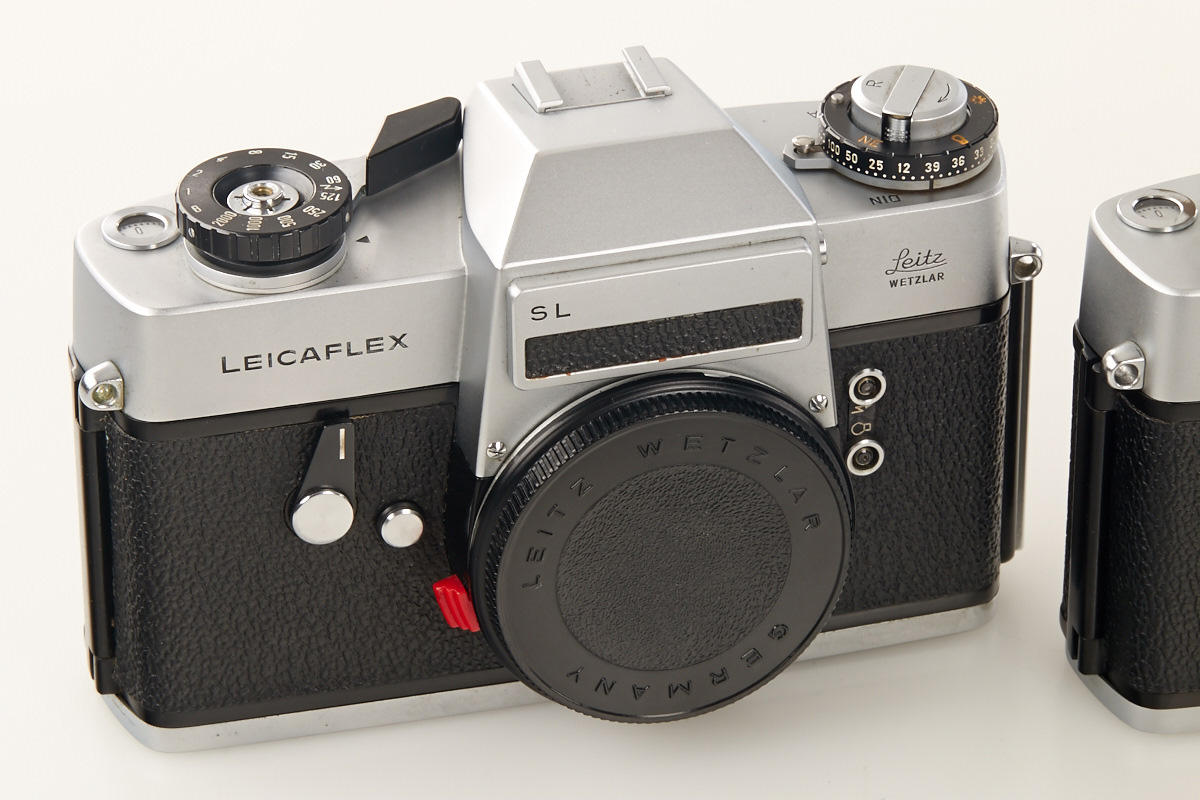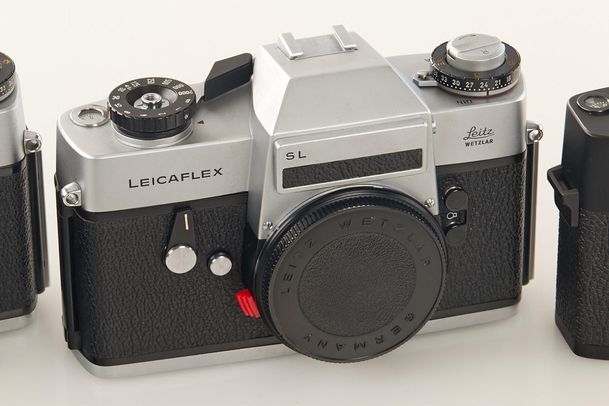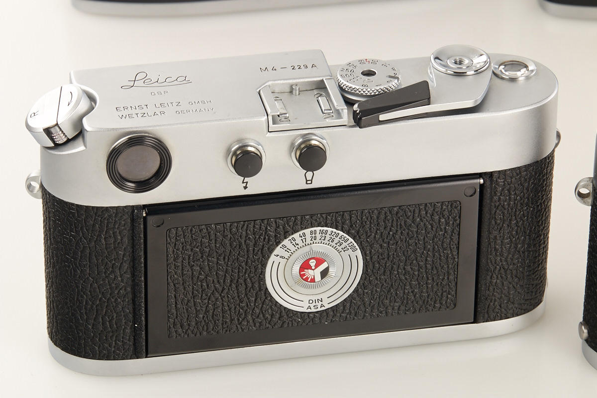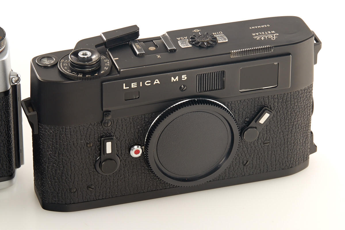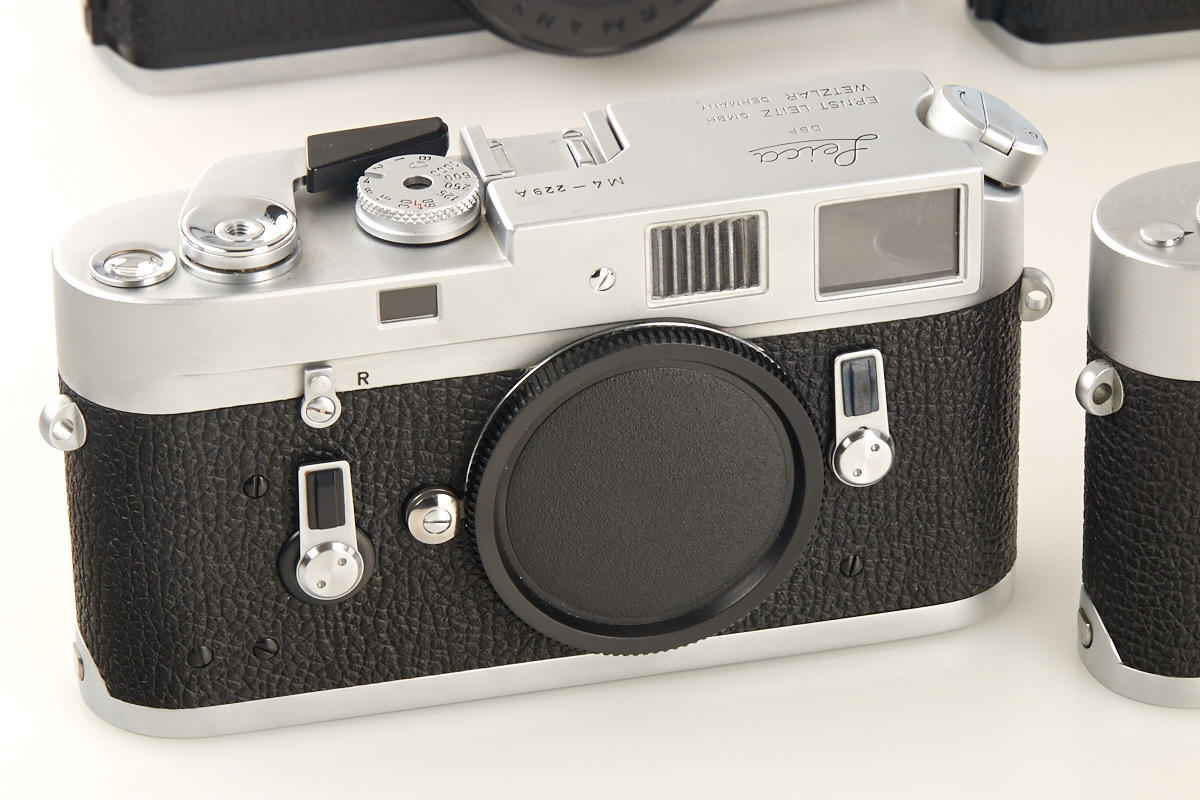 (1) M2 dummy no.12919A (cond. B), (2) M2 dummy with self timer no.13118A (cond. B+), (3) M4 dummy no.229A (cond. A/B), (4) M5 black dummy no.A667, (5+6) two Leicaflex SL dummies without numbers, all with body caps