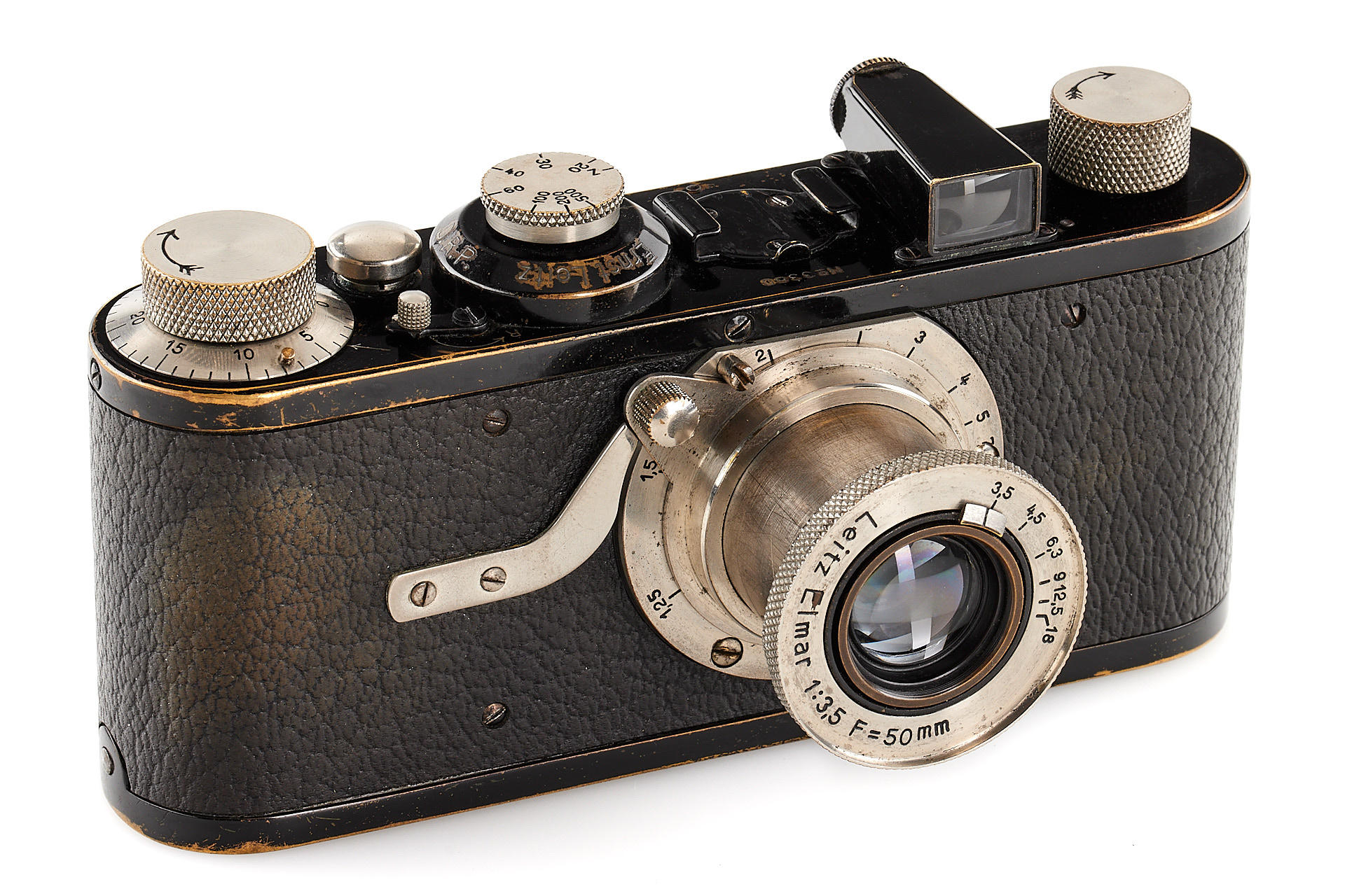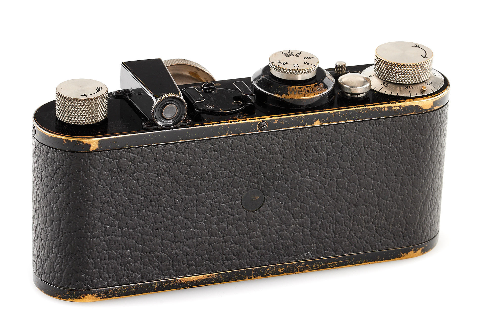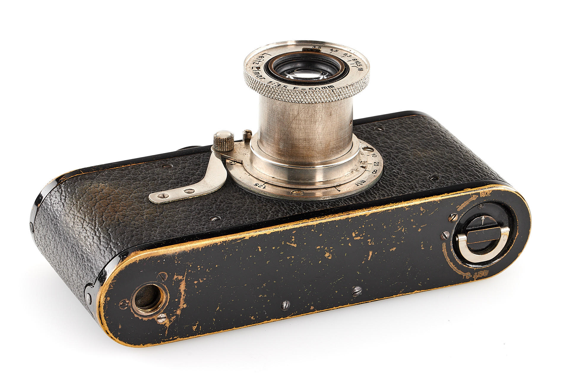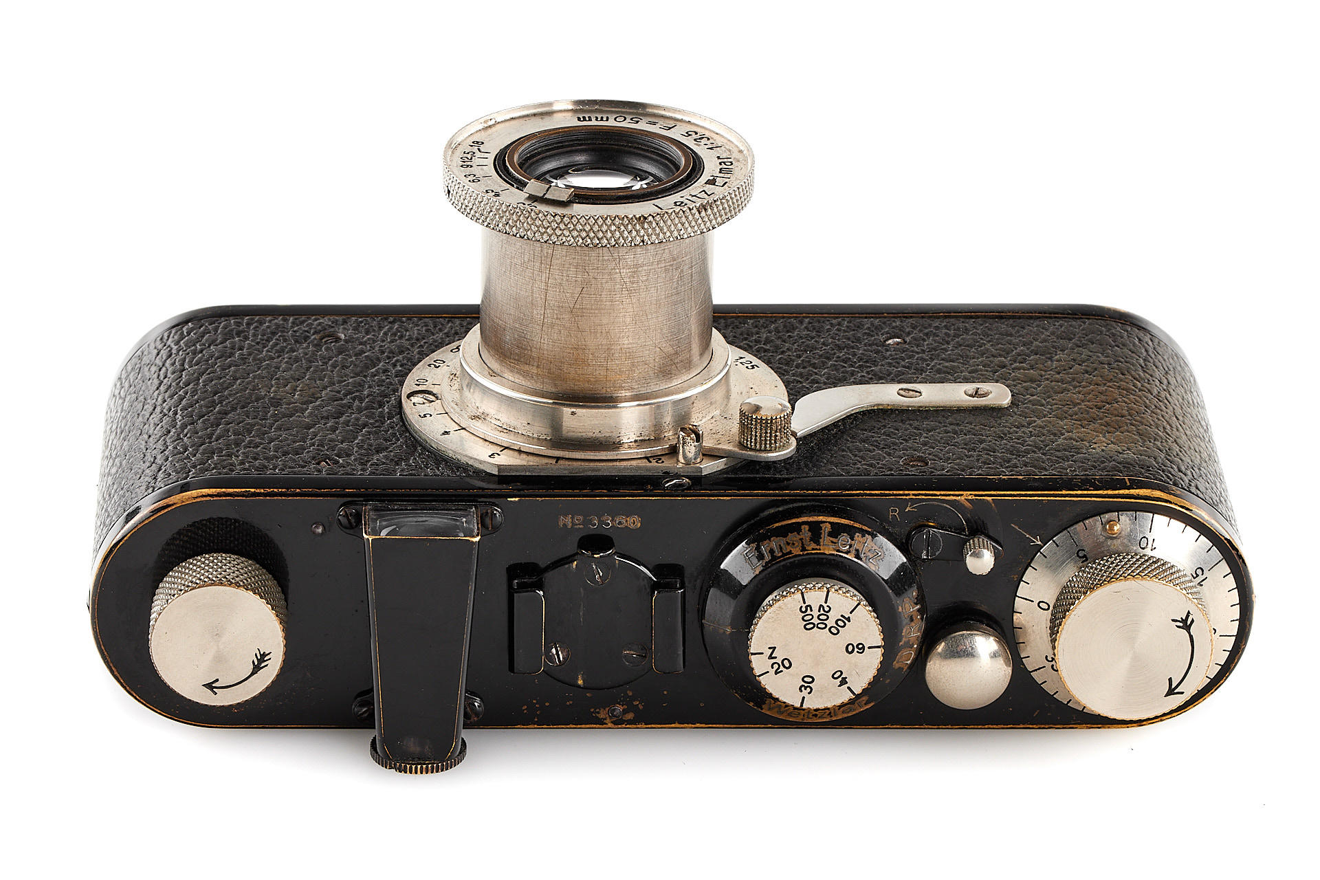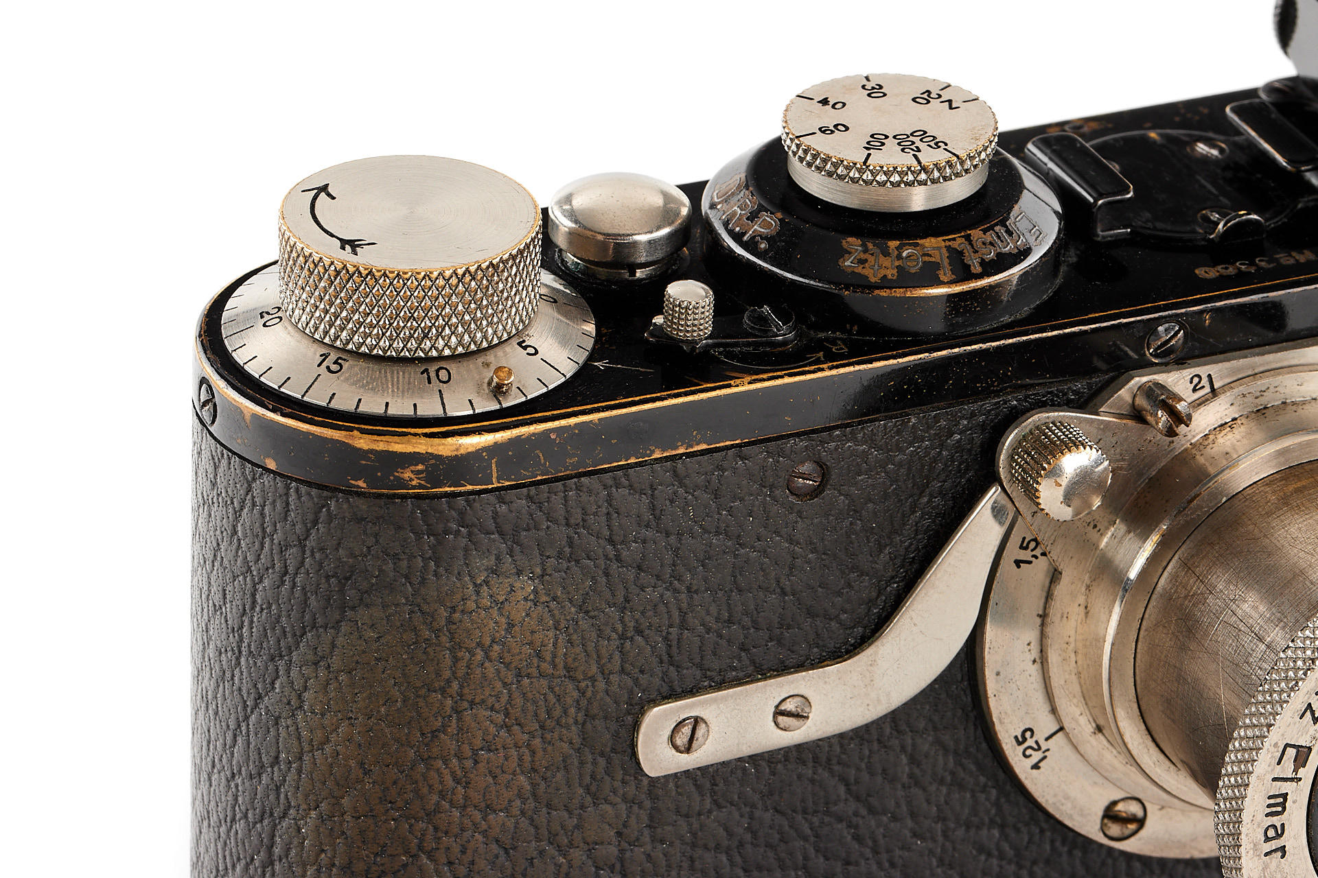 rare early Leica I with Elmar, 2nd version (see von Einem 'Die 10 Varianten der klassischen Leica I A mit Elmar 1:3.5 F=50mm') in good, original condition and working order, with mushroom type release button and feathered arrows on both winding and rewinding cranks, together with ETRIN case (cond. B), 2x spools and bakelite front cap, first delivered to Dresden on 31.5.1927