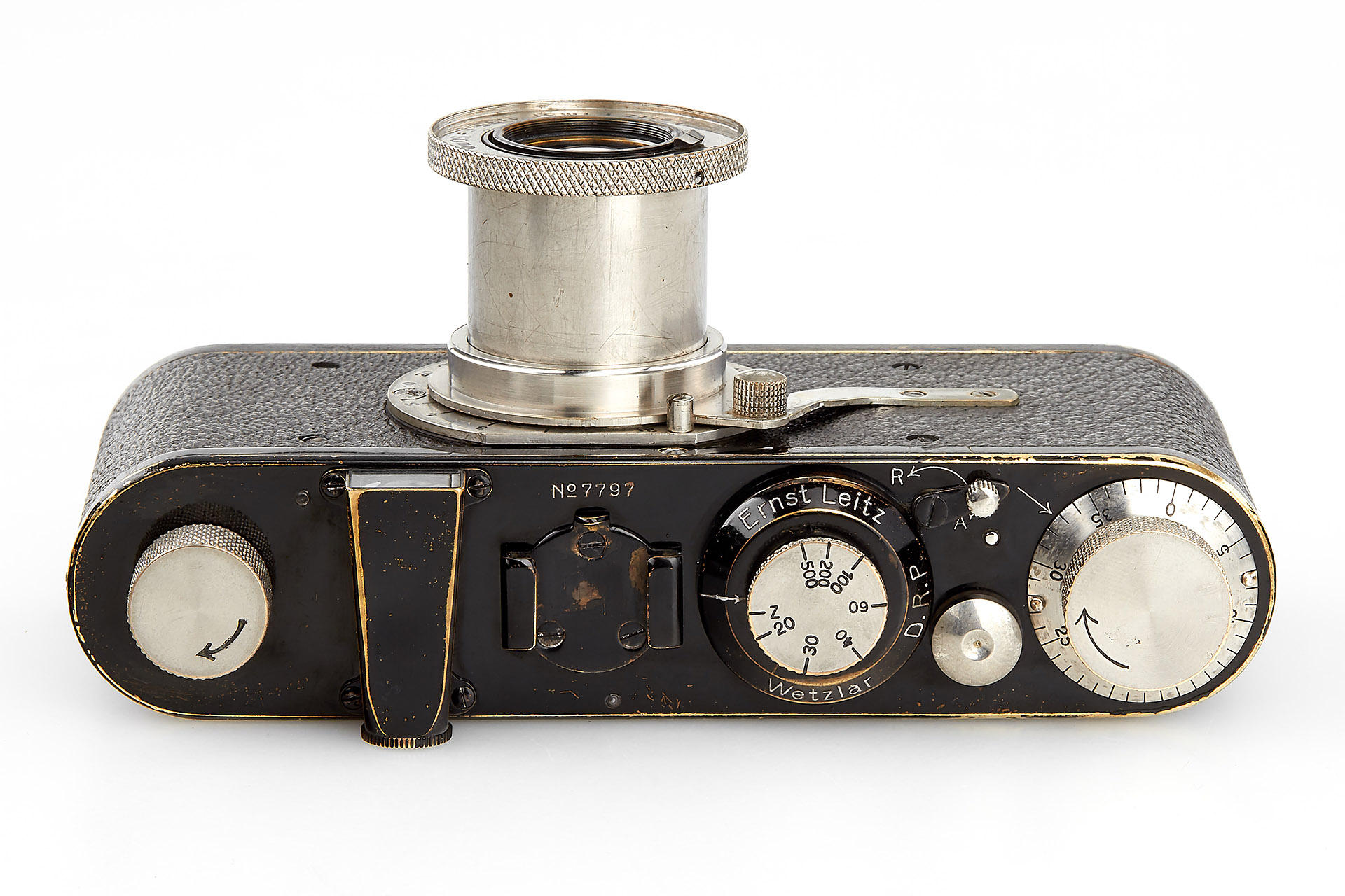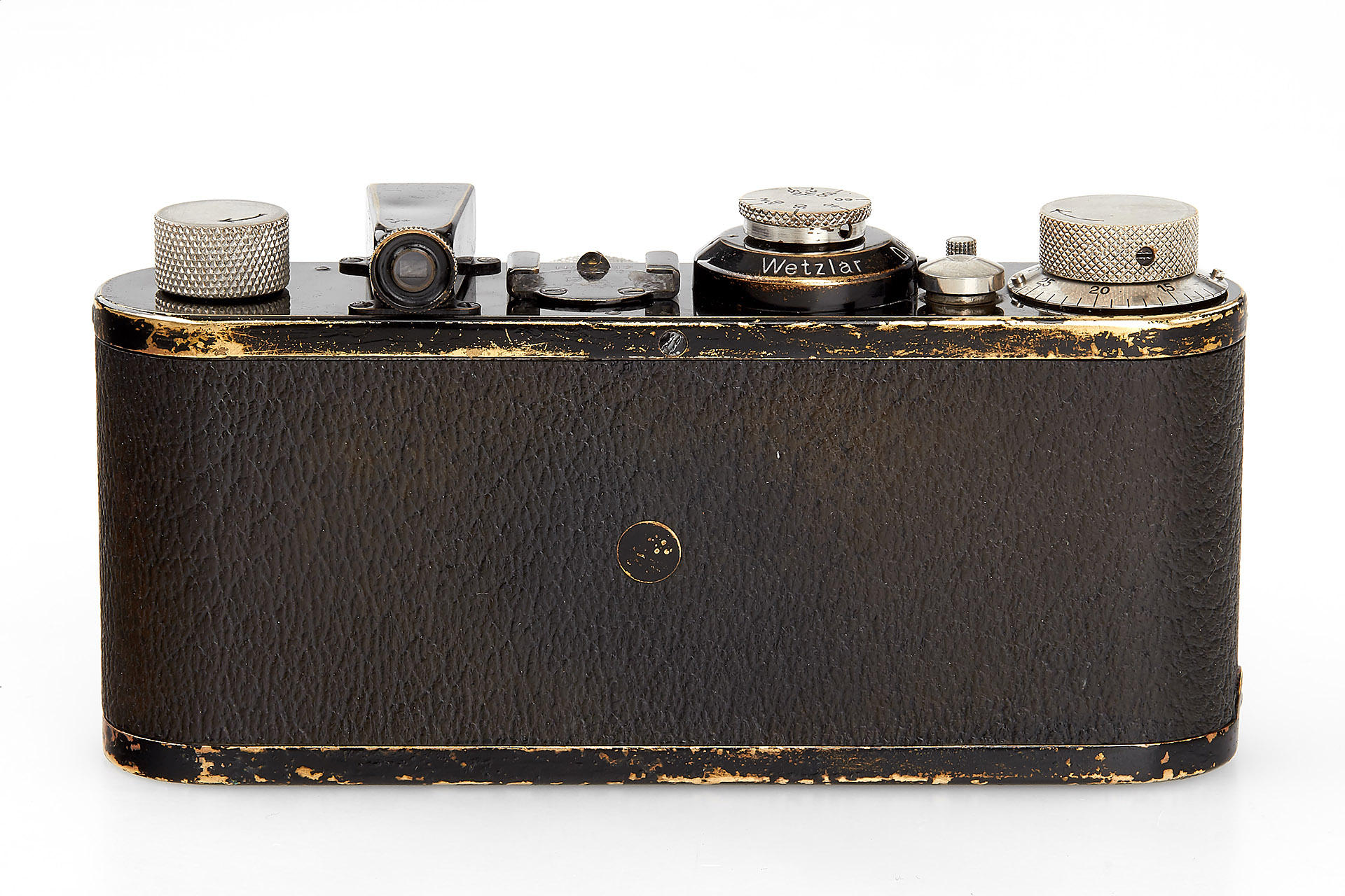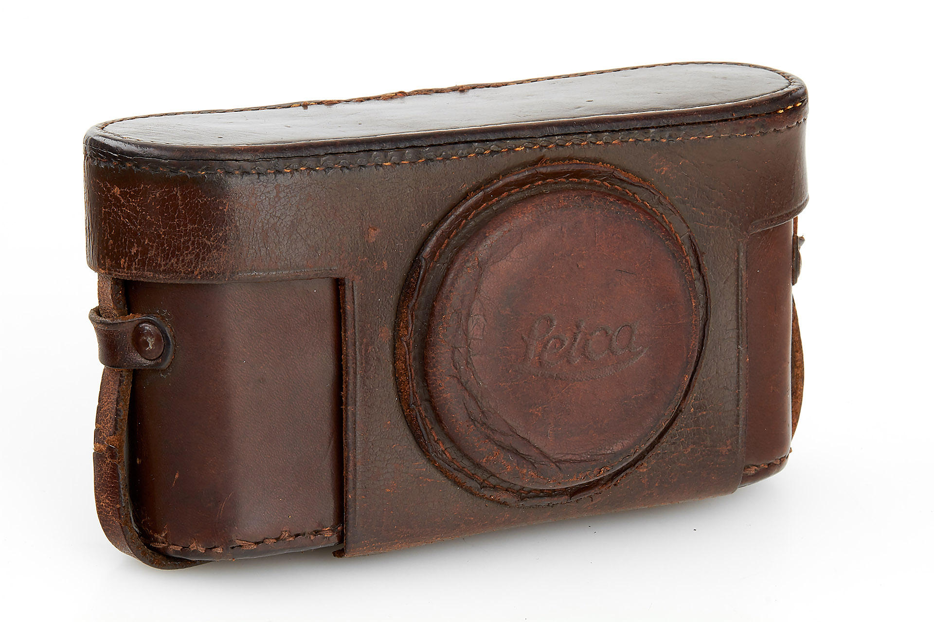 early Leica camera in fine condition, base plate repainted, otherwise all original parts, with early ever-ready case and lens cap