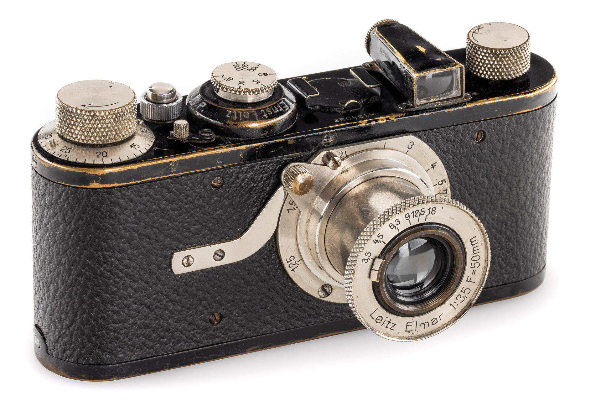 7th version (see von Einem 'Die 10 Varianten der klassischen Leica I A mit Elmar 1:3.5 F=50mm') first delivered to Vienna on 11.04.1930, in good, original condition with good vulcanite and nice patina