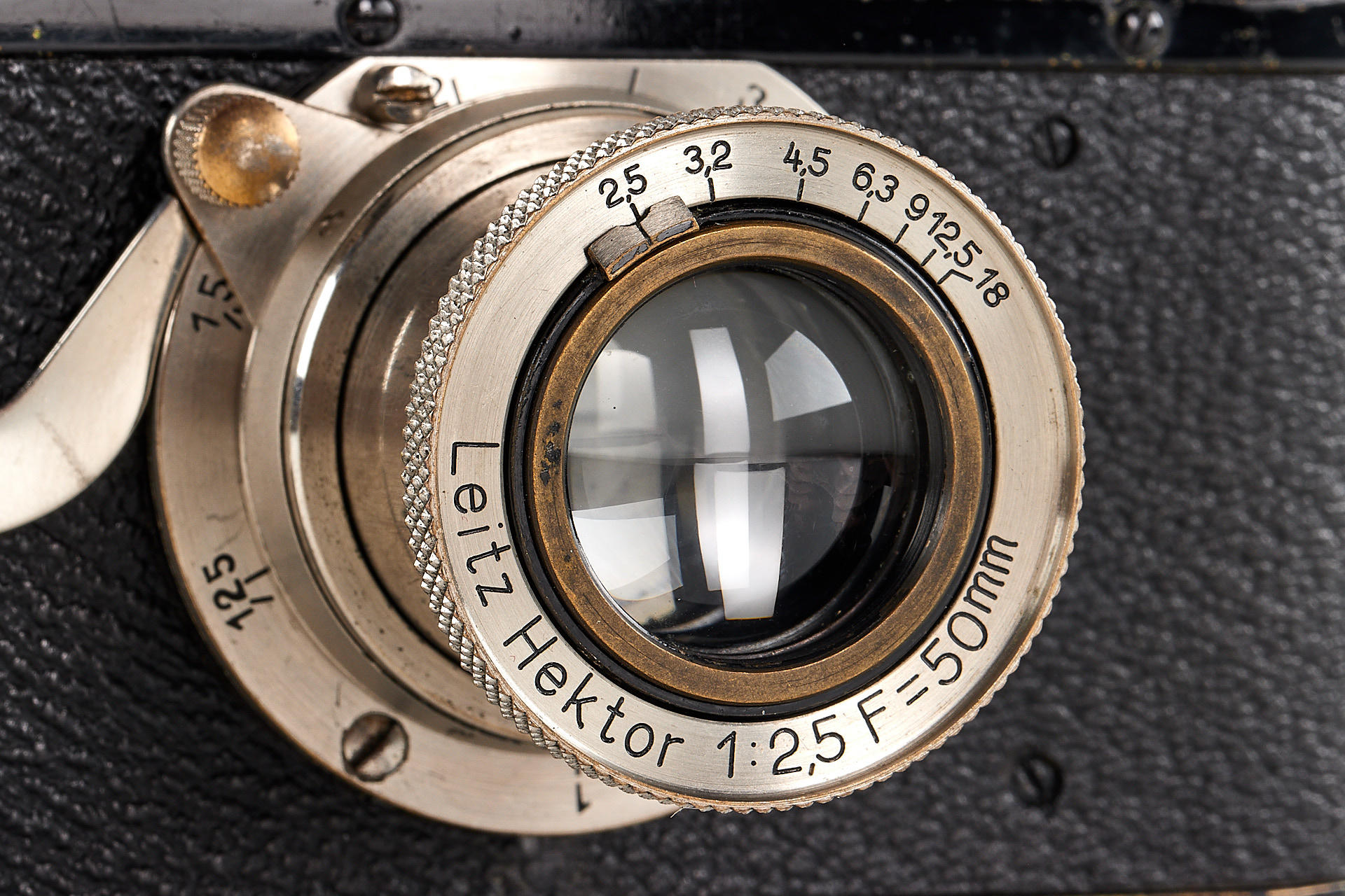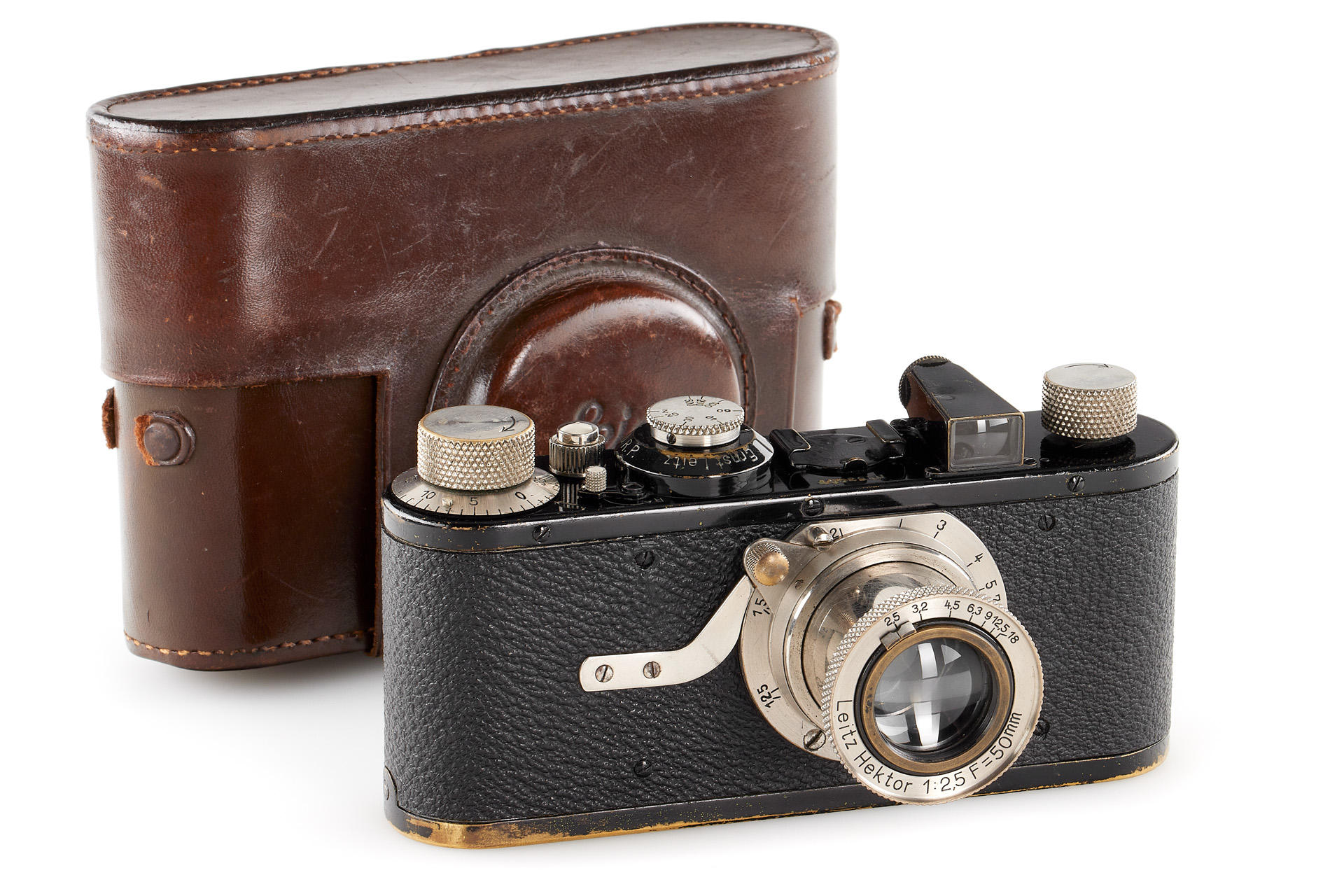 rare Leica I Mod. A with Hektor lens, in very good and original condition, in working order, lens with good optics, incl. black paint lens cap and leather case