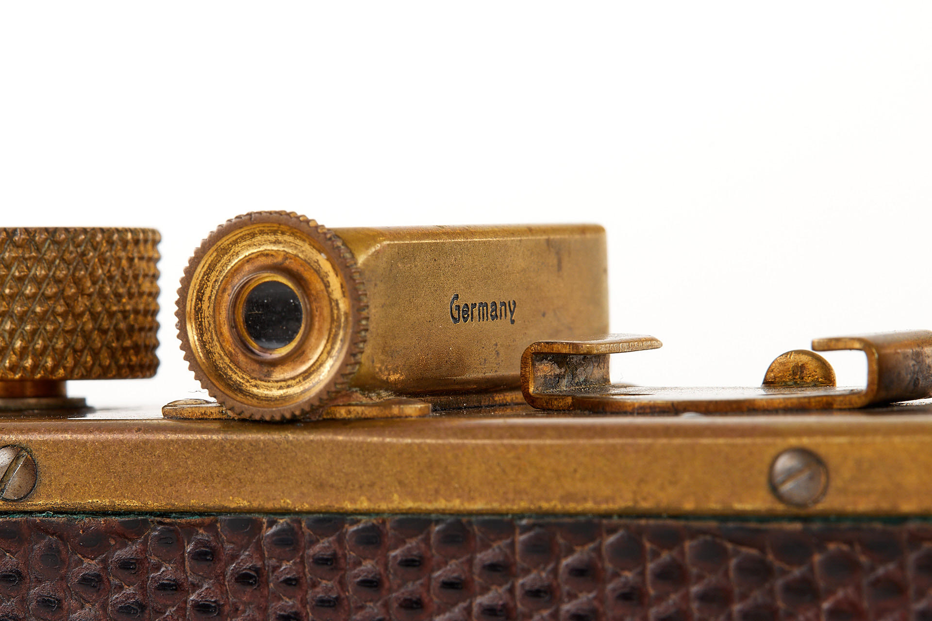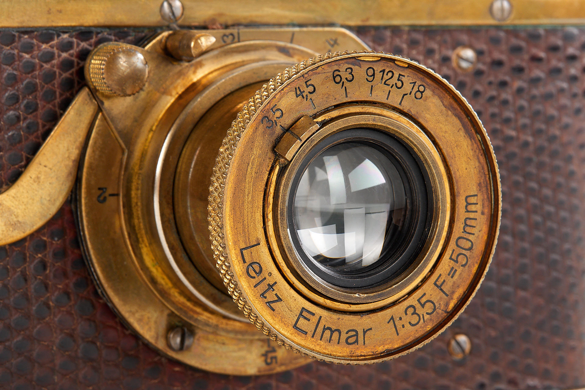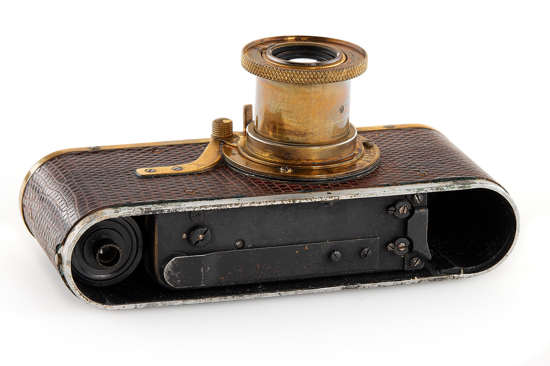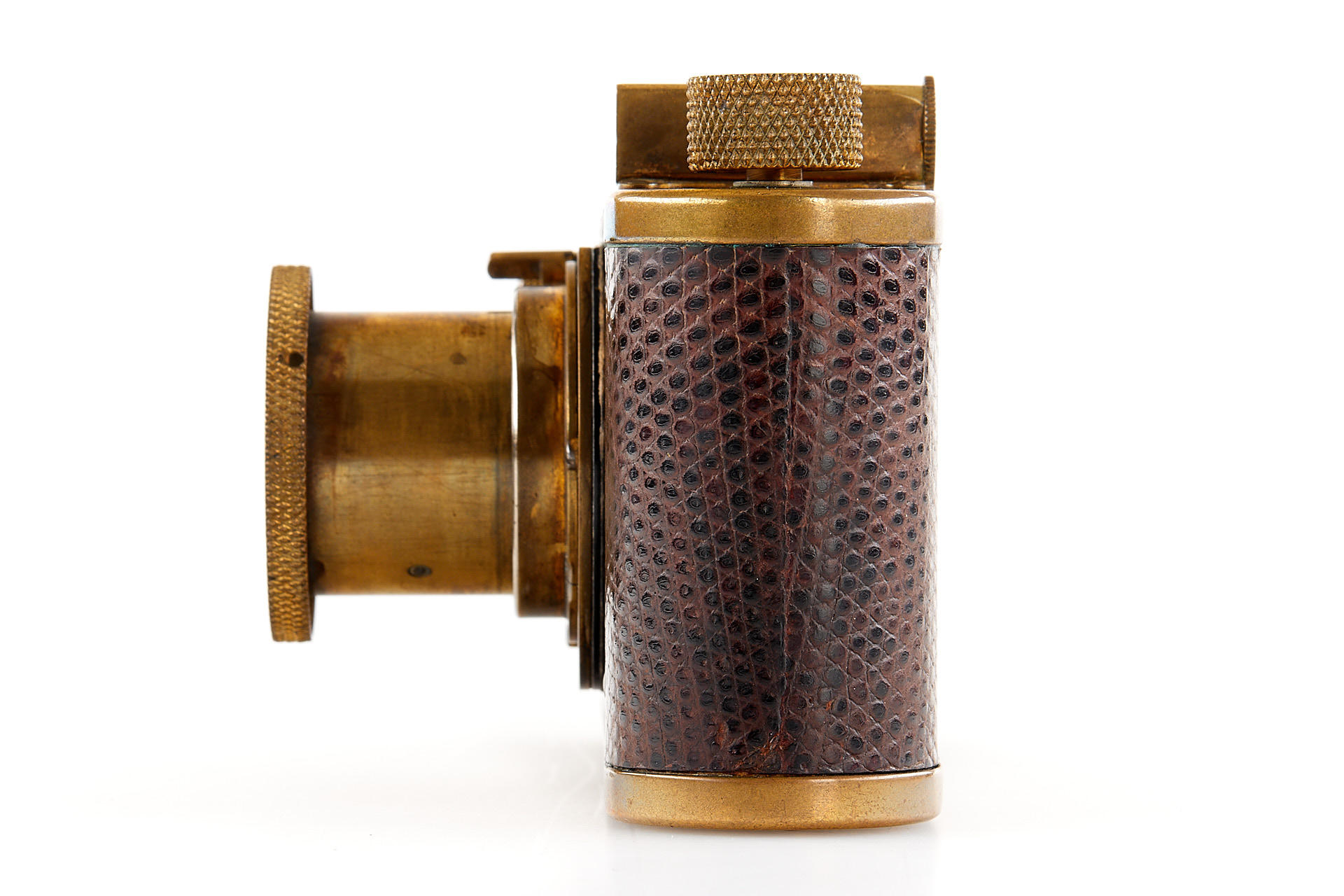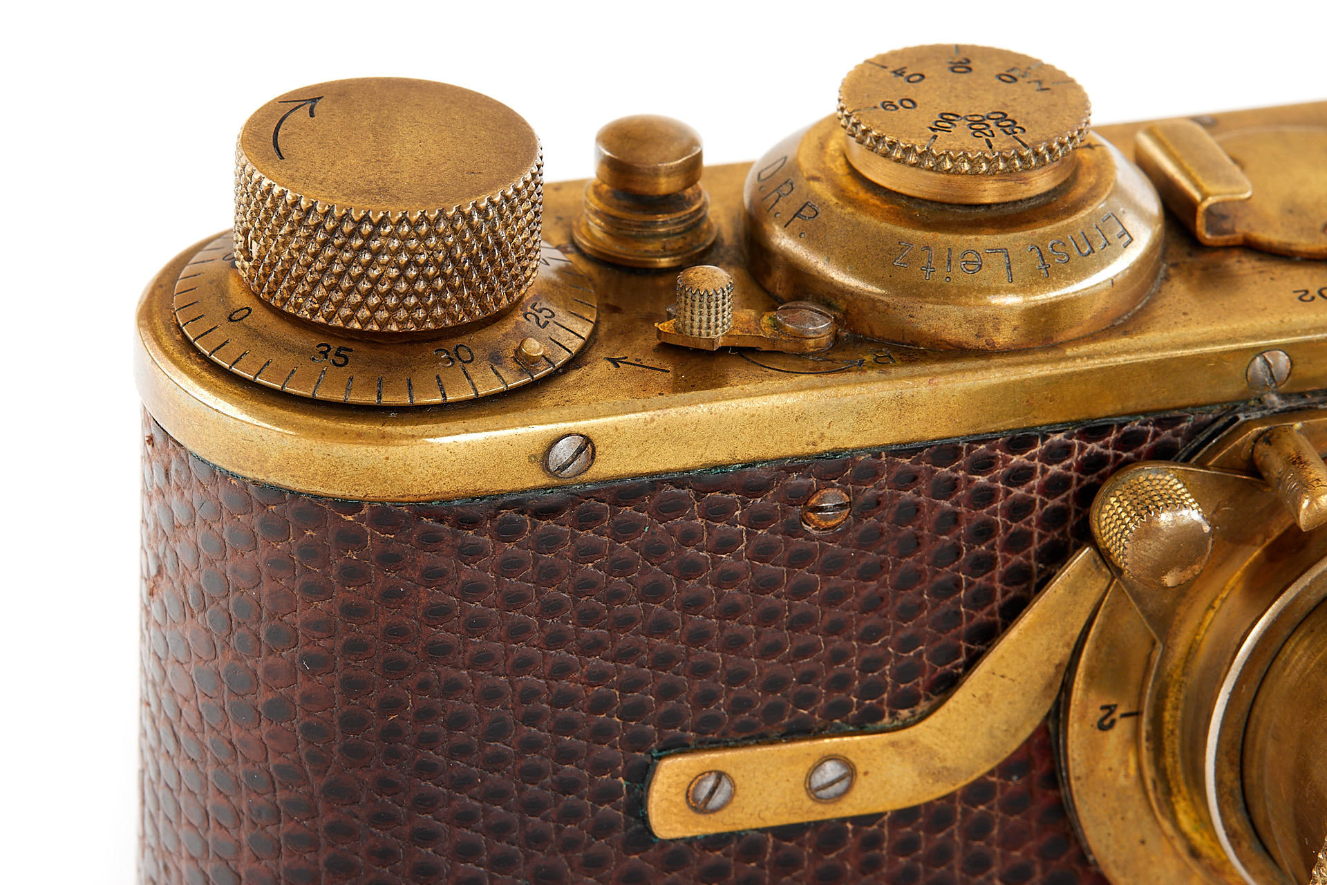 The elusive 'Luxus' Leica in 100% original and very good condition. The camera with gold plated metal parts and a lizard-skin covered body was never restored and shows the typical light patina. Only 95 'Luxus' Leicas were produced from 1929 to 1931; some were later converted or upgraded - only a handful of cameras exist in this original condition. An original Luxus Leica is one of the major rarities in the Leica world. The offered example was delivered to New York in 1930 as LESSALUX (Leica Luxus). See Lager I page 26 for an antecedent camera no.48401.