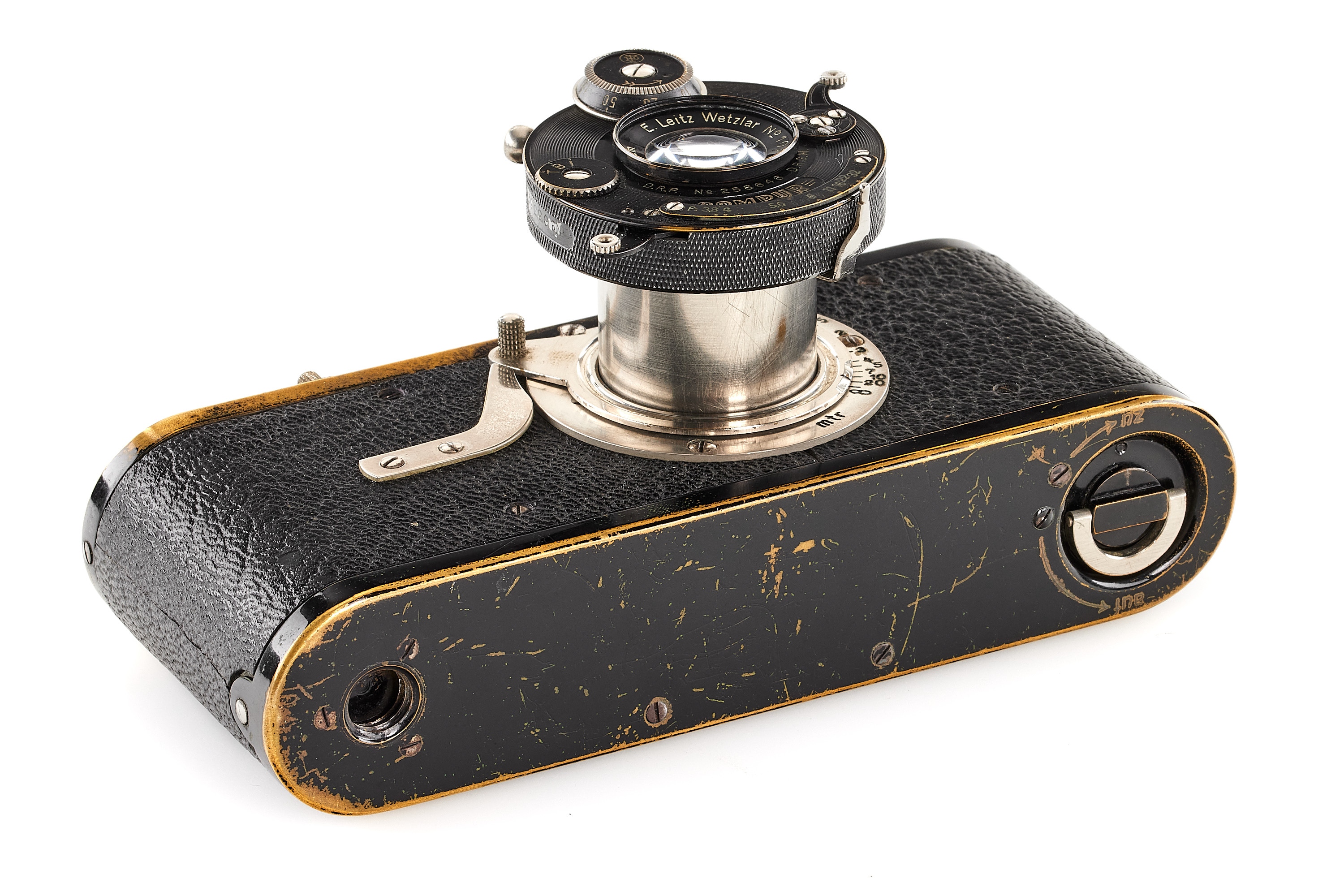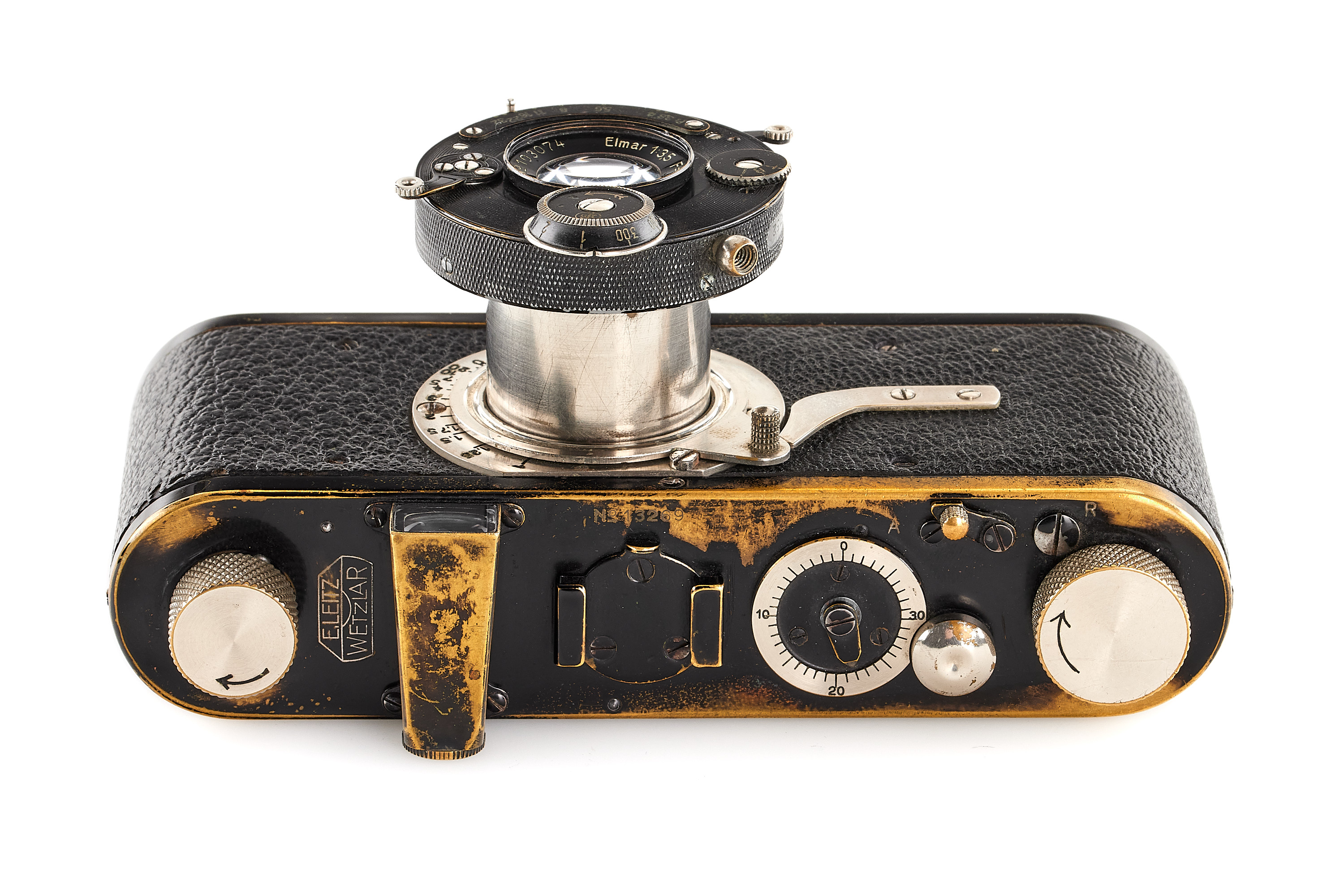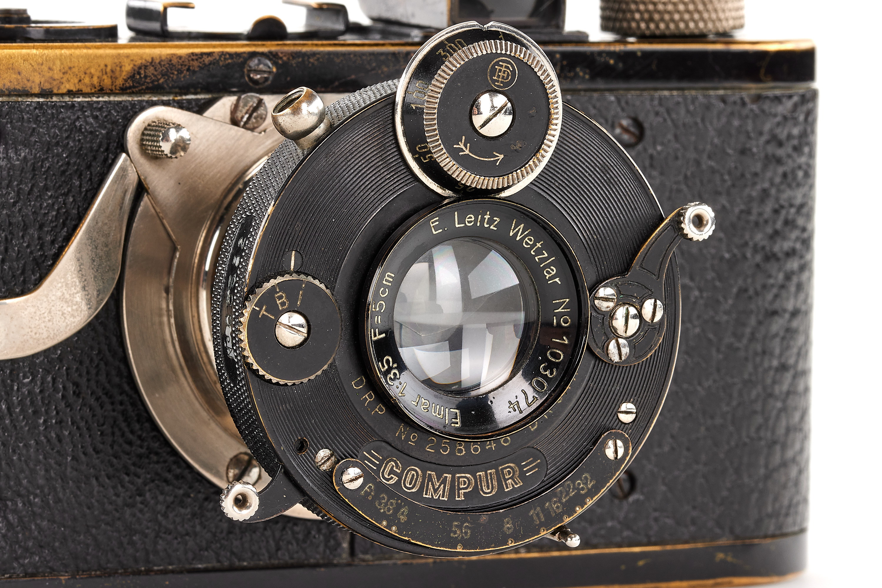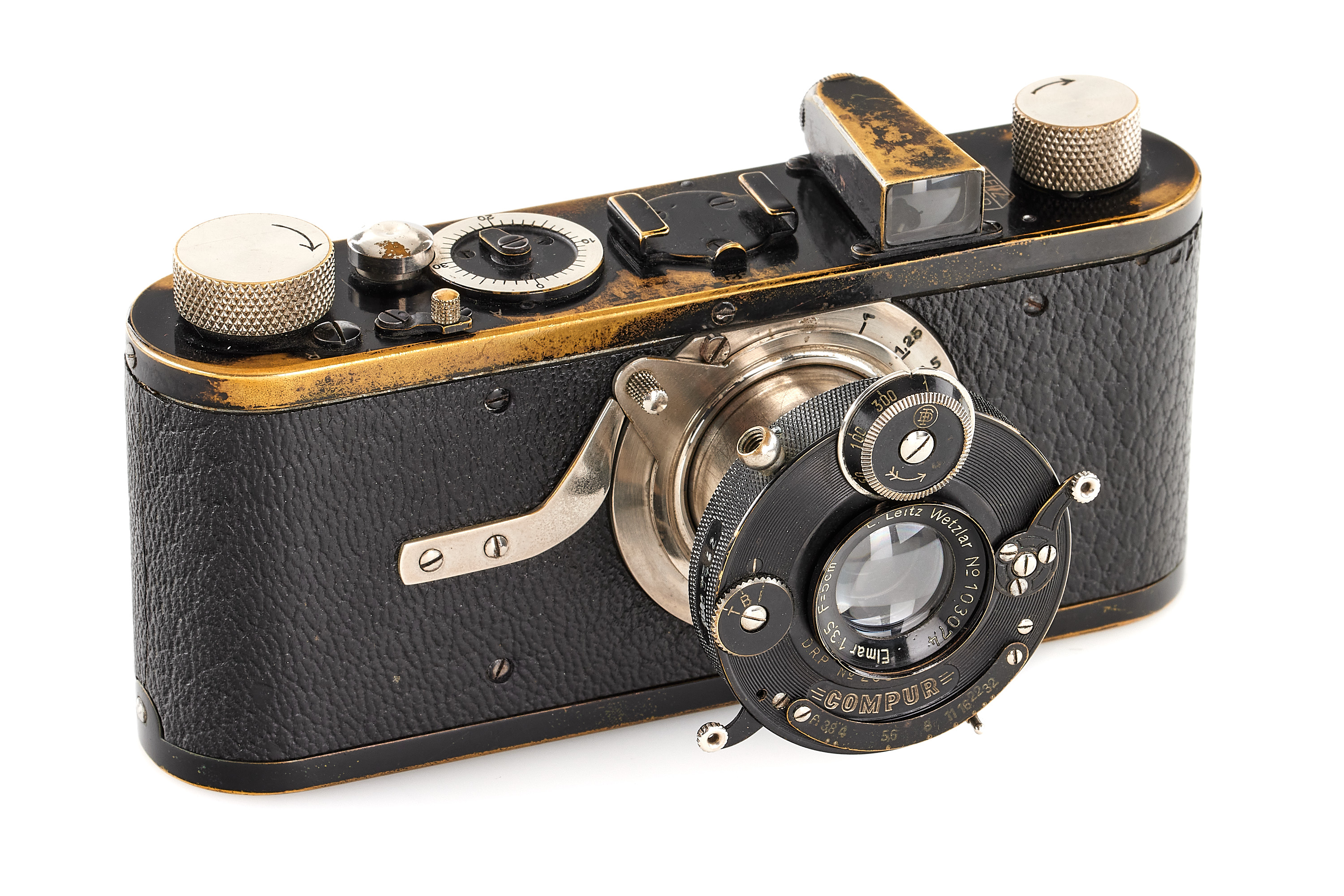 The first version Compur-Leica, in good, original condition and working order, with Elmar 3.5/5cm no.103074, delivered to Prague on 22.06.1929.