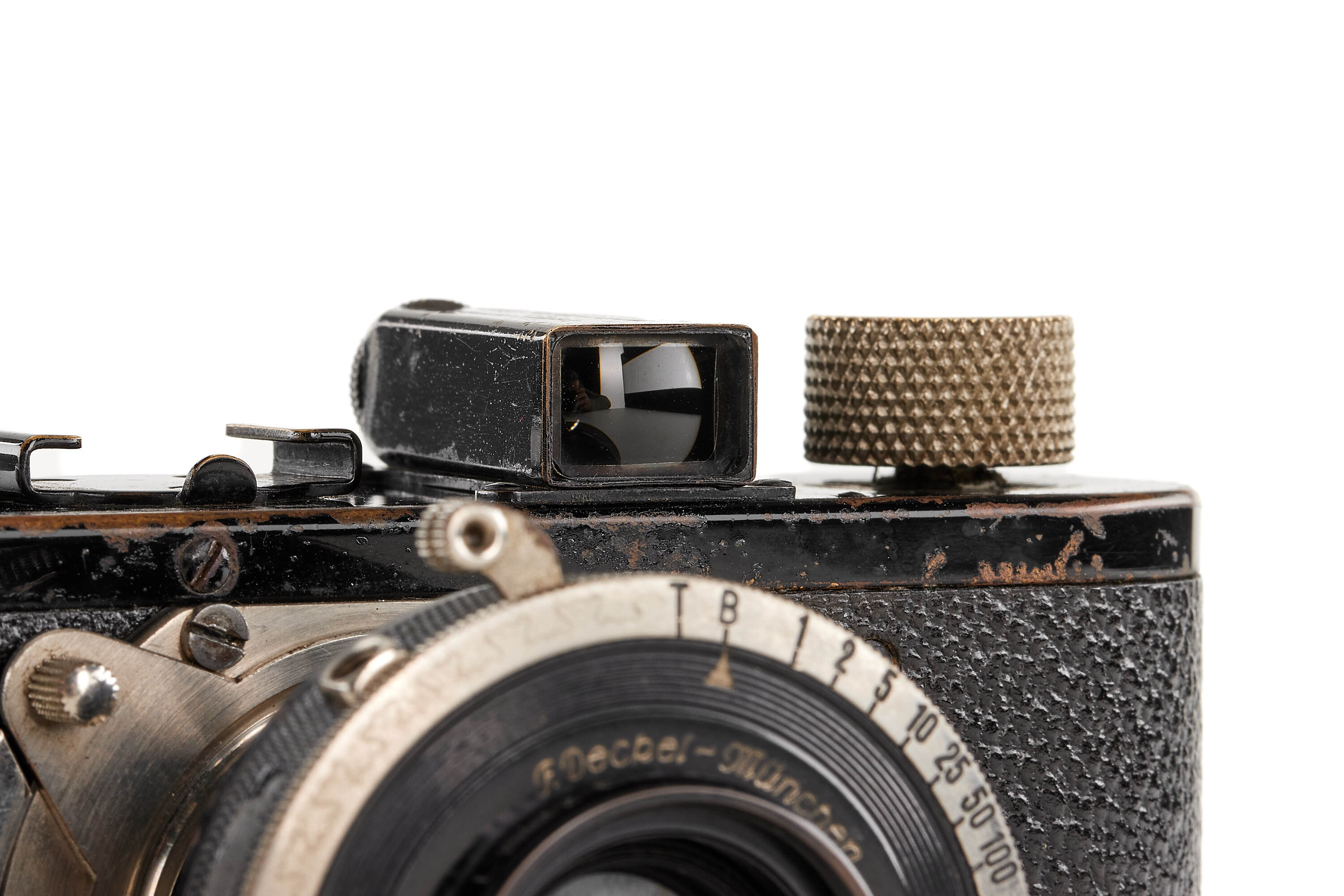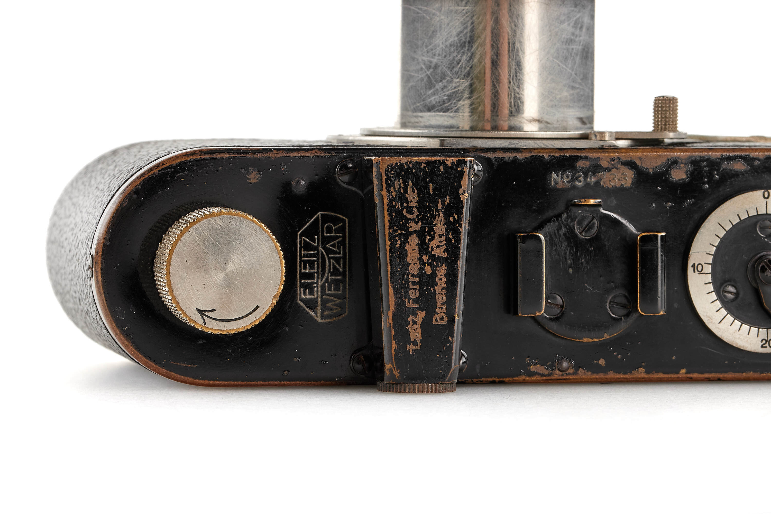 An interesting Compur-Leica, delivered on 25 July 1930 to Ferrando, Montevideo, and bearing a special matching engraving on the viewfinder: 'Lutz, Ferrando y Cie, Buenos Aires.' The camera is in fine, original condition; this is the first time we have encountered a Compur-Leica with this engraving.