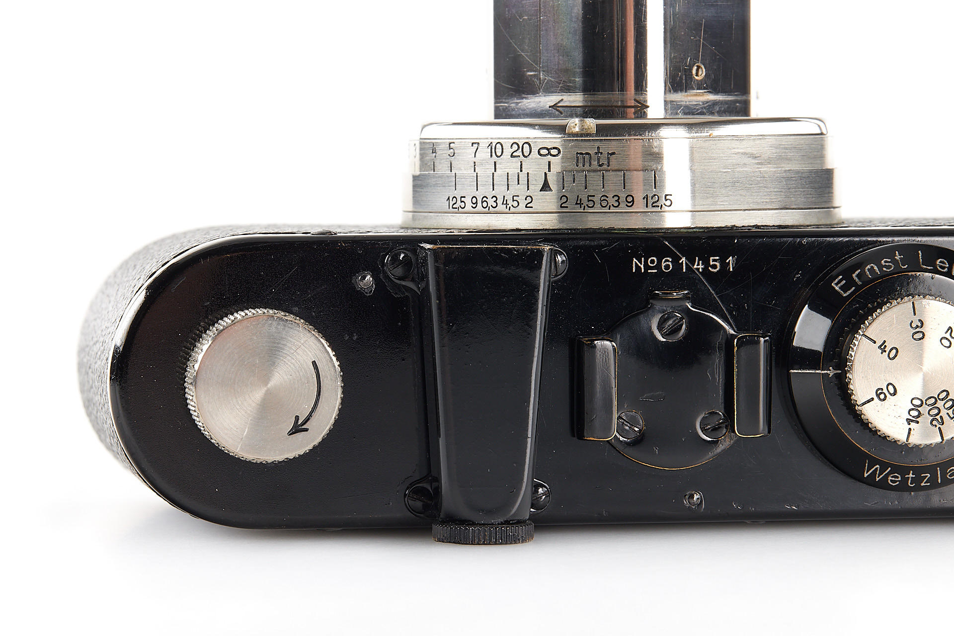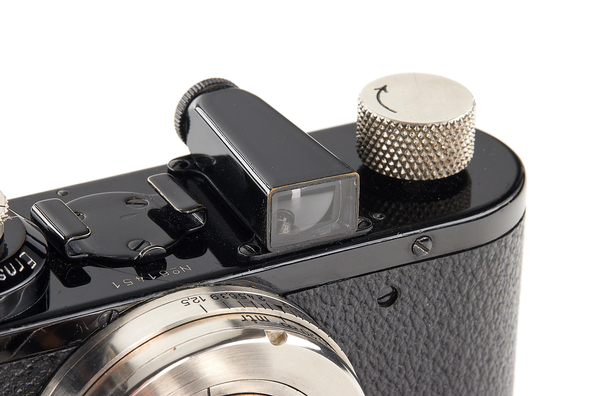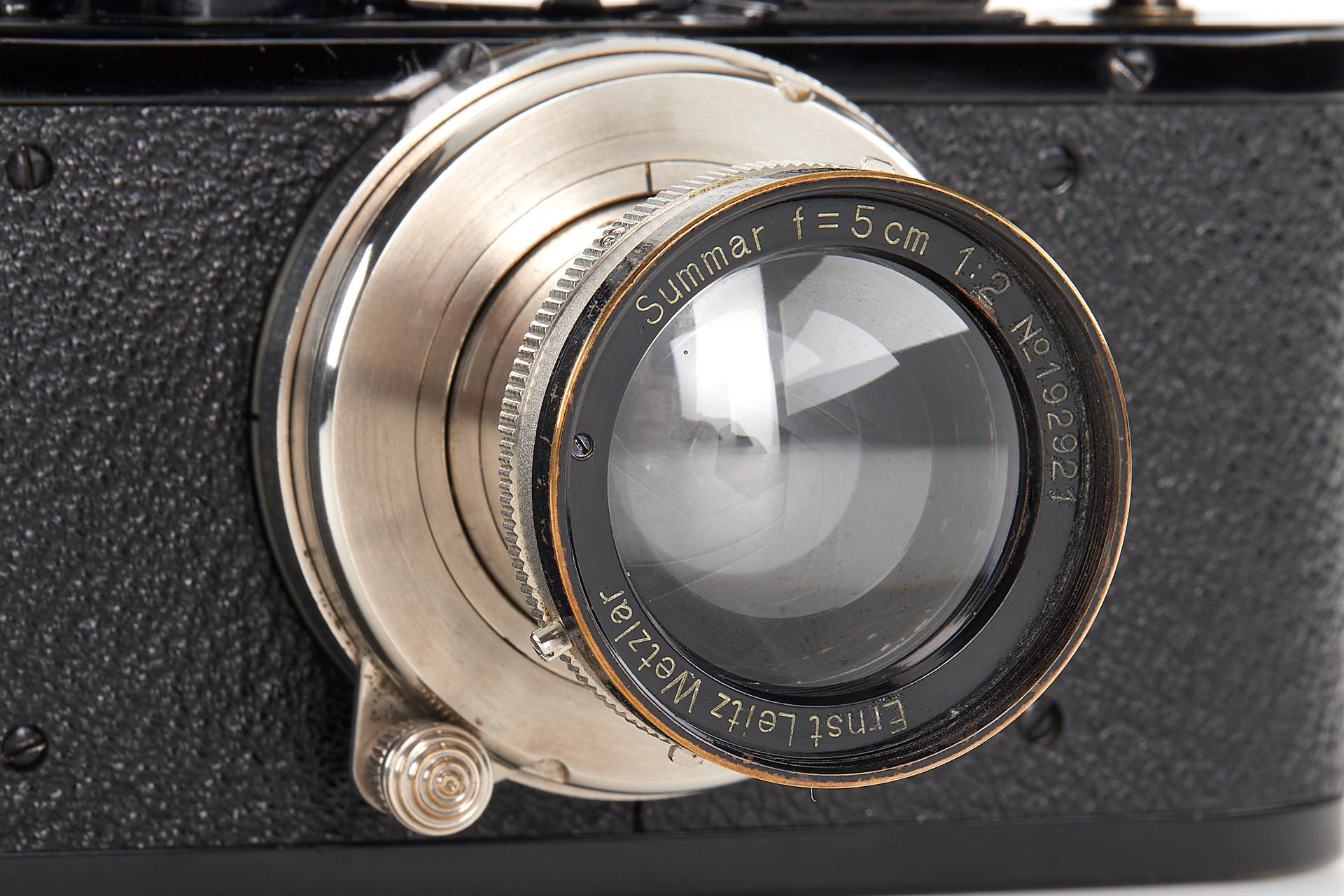 body in beautiful, almost mint condition, with only tiny signs of use visible, perfect vulcanite and working shutter, with sought-after nickel Summar 2/5cm no.192921 (cond. A/B, black front rim, lens cap)
