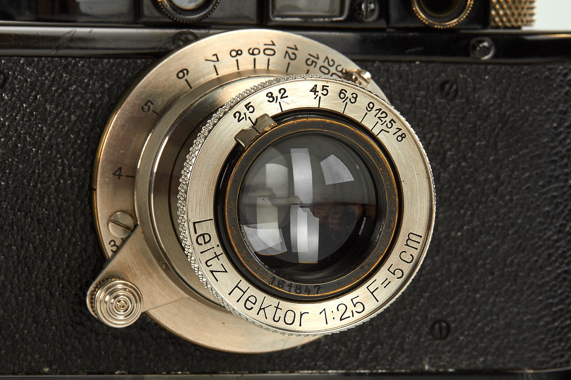 early body in excellent condition and in good working order, with nickel Hektor 2.5/5cm no.161847 (only minimal cleaning marks), lens cap, ABLON film trimming template, leather case
