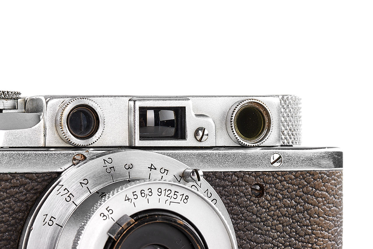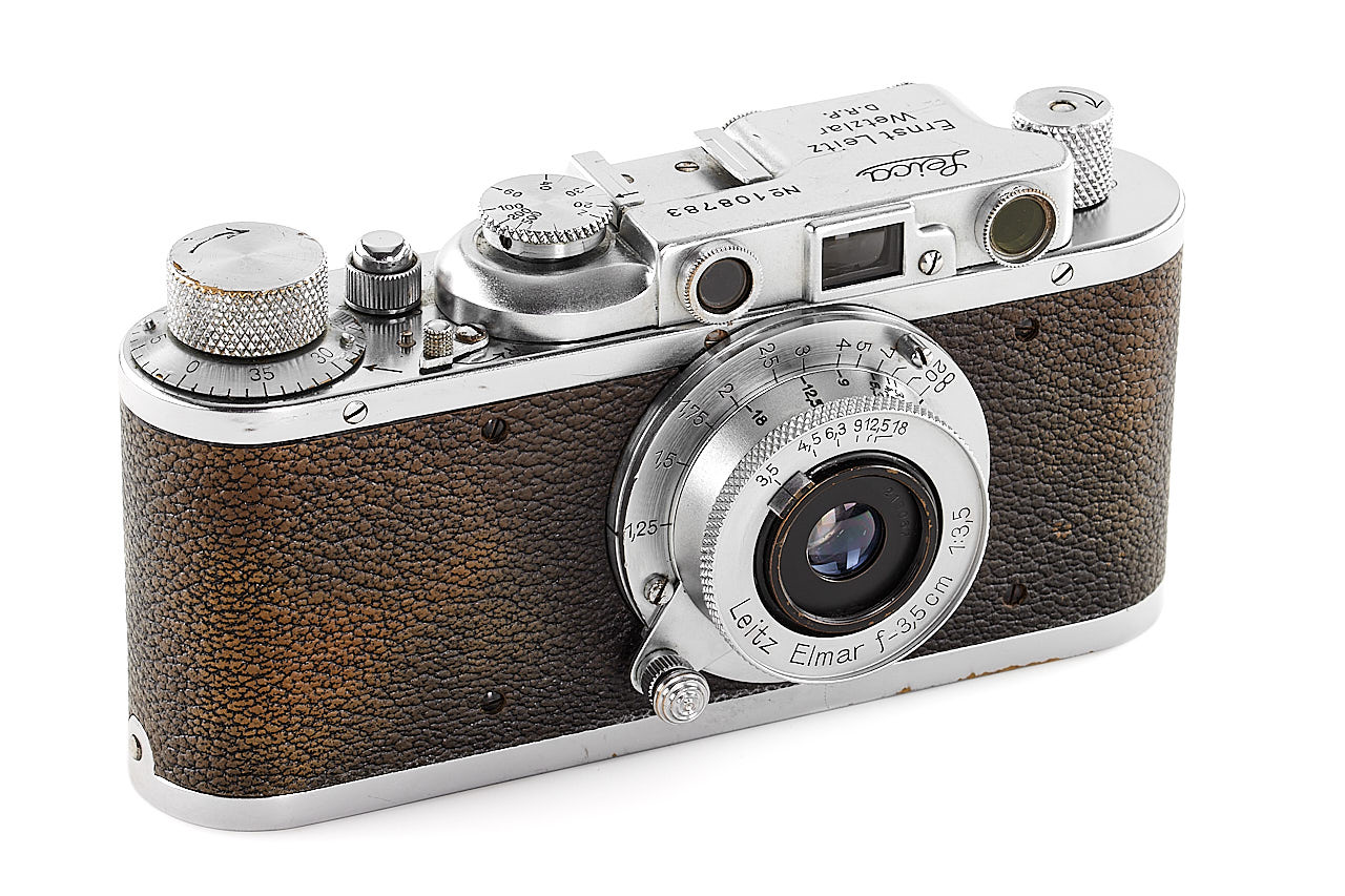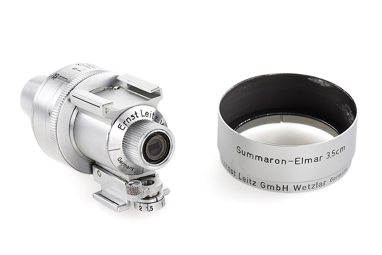 Very early and rare chrome version in very good condition and working order, good shutter curtains and well contrasted rangefinder (bottom plate in B condition), first delivered on 01.04.1933, with matching early chrome Elmar 3.5/3.5cm no.215067 later coated (good optics) with FOOKH hood, with chrome VIDOM, incontestably a very nice set.