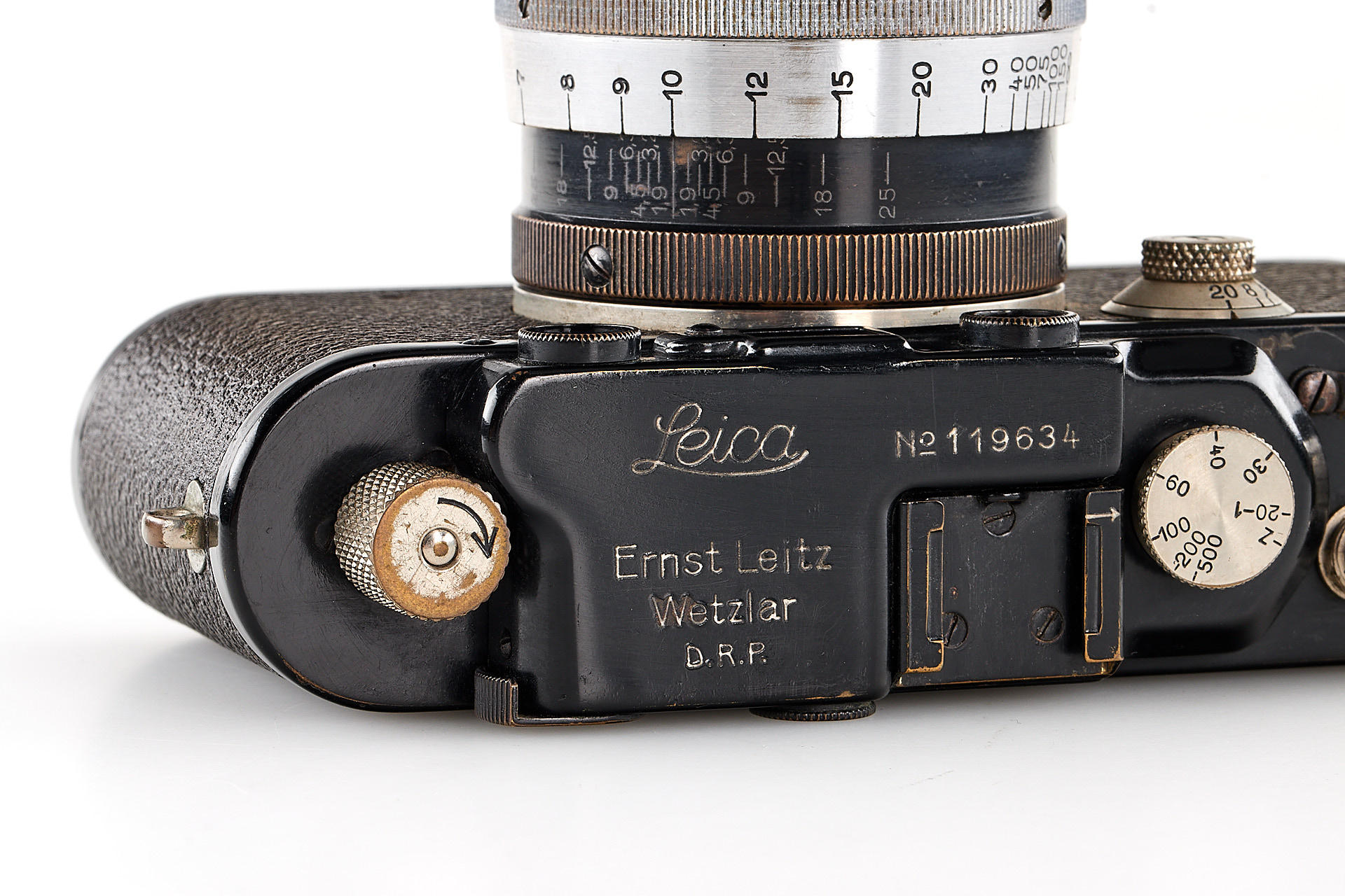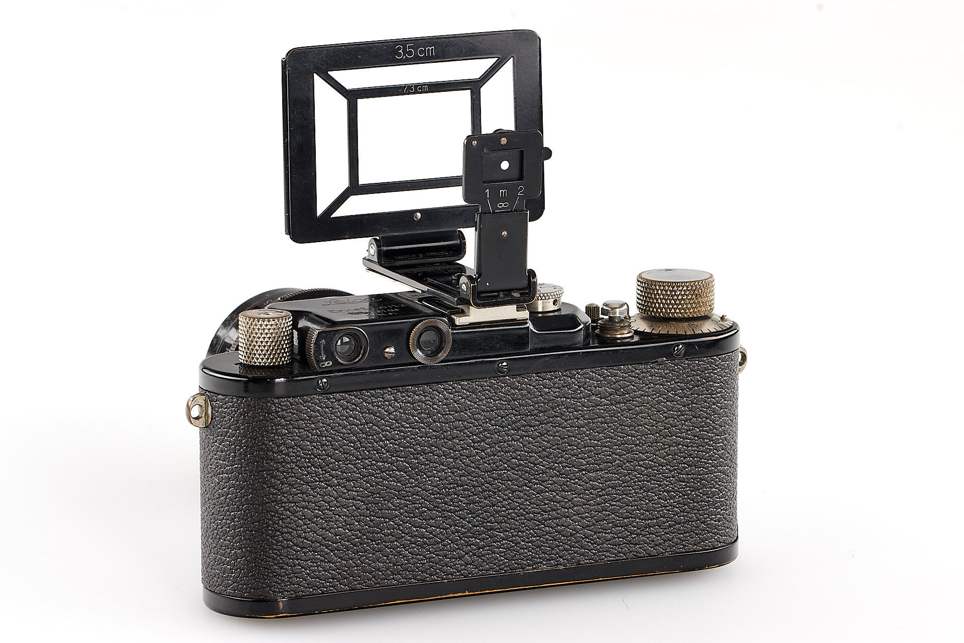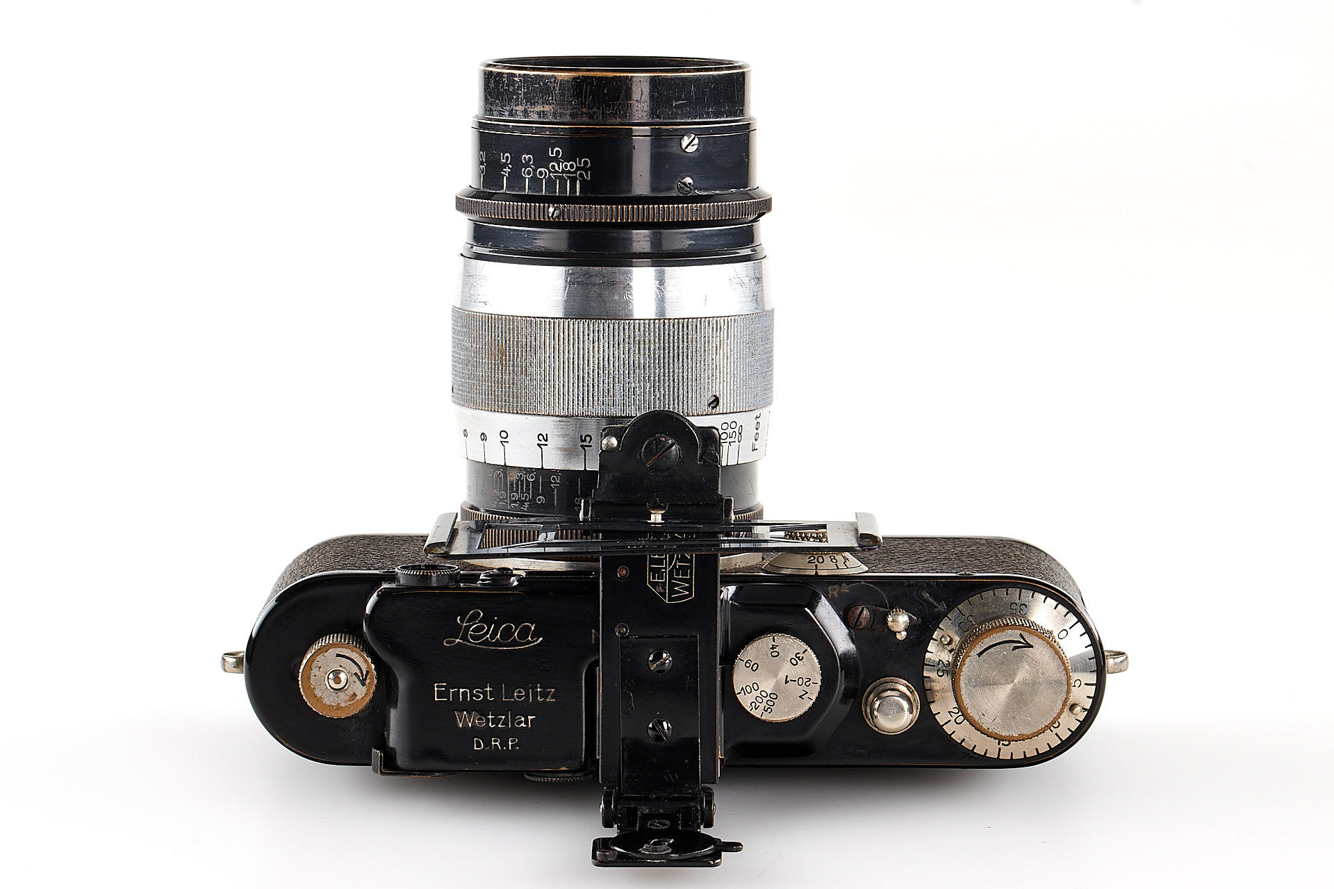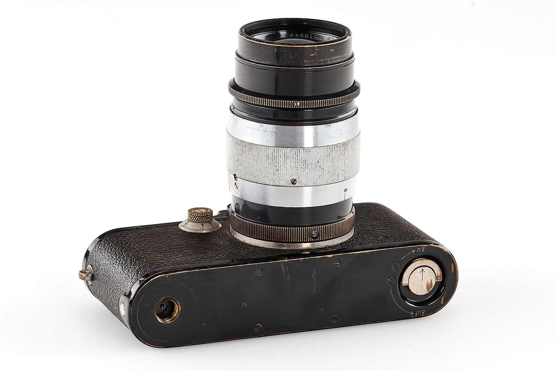 early black/nickel body, in very good condition, rangefinder with very good contrast, with matching Hektor 1.9/7.3cm no.166493 (1933) rangefinder coupled, export version, with optics later coated showing some flakes and cleaning marks, with hood, and early black painted universal frame finder RASUK