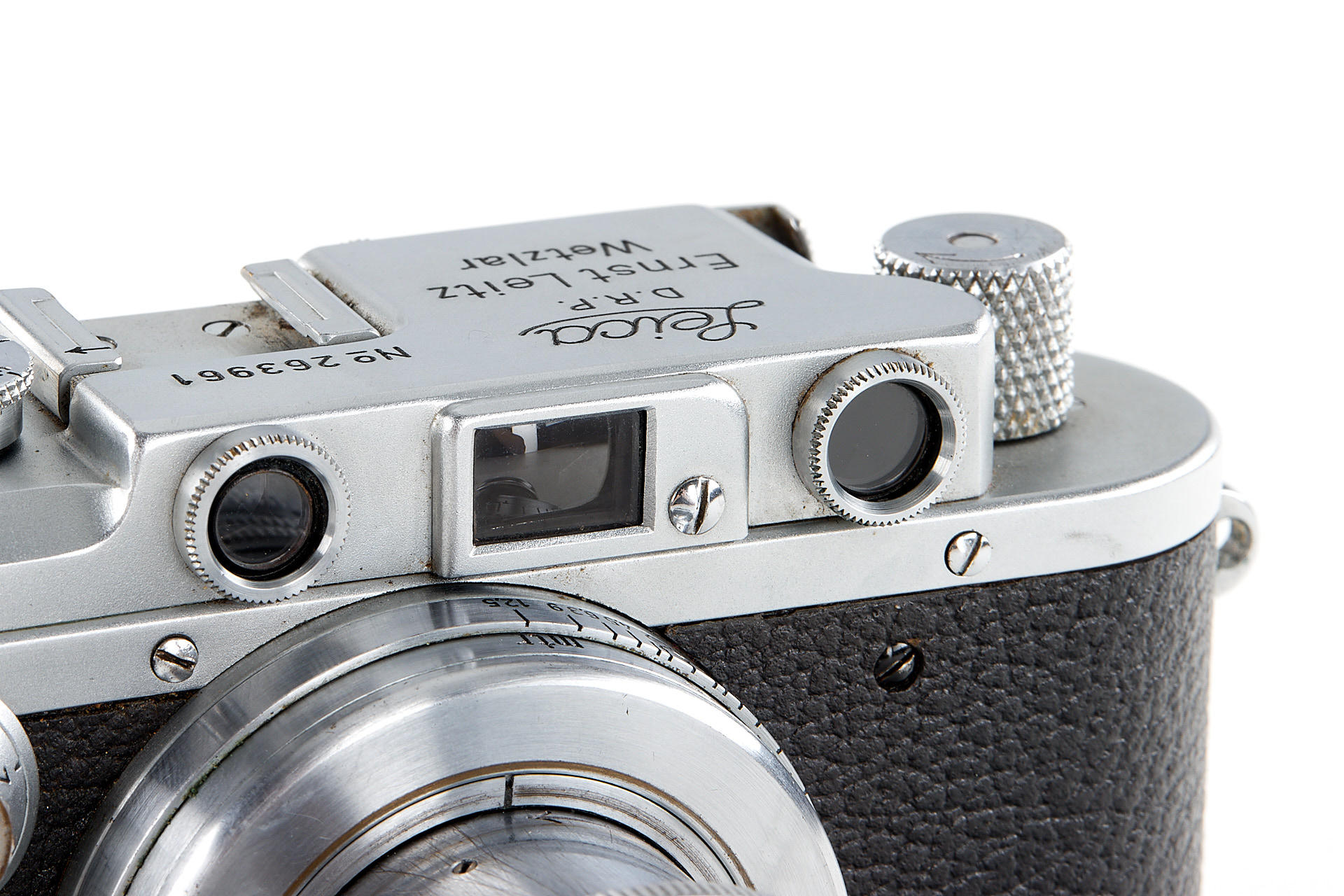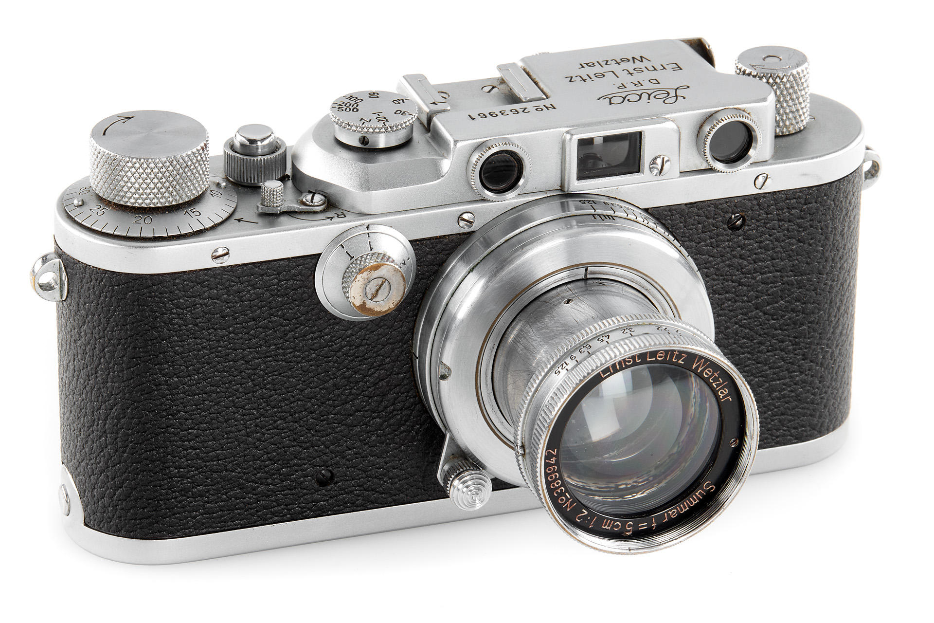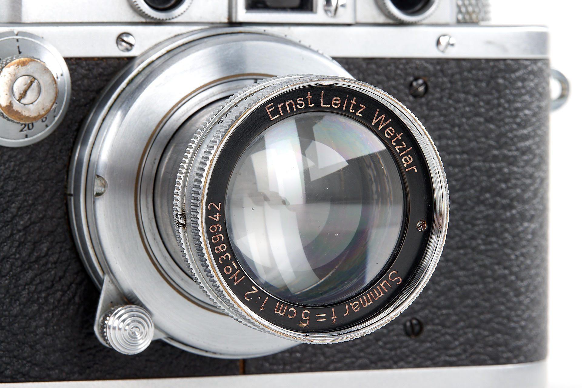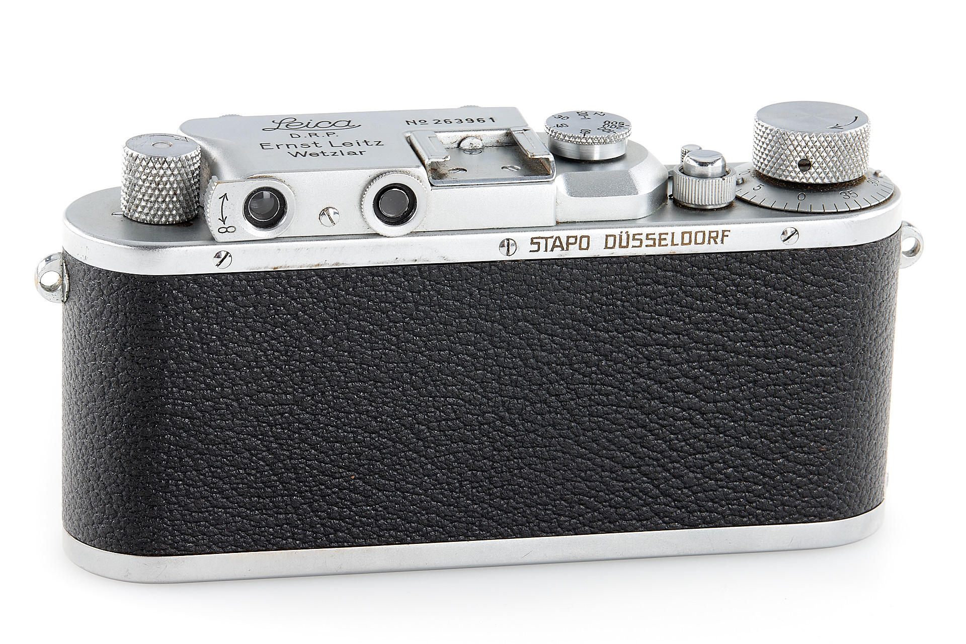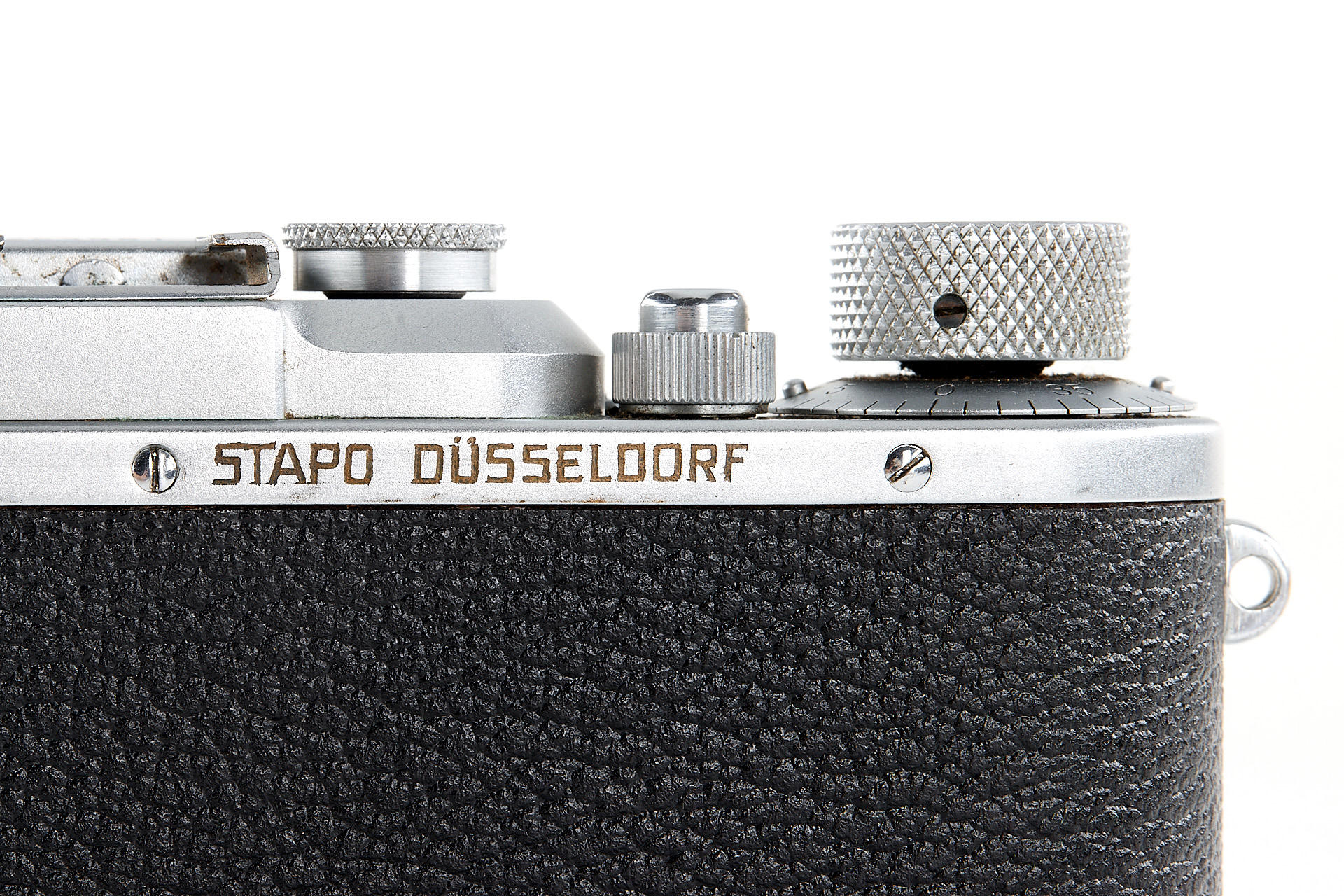 an interesting Leica III, engraved on the back of the top plate with 'Stapo Düsseldorf', in excellent condition, with Summar 2/5cm no.389942, State Police Headquarters (StaPo) in Düsseldorf was the second-largest Gestapo office in the German Reich after Berlin