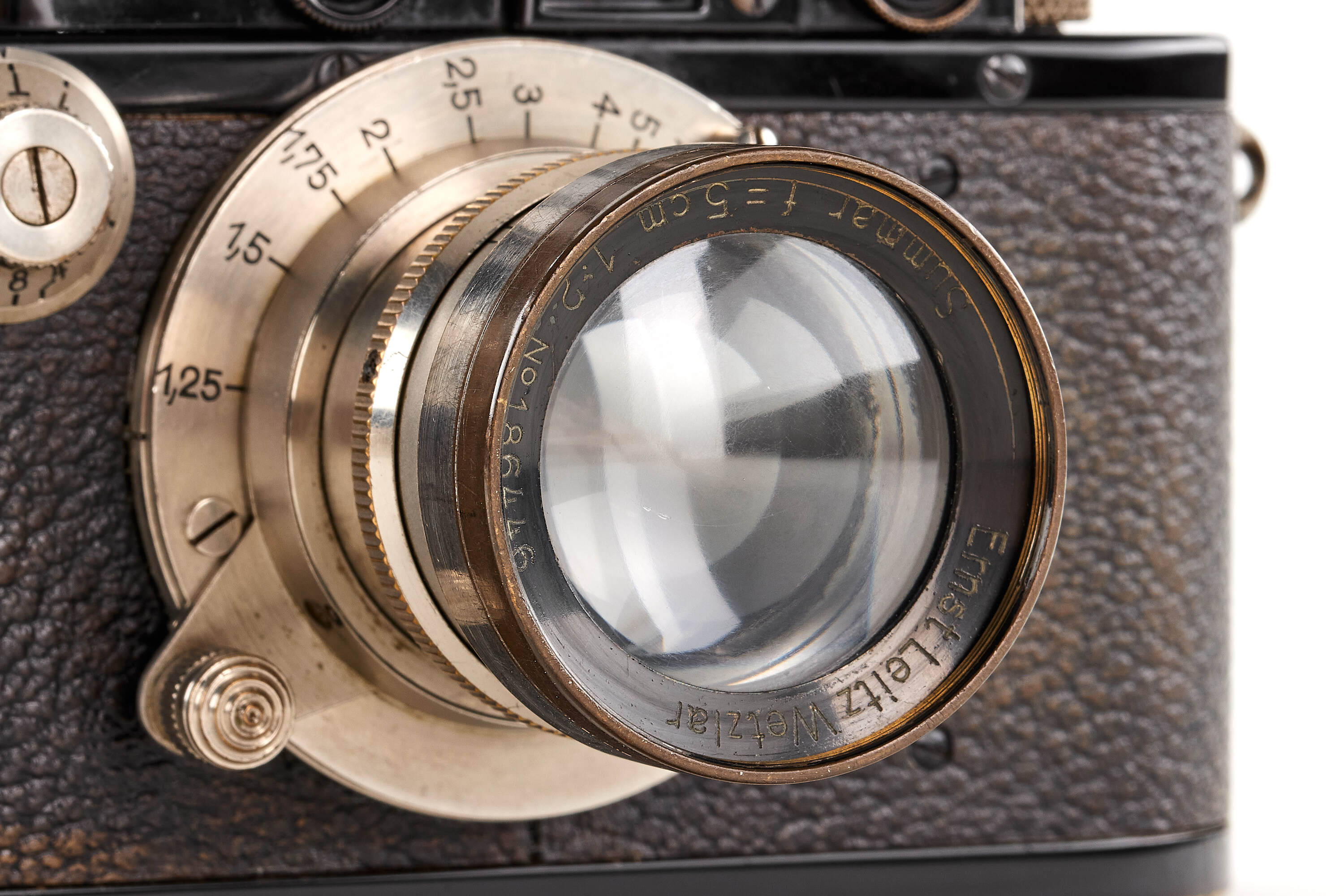 Original black/nickel body in very good condition with rare early nickel Summar rigid 2/5cm no.186446 still in original condition (B+), most of these lenses have been updated to the later collapsible version, optics showing some haze and cleaning marks, with front lens cap, both delivered to Berlin in 1933.